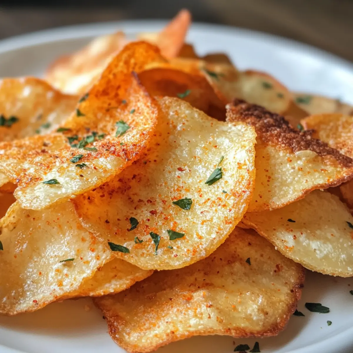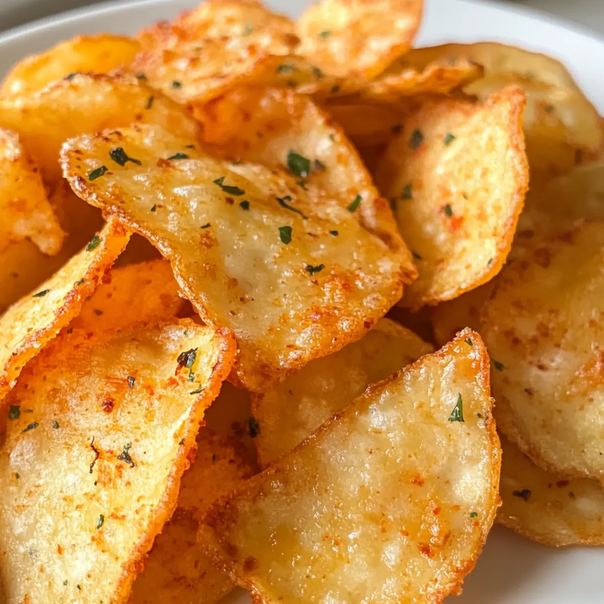 Jump to Recipe Print RecipeThe moment I took that first crunch, I knew I had stumbled upon something extraordinary. Crispy Air Fryer Cottage Cheese Chips are not just another snack; they redefine what snacking can be! With their delightful crunch and a sprinkle of savory seasonings like garlic and chili flakes, these chips are a healthy twist that you can whip up in no time. They’re a high-protein, low-carb option that satisfies those mid-afternoon cravings without the guilt, making them perfect for gatherings or a solo treat. Plus, the air fryer ensures each chip turns out perfectly crispy every time. Are you ready to turn your snack game upside down and indulge in something delicious? Let’s dive into this irresistible recipe! Why Are Air Fryer Cottage Cheese Chips So Amazing? Irresistible crunch: Each chip delivers a satisfying crunch that rivals any potato chip. High-protein goodness: Packed with protein from cottage cheese, these chips keep you feeling full longer. Simple preparation: With just a few ingredients and quick air fryer cooking, you’ll be snacking in no time! Versatile flavors: Spice them up by adding your favorite seasonings or serve with a variety of dips like guacamole or ranch. Perfect for gatherings: Whether it’s game night or a casual get-together, these chips will impress your guests and leave them asking for more! Air Fryer Cottage Cheese Chips Ingredients • Prepare to create a crunchy delight with these essential ingredients! For the Chips Cottage Cheese – the star ingredient that provides a creamy, protein-packed base; opt for full-fat small curd for optimal texture. Garlic Powder – infuses a savory depth to each chip, elevating the flavor. Onion Powder – adds a hint of sweetness and enhances the overall taste experience. Chili Flakes – provide a kick of heat; adjust to fit your spice tolerance. Italian Seasoning – contributes a delightful herby flavor that complements the cottage cheese beautifully. Salt – amplifies the flavors; remember to taste and adjust as needed. Black Pepper – offers a subtle warmth that rounds out the seasoning profile. Olive Oil – ensures each chip gets that golden-brown crispiness; choose extra virgin for added flavor. With these ingredients ready, you’re all set to whip up the sensational Air Fryer Cottage Cheese Chips that will transform your snacking experience! Step‑by‑Step Instructions for Air Fryer Cottage Cheese Chips Step 1: Preheat the Air Fryer Begin by preheating your air fryer to 375°F (190°C) for approximately 3-5 minutes. This crucial step ensures that your Air Fryer Cottage Cheese Chips will cook evenly and develop that perfect crispiness. You’ll know it’s ready when the indicator light signals or you hear a gentle beep. Step 2: Prepare the Air Fryer Basket While your air fryer warms up, line the basket with parchment paper or give it a light mist of cooking spray. This prevents the cottage cheese mixture from sticking and helps maintain an easy clean-up. Make sure the parchment is cut to fit well without overlapping the edges for proper air circulation. Step 3: Mix the Cottage Cheese Ingredients In a medium bowl, combine the cottage cheese with garlic powder, onion powder, chili flakes, Italian seasoning, salt, and black pepper. Stir until everything is fully mixed and the seasonings are evenly distributed throughout the cottage cheese. The mixture should have a slightly thick consistency, making it easy to scoop. Step 4: Shape the Chips Using a spoon, drop about 2-inch circles of the cottage cheese mixture onto the lined air fryer basket, ensuring to space them at least 1/2 inch apart. This spacing allows the hot air to circulate properly, ensuring your Air Fryer Cottage Cheese Chips crisp up nicely. Aim for a slightly flattened shape to achieve optimal crispiness. Step 5: Drizzle with Olive Oil Lightly drizzle olive oil over the top of each chip. This step enhances the flavor and promotes that delightful golden brown color. Be sure not to overdo it; just a thin layer is all you need to achieve perfect results without making the chips oily. Step 6: Air Fry the Chips Cook the cottage cheese chips in the air fryer for about 10-12 minutes. At around the 5-6 minute mark, pause to flip the chips for even crispness. Keep an eye on them towards the end; they should emerge golden brown and firm to the touch, indicating they are ready to be enjoyed. Step 7: Cool for Maximum Crispness Once your chips are done cooking, carefully transfer them to a cooling rack and let them sit for 2-3 minutes. This crucial cooling time allows the Air Fryer Cottage Cheese Chips to become even crispier. Resist the urge to nibble just yet; the flavor is worth the wait! Step 8: Serve and Enjoy Serve your crispy cottage cheese chips warm or at room temperature, and consider pairing them with your favorite dipping sauces for an extra layer of flavor. Whether it’s guacamole, ranch, or a zesty yogurt dip, these chips are a tasty snack that will surely impress! Make Ahead Options These Crispy Air Fryer Cottage Cheese Chips are perfect for meal prep enthusiasts! You can mix the cottage cheese mixture (cottage cheese, garlic powder, onion powder, chili flakes, Italian seasoning, salt, and black pepper) up to 24 hours in advance, storing it in an airtight container in the refrigerator to maintain freshness. When you’re ready to serve, simply follow the cooking instructions: shape the chips, drizzle with olive oil, and air fry directly. This way, you’ll have a tasty, protein-packed snack ready in no time, making it an ideal solution for busy weeknights while still delivering that satisfying crunch you crave! Expert Tips for Air Fryer Cottage Cheese Chips Spread Thinly: Ensure the chip mixture is spread to about 1/4 inch thick; thicker chips can turn out chewy instead of crisp. Line Properly: Don’t skip the parchment paper or cooking spray in the air fryer basket to prevent sticking and promote easy removal of your