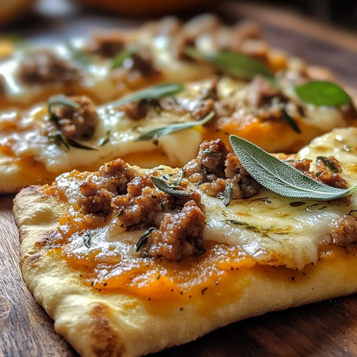 Jump to Recipe Print RecipeThe aroma of falling leaves and spices fills the air, beckoning us to embrace cozy nights in the kitchen. There’s something special about crafting easy Autumn Naan Pizzas with Pumpkin, Sausage, and Sage that makes me feel warm inside. These delightful pizzas blend sweet pumpkin puree with savory ground sausage and caramelized shallots, all nestled on a convenient naan base—perfect for busy evenings or spontaneous gatherings. In just 30 minutes, you can whip up this satisfying dish that’s not only a fun twist on pizza night but also a delicious way to welcome the flavors of fall. Whether you’re looking to impress friends or simply enjoy a comforting meal at home, these naan pizzas are sure to become a family favorite. Curious to learn just how simple it is to create this seasonal delight? Let’s dive into the recipe! Why Make Autumn Naan Pizzas? Simplicity Meets Flavor: These Autumn Naan Pizzas come together in just 30 minutes, making them a perfect choice for busy weeknights. Savory & Sweet Layers: The combination of creamy pumpkin puree, savory sausage, and caramelized shallots creates a delightful harmony that is simply irresistible. Adaptable: Feel free to play with toppings! You can easily switch out the sausage for a plant-based option or try different herbs, allowing everyone to enjoy their perfect slice. Crowd-Pleaser: Whether it’s a casual family dinner or a fun gathering with friends, these personal-sized pizzas will win over even the pickiest eaters. Comfort Food Essentials: No long prep time, but all the comforting aspects of fall flavors, makes this dish a must-try for any home cook looking to elevate their pizza night! Autumn Naan Pizzas Ingredients For the Pizzas • Extra-virgin olive oil – Adds flavor and moisture; substitute with avocado oil for a lighter twist. • Shallots – Provide sweetness and depth; yellow onions can step in if needed. • Ground sausage – Delivers a hearty element; feel free to use turkey or a plant-based sausage for a veggie-friendly option. • Naan breads – Serve as a quick and easy pizza base; standard pizza crust or pita are great alternatives if naan isn’t available. • Canned pumpkin puree – Adds creaminess and seasonal flavor; fresh cooked pumpkin works equally well if you have it on hand. • Dried oregano – Introduces herbaceous notes; Italian seasoning can be a handy alternative. • Grated Fontina cheese – Contributes creaminess and flavor; mozzarella or gouda can replace it for similar melting qualities. • Whole-milk ricotta cheese – Offers a delightful texture; cottage cheese is a lighter, good substitute. • Fresh sage leaves – Imparts earthy aroma; thyme or rosemary can also be delicious alternatives. • Hot honey – Adds a spicy-sweet finish; regular honey or balsamic reduction can sweeten it up nicely. Feel inspired to make your own Autumn Naan Pizzas? Gather these simple ingredients and let’s bring the cozy flavors of fall to your kitchen! Step‑by‑Step Instructions for Autumn Naan Pizzas Step 1: Preheat the Oven Begin by preheating your oven to 425°F (220°C). This ensures a crisp and delicious crust for your Autumn Naan Pizzas. While the oven heats, gather your ingredients and prepare your workspace for an efficient cooking experience. Step 2: Sauté the Shallots In a skillet over medium heat, add 1 tablespoon of extra-virgin olive oil. Once hot, add the sliced shallots and sauté for 4-5 minutes, stirring occasionally, until they become soft and translucent. This step brings out their natural sweetness, enhancing the flavor of your naan pizzas. Step 3: Cook the Sausage Next, crumble the ground sausage into the skillet with the shallots. Cook for about 6-7 minutes, stirring frequently, until the sausage is browned and cooked through. Ensure the mixture is well combined to maximize flavor, creating a savory topping for your Autumn Naan Pizzas. Step 4: Prepare the Naan Base Arrange the naan breads on a large baking sheet, making sure they don’t overlap. Spread a generous layer of pumpkin puree over each naan, using the back of a spoon to ensure even coverage. Then, sprinkle dried oregano evenly across the tops, adding a fragrant note to your pizzas. Step 5: Assemble the Pizzas Evenly distribute the grated Fontina cheese over the pumpkin-topped naan. Follow this with the sausage and shallot mixture, ensuring each pizza has a hearty share of the savory goodness. Finally, add dollops of ricotta cheese on top for creaminess that compliments the other flavors beautifully. Step 6: Add the Sage In a small bowl, rub fresh sage leaves with a drizzle of remaining olive oil to enhance their aroma. Scatter the sage leaves over the assembled Autumn Naan Pizzas, allowing the earthy herbal notes to infuse during baking, lifting the overall flavor profile. Step 7: Bake the Pizzas Carefully transfer the baking sheet into your preheated oven. Bake for approximately 15 minutes, or until the naan is golden brown and crisp on the edges. Keep an eye on them to achieve the perfect color, ensuring a delightful texture for your pizzas. Step 8: Finish and Serve Once baked, remove the naan pizzas from the oven and let them cool slightly. Drizzle with hot honey and sprinkle cracked black pepper on top for an extra kick. Serve warm, and enjoy the cozy flavors of your homemade Autumn Naan Pizzas with family or friends! Make Ahead Options These Autumn Naan Pizzas are perfect for meal prep! You can prepare the toppings—caramelized shallots and cooked sausage—up to 3 days ahead. Simply sauté the shallots and cook the sausage, then allow them to cool completely before storing them in an airtight container in the refrigerator. You can also spread the pumpkin puree on the naan bases up to 24 hours in advance, just make sure to wrap them tightly to keep them fresh. When you’re ready to serve, top the naan with the prepped ingredients, sprinkle on the cheese, and bake according to the rec