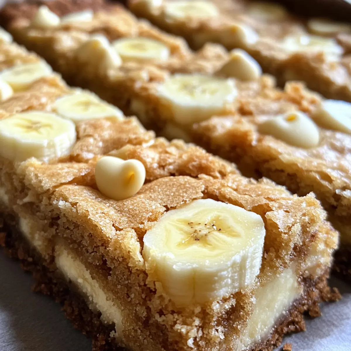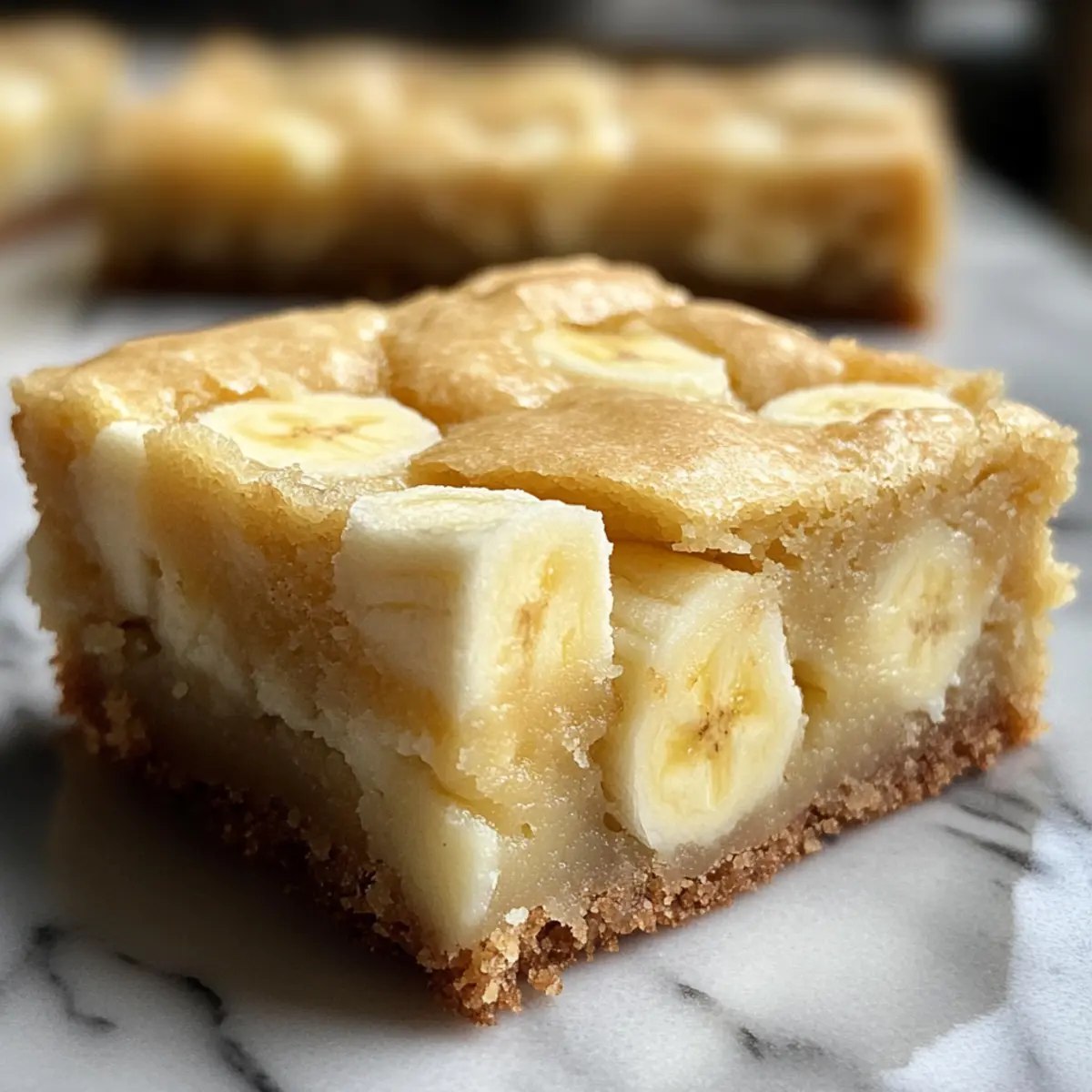 Jump to Recipe Print RecipeAs I stood in my kitchen, a spot of banana-scented nostalgia wafted through the air, washing over me like a warm hug from an old friend. These Soft and Chewy Banana Blondies with Vanilla Wafer Crust are my latest obsession, marrying the beloved flavors of banana pudding with a delightful crisp crust. Imagine a dessert that’s both a comforting family favorite and a treat that brings joy to any gathering—these blondies are just that. Not only are they quick to whip up, but their chewy texture combined with the sweetness of white chocolate makes them irresistible. Whether you need an after-school snack or a crowd-pleaser for your next potluck, these bars fit the bill perfectly. Curious how simple ingredients can come together to create such deliciousness? Let’s dive into the recipe! Why Are These Banana Blondies So Amazing? Unique Flavor Profile: The combination of soft bananas and rich white chocolate creates a delightful dessert that’s truly unforgettable. Quick and Easy: With just a few simple ingredients, these blondies come together in no time, making them perfect for those busy weeknights or when unexpected guests arrive. Crowd-Pleasing Treat: Loved by kids and adults alike, these bars are sure to disappear quickly at parties, just like our Healthy Banana Oatmeal cookies do! Versatile Base: Feel free to experiment! Add nuts, coconut, or even swap the pudding mix to customize these blondies to your liking. Nostalgic Comfort: Each bite evokes cherished memories of childhood desserts, combining a modern twist on a classic treat that everyone will love. Banana Blondies Ingredients When you’re ready to create these delicious Banana Blondies, make sure you have everything on hand for a smooth baking experience. For the Crust Vanilla Wafers – The backbone of the crust, offering a crunchy texture that perfectly contrasts with the chewy blondie. Butter – This adds richness and helps bind the crust ingredients together; using unsalted butter is preferred for better control over flavor. For the Blondie Batter Flour – Provides structure and stability; measure accurately for the best results. Baking Soda – A crucial leavening agent that gives the blondies their delightful lightness; can be replaced with baking powder if needed. Salt – Enhances the overall flavor of the blondies; omit if you’re using salted butter. Granulated Sugar – Sweetens the batter while contributing to its tender texture; brown sugar can be used for a deeper flavor. Instant Banana Pudding Mix – Intensifies the banana flavor and contributes to that irresistible chewy texture; be sure to use instant, not cook-and-serve. Eggs – These bind everything together and add moisture to the mix; room temperature eggs yield the best results. Vanilla Extract – A splash of this brings depth to the sweetness; opt for pure vanilla extract for the finest taste. White Chocolate Chips – Add sweetness and creaminess, making each bite decadent; dark chocolate can be used instead for a bolder flavor. With these ingredients in hand, you’re set to bake a batch of Banana Blondies that your family will adore! Step‑by‑Step Instructions for Banana Blondies Step 1: Preheat the Oven and Prepare the Pan Begin by preheating your oven to 400°F (200°C). While the oven warms up, grab a 9×13 inch baking pan and lightly coat it with cooking spray to prevent sticking. This ensures that your delightful Banana Blondies will easily release from the pan once they’re baked. Step 2: Crush the Vanilla Wafers Take a plastic bag and add the vanilla wafers, then crush them into fine crumbs using a rolling pin or your hands. Reserve one cup of the crushed wafers for later. This crunchy element will add texture to the top of your blondies, enhancing that comforting dessert experience. Step 3: Mix the Crust Ingredients In a medium bowl, combine the remaining crushed vanilla wafers with ¾ cup of melted unsalted butter, mixing until it forms a cohesive mixture. Press this buttery blend firmly into the bottom of your prepared baking pan to create a solid crust. Bake the crust in the preheated oven for 5 minutes, or until lightly golden. Step 4: Whisk Dry Ingredients In a large mixing bowl, whisk together the flour, baking soda, salt, granulated sugar, and instant banana pudding mix until evenly combined. This dry mix provides the foundation for your chewy Banana Blondies, ensuring that each bite is packed with flavor and the perfect amount of lift. Step 5: Combine Wet Ingredients Next, add in the room temperature eggs, 1 cup of melted butter, and vanilla extract to the dry mixture. Stir gently with a spatula until the batter is just combined; be careful not to overmix. You want the texture to remain light and airy, making sure not to lose the soft, chewy quality of the blonde base. Step 6: Fold in Chocolate Chips Now it’s time to fold in those sweet white chocolate chips along with the reserved cup of crushed vanilla wafers. Gently incorporate these ingredients into the batter, ensuring that every bite of your Banana Blondies will feature creamy sweetness and a delightful crunch from the crust. Step 7: Spread and Bake Carefully spread the blondie batter over the pre-baked crust, smoothing it out evenly with a spatula. Place the pan back into the oven and bake for 15–20 minutes, or until the edges are set and the center appears slightly firm but still soft. Keep an eye on them to avoid overbaking! Step 8: Cool and Slice Once the baking time is up, remove the pan from the oven and let it cool at room temperature for about 20-30 minutes. Once cooled, slice your Banana Blondies into squares or bars, revealing the soft and chewy texture that makes these treats so irresistible. Banana Blondies Customization Ideas Discover the joy of personalizing your banana blondies with these delightful variations that enhance flavor and texture! Nutty Crunch: Substitute half of the white chocolate chips with chopped walnuts o