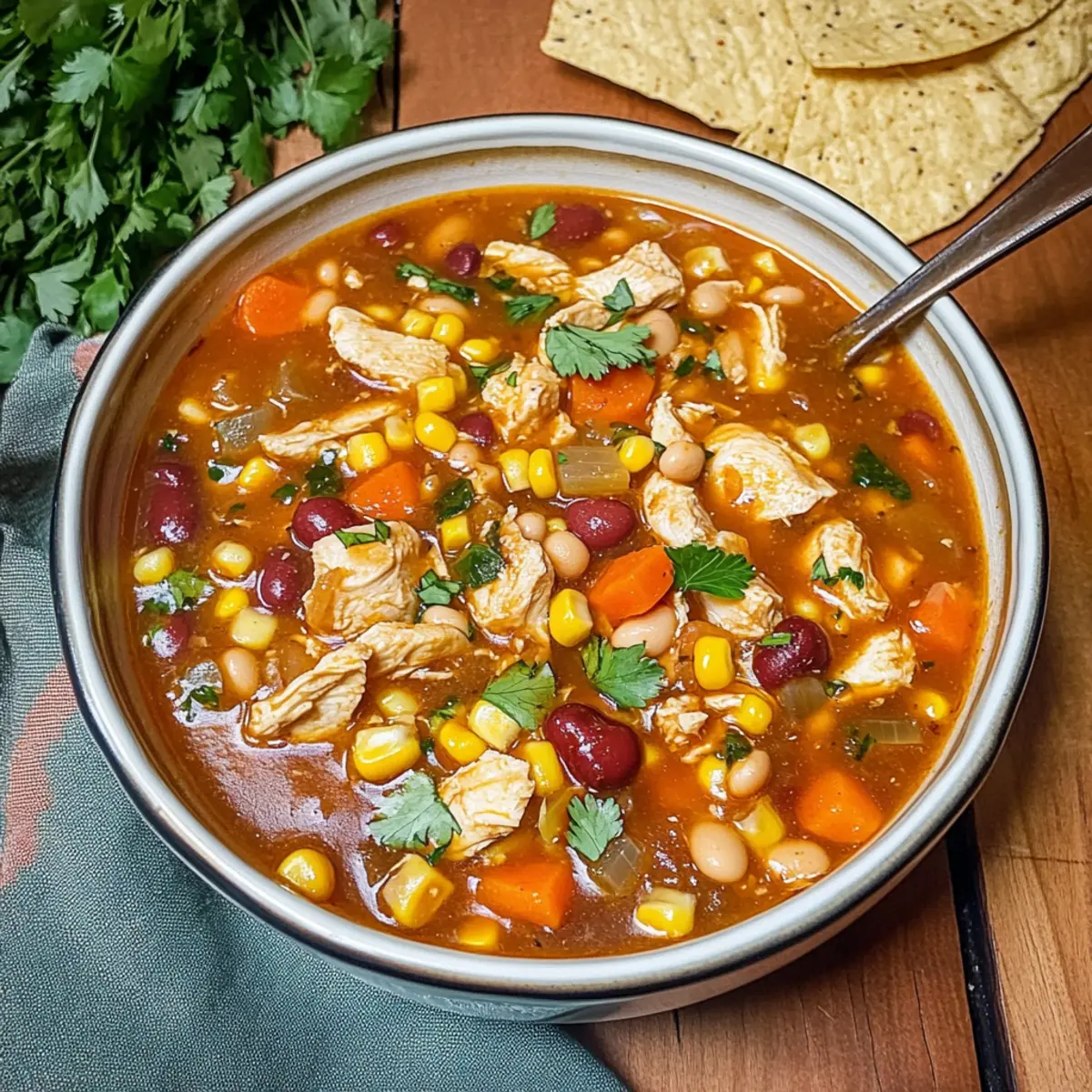 Jump to Recipe Print RecipeAs I settled into my kitchen one rainy afternoon, the unmistakable aroma of smoky barbecue wafted through the air, igniting the kind of warmth that makes you feel at home. This is the moment I knew I had to share my beloved BBQ Chicken Soup recipe with you. It combines tender chicken, sweet corn, and a full-bodied broth to create a comforting bowl that evokes cherished backyard gatherings. Not only is this smoky delight a hearty meal perfect for cozy dinners any night of the week, but it also offers the simple pleasure of knowing you can whip up a dinner that pleases the entire family without the fuss. Plus, leftovers taste even better as the flavors meld together! Curious to make this delicious soup and transform your weeknight dinners? Let’s dive into the recipe! Why is BBQ Chicken Soup a Must-Try? Comforting Warmth: This BBQ Chicken Soup is like a warm hug in a bowl, perfect for chilly evenings. Hearty Ingredients: Packed with tender chicken, sweet corn, and creamy beans, it’s satisfying enough to fill you up. Easy to Make: With straightforward steps, even novice cooks can impress their family with this delicious meal. Flavorful Twist: The smoky notes from BBQ sauce elevate the flavors, making this dish a crowd-pleaser for any occasion. Versatile Option: Customize with your favorite veggies or beans, just like in my Thai Chicken Salad for a different spin! Don’t miss out on serving this alongside some crusty bread or Fried Chicken Street Tacos for the ultimate meal experience! BBQ Chicken Soup Ingredients For the Soup Chicken – Use boneless, skinless chicken breasts for quick cooking and tender texture. Spices – Garlic powder, smoked paprika, oregano, salt, and pepper create a rich flavor; smoked paprika is essential for the BBQ vibe. Veggies – Onion, carrot, and red bell pepper add sweetness and depth; dice finely for even cooking. BBQ Sauce – Choose your favorite style, as this is the key flavor contributor; consider homemade pineapple BBQ for a fun twist. Beans – Pinto beans offer fiber and creaminess; feel free to substitute with kidney beans or black beans. Sweetcorn – Canned for ease; frozen will give a fresher taste and snap in every bite. Chicken Stock – Opt for low-sodium to control the saltiness; homemade is best for robust flavor. Parsley – Fresh parsley brightens the soup with garnishing flair and added flavor. Embrace the enticing flavors of this BBQ Chicken Soup by gathering these simple ingredients, and get ready to make a cozy meal that warms the heart! Step‑by‑Step Instructions for BBQ Chicken Soup Step 1: Season and Brown the Chicken Begin by seasoning your boneless, skinless chicken breasts generously with garlic powder, smoked paprika, oregano, salt, and pepper. Heat a tablespoon of olive oil in a large pot over medium heat. Once hot, add the chicken and cook for about 6-7 minutes on each side until it’s golden brown and cooked through. The aroma should fill your kitchen, signaling the start of your BBQ Chicken Soup. Step 2: Sauté the Vegetables After browning the chicken, carefully remove it from the pot and set aside. In the same pot, add diced onion, carrot, and red bell pepper. Sauté these for 5 minutes until they begin to soften, stirring occasionally. Then, add minced garlic and cook for an additional minute, allowing the flavors to mingle beautifully. This step lays a flavorful base for your hearty BBQ Chicken Soup. Step 3: Combine Ingredients Return the browned chicken to the pot and pour in your favorite BBQ sauce, mixing it well with the sautéed vegetables. Next, add in the pinto beans and sweet corn, followed by the chicken stock. Stir everything together to combine, ensuring that the BBQ Chicken Soup is packed with flavor. The mixture should look vibrant and hearty, ready for the next step. Step 4: Simmer the Soup Bring the soup mixture to a boil over medium-high heat, then reduce the heat to low to let it simmer. Cover and cook for about 10 minutes, allowing the flavors to meld and the chicken to soak up the delicious BBQ profile. You’ll know it’s ready when the soup is bubbling gently and everything looks wonderfully combined. Step 5: Final Touches Once the soup has simmered, stir in freshly chopped parsley for a pop of color and freshness. Taste the BBQ Chicken Soup, adjusting any seasonings as needed to suit your preference. The final result should be thick, hearty, and comforting—perfect for serving hot. Step 6: Serve and Enjoy Ladle the steaming BBQ Chicken Soup into bowls and garnish as desired. Consider toppings like sliced red onion, sour cream, or shredded cheese for an extra flavor boost. Pair this delightful dish with crusty bread or cornbread for a cozy meal that brings warmth to your dining table. What to Serve with Smoky BBQ Chicken Soup Cozying up with a bowl of comforting soup opens the door to delightful meal pairings that enhance the experience. Crusty Bread: This classic pairing provides the perfect vehicle for scooping up the hearty soup, adding a satisfying crunch to every bite. Cornbread Muffins: Their slightly sweet flavor complements the smoky richness of the soup, making for a delightful contrast. Simple Green Salad: A fresh salad with tangy vinaigrette cuts through the richness of the soup, balancing flavors beautifully. Sliced Avocado: Creamy avocado adds a luxurious texture, enhancing each spoonful of BBQ Chicken Soup with a heart-healthy touch. Sweet Potato Fries: The natural sweetness and crispiness of these fries provide a wonderful textural contrast, perfect for dipping! Iced Tea or Lemonade: Light, refreshing beverages like these pair perfectly with the soup, making for a well-rounded meal that’s sure to please all! Chocolate Chip Cookies: Finish off your comforting dinner with a warm cookie; the sweetness pairs surprisingly well with the smoky soup. With these delightful pairings, your BBQ Chicken Soup turns into a warm and memorable meal shared with lov