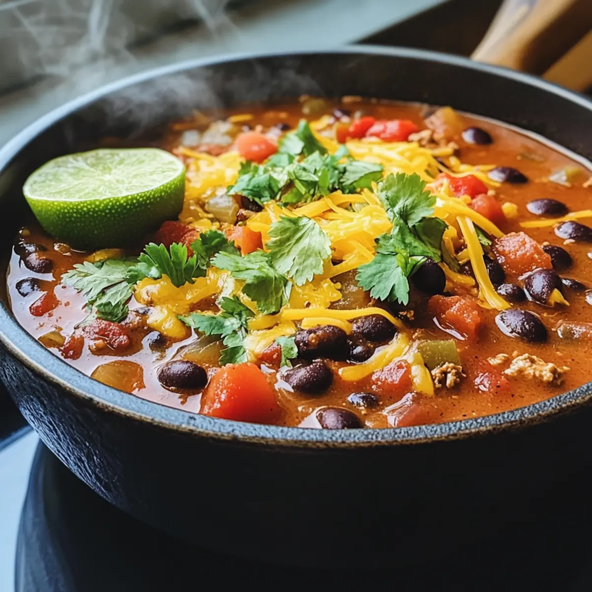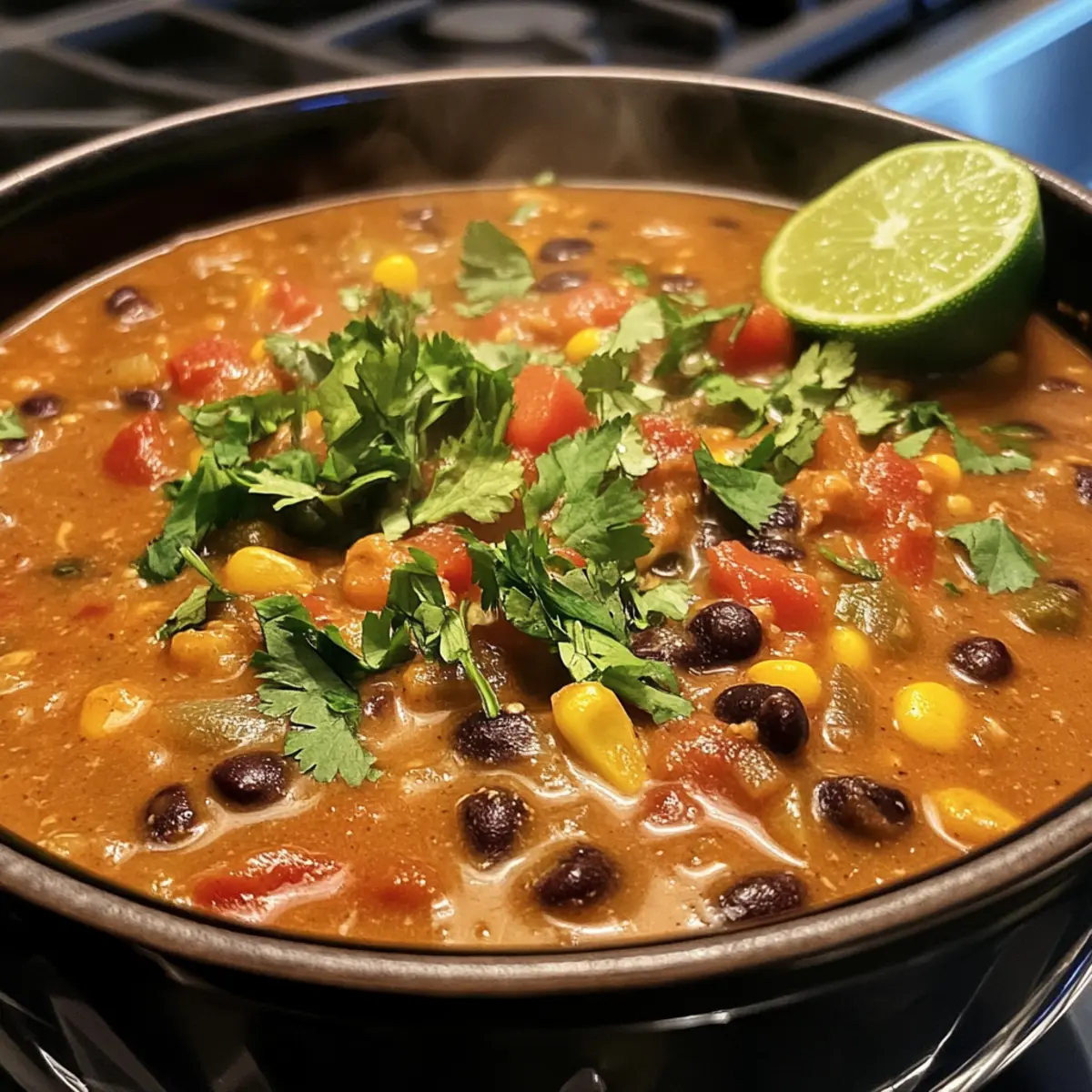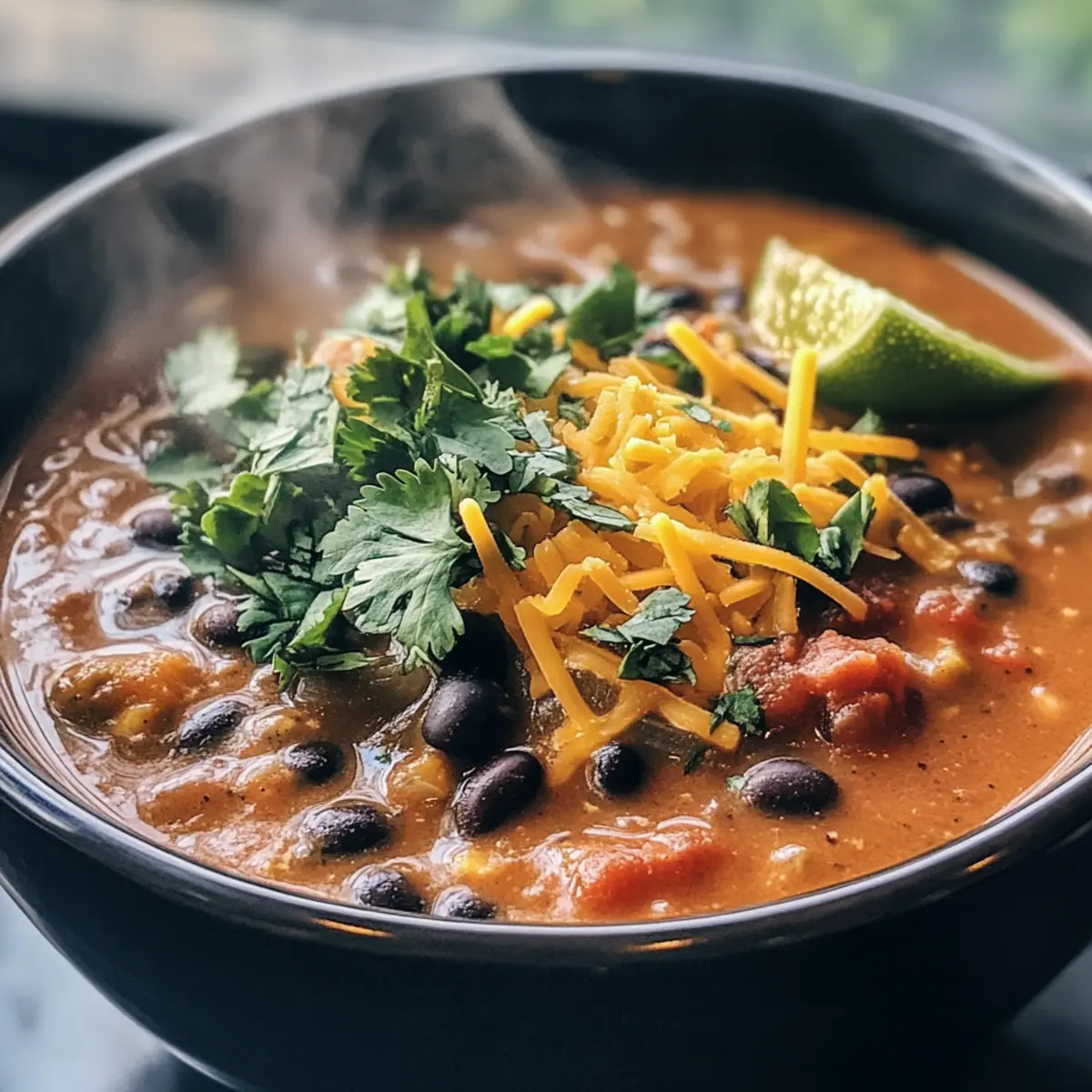 Jump to Recipe Print RecipeAs I poured a steaming bowl of Black Bean Enchilada Soup, the rich aroma wrapped around me like a warm hug, instantly transporting me to a cozy Mexican kitchen. This delightful, plant-based soup combines satisfying ingredients that are not only quick to whip up—ready in just 5 minutes—but also provides a hearty dose of protein and comforting flavor. Imagine savoring each spoonful of creamy, thick broth infused with spices and a tangy squeeze of lime, evoking all the nostalgic feelings of comfort food without sacrificing your health goals. Perfect for those chilly evenings or as a game night favorite, this recipe is a crowd-pleaser that also freezes well, making it an ideal meal prep option. Curious about how to make this delightful dish even more versatile? Let’s dive in! Why is this soup a must-try? Quick and Easy: With only 5 minutes of prep, this soup is perfect for busy days. Nutritious and Filling: Packed with plant-based protein from black beans, it satisfies your hunger without guilt. Versatile Options: Feel free to experiment with add-ins like corn or cilantro for a personal touch. Freezer-Friendly: Make a batch and freeze servings for a convenient meal anytime. Plus, if you enjoy comforting soups like Cajun Potato Soup or Creamy White Chicken Lasagna Soup, this enchilada soup will be a new favorite! Black Bean Enchilada Soup Ingredients • For the Base Diced Onion – Adds flavor and sweetness; can sauté in a little oil or omit for a quicker version. Minced Garlic – Enhances aroma and flavor; fresh garlic is recommended for the best taste. Vegetable Broth – Forms the soup base, providing depth; use low-sodium for a healthier option. Enchilada Sauce – Contributes spiciness and authenticity; opt for brands without added sugars or make your own for a fresher taste. • For the Protein Black Beans (2 cans) – Serves as the protein source; remember to drain and rinse for better flavor. Diced Tomatoes (10 oz) – Adds acidity and moisture; tomatoes with green chilies lend extra flavor. • For Thickening Masa Harina (1/2 cup) – Thickens the soup; can substitute with white or spelt flour or cornstarch for a gluten-free option. • For Flavor Chili Powder (2.5 tsp) – Adds heat and depth; adjust according to your spice preference. Salt (1 tsp) – Balances flavors; use to taste. Cumin (1/2 tsp) – Infuses an earthy flavor; it’s essential for an authentic taste. Juice of 1/2 Lime – Brightens and balances the dish; don’t skip this for enhanced flavor. • For Creaminess Cheddar-style Shreds or Nutritional Yeast (6-8 oz) – Provides creaminess and a cheesy flavor; adjust to your preference; nutritional yeast is a great dairy-free alternative. • Optional Add-ins Corn or diced carrots – Add for extra texture and nutrition; personalize your soup just the way you like it! This Black Bean Enchilada Soup is not only nourishing but also quick to prepare, making it a standout choice for health-conscious comfort food lovers. Step‑by‑Step Instructions for Black Bean Enchilada Soup Step 1: Combine the Base Ingredients In a medium pot, add diced onion, minced garlic, vegetable broth, and enchilada sauce. Stir to combine, letting the ingredients mingle, and bring the mixture to a gentle simmer over medium heat. This step infuses the soup with aromatic flavors. Remember to keep an eye on the pot—about 2–3 minutes should do the trick. Step 2: Add the Main Components Once the base is simmering, incorporate the drained black beans and diced tomatoes into the pot. Mix well to ensure even distribution, as these are the heart of the Black Bean Enchilada Soup. Continue to heat the mixture, allowing it to bubble gently for another 3–4 minutes, while savoring the delicious scent wafting through your kitchen. Step 3: Thicken the Soup Next, take masa harina and gradually whisk it into the soup mixture, preventing lumps from forming. This will thicken the soup beautifully and create a satisfying chili-like texture. Maintain a medium heat, and stir constantly for about 5 minutes, noticing how the soup gradually transforms into a rich and creamy delight. Step 4: Season and Adjust Now that your soup is thickening, add chili powder, cumin, salt, and the juice of half a lime. Stir well to incorporate the spices thoroughly throughout the soup, allowing them to elevate the flavors. Taste your creation at this point to ensure it meets your preference; adjust the seasoning as necessary for that perfect balance. Step 5: Finishing Touches Finally, stir in your choice of cheddar-style shreds or nutritional yeast, letting it melt into the soup for added creaminess. Cook for another minute or two until everything is heated through. The Black Bean Enchilada Soup is now ready to serve, showcasing a velvety texture that’s comforting and warm, ideal for cozy evenings. Step 6: Serve and Enjoy Ladle the soup into bowls and top with crispy crushed tortilla chips or crumbled vegan cornbread for an exciting texture contrast. Serve hot and watch as everyone digs in delightfully to this nourishing, plant-based dish. With each spoonful, the flavors will shine, making it a memorable meal every time. Black Bean Enchilada Soup Variations Feel free to unleash your creativity and make this delicious soup your own with these delightful twists! Bean Swap: Substitute black beans with pinto or white beans for a unique flavor profile. This simple switch can change the entire experience while still keeping it hearty. Broth Options: For non-vegetarians, consider using chicken broth instead of vegetable broth. This adds a rich depth to the soup that fans of comfort food will love. Fresh Herb Boost: Top with chopped cilantro or avocado for a cool, fresh contrast. These classic toppings not only enhance flavor but also add a vibrant look. Spicy Kick: Add diced jalapeños or a splash of hot sauce for an extra kick. Play with the heat until you find your perfect balance, and watch your gue