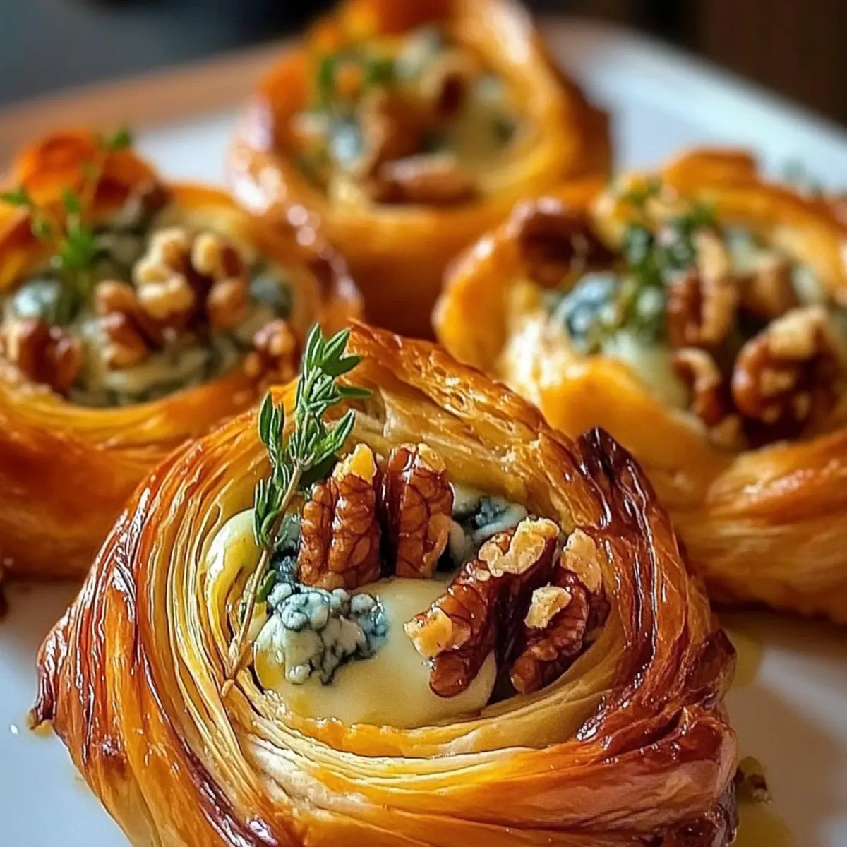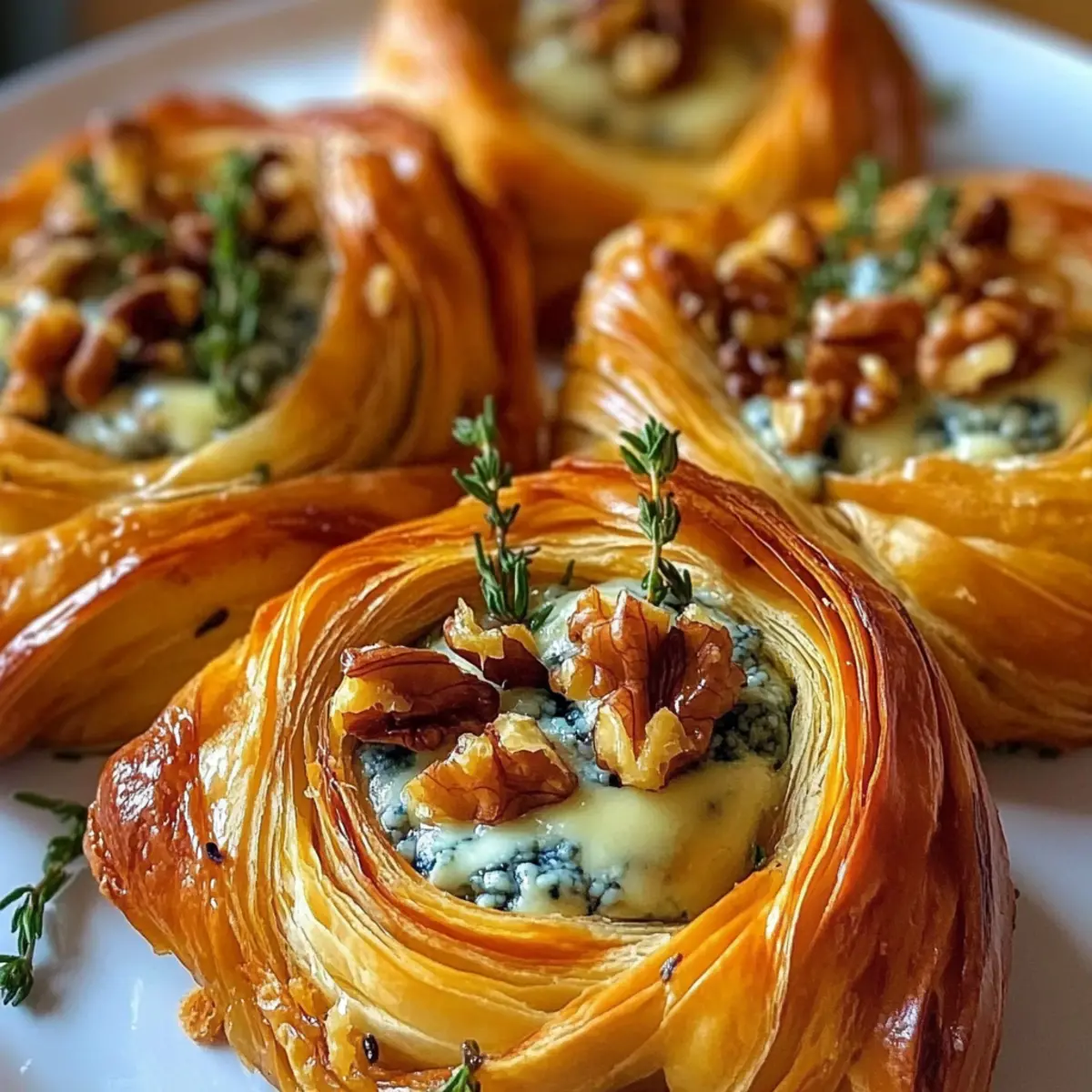 Savory Comfort: This delightful pastry combines the creamy richness of blue cheese with crunchy walnuts and fresh thyme for a taste experience that feels gourmet yet approachable.