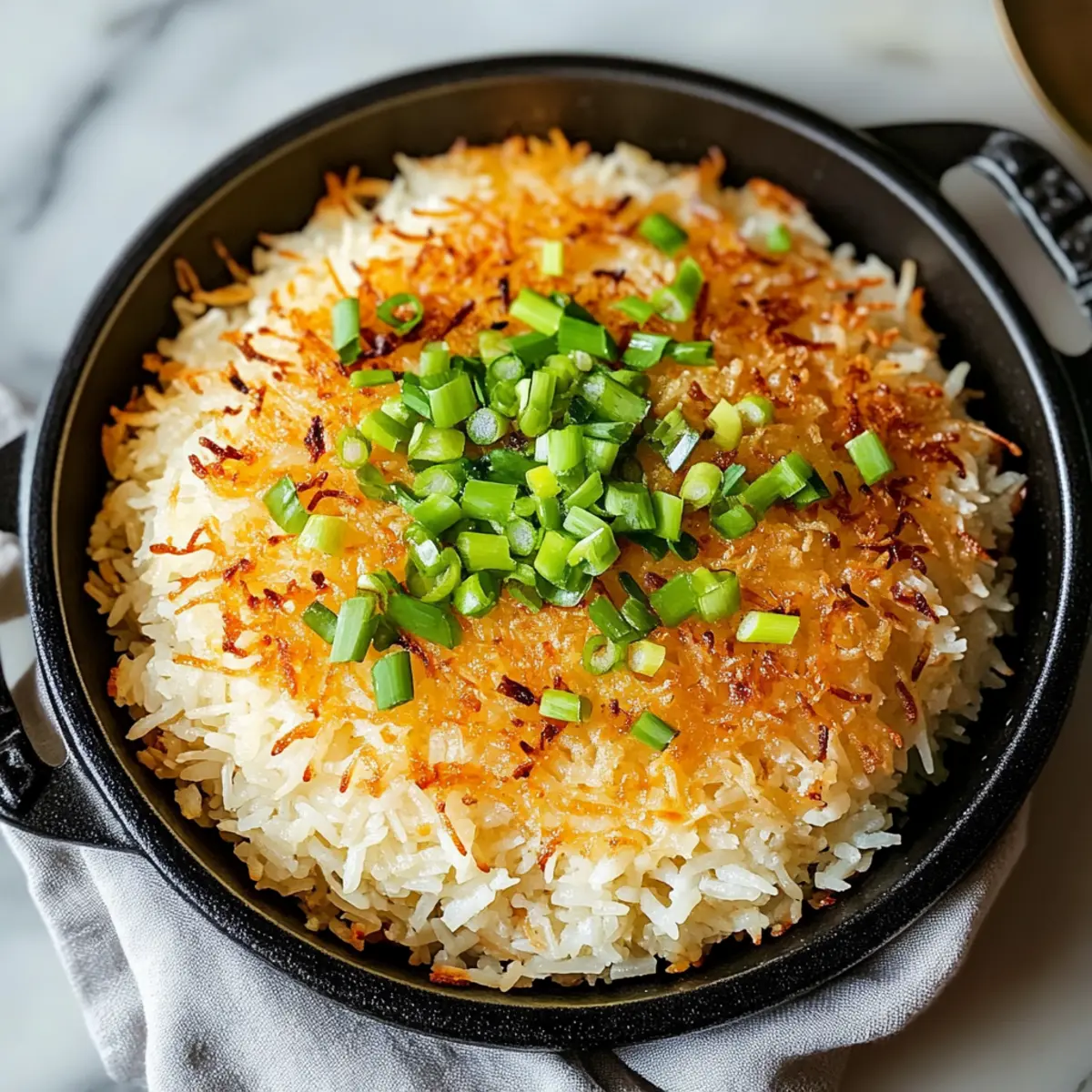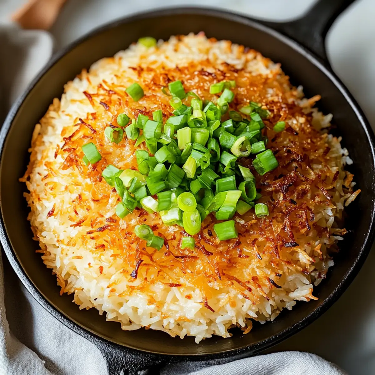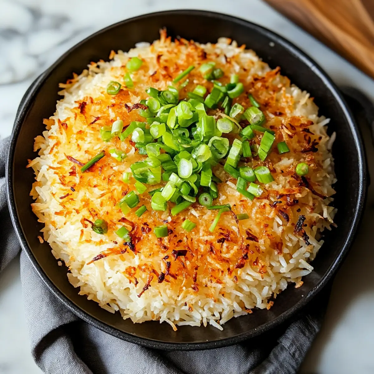 Jump to Recipe Print RecipeAs the sound of sizzling rice fills the kitchen, I can’t help but feel a sense of excitement wash over me. Bobby Flay’s Crispy Coconut Rice is more than just a side dish; it’s a delightful masterpiece that transforms an ordinary meal into something extraordinary. The golden, crispy exterior hints at the fluffy, tender rice inside, all enriched with creamy coconut milk and brightened by fresh scallions. This dish not only takes just a handful of ingredients and minimal prep time, making it a quick go-to for busy nights, but it also brings a unique twist to classic pairings such as Chicken Teriyaki or a refreshing Chicken Avocado Salad. Ready to elevate your cooking game and impress your family or friends? Let’s dive into this crispy delight! Why is Crispy Coconut Rice a must-try? Crispy, vibrant flavors: The combination of coconut milk and scallions creates a tantalizing taste that enhances any dish. Effortless preparation: With just a few simple steps, this recipe fits seamlessly into your busy schedule, making weeknights a breeze. Endless versatility: Use this rice as a base for your favorite proteins or veggies, giving you countless options for customization. Crowd-pleaser appeal: Impress friends and family at your next gathering with this unique side that elevates every meal. Perfect texture: Experience the delightful crunch as you bite into the golden exterior, revealing fluffy rice that adds depth to your plate. For other delicious variations, check out my One Pan Rice or Chicken Rice Casserole for endless possibilities! Bobby Flay’s Crispy Rice Ingredients For the Rice • Carolina Long-Grain Rice – The star ingredient providing structure; jasmine or basmati are good substitutes but could change texture. • Coconut Milk – Infuses the rice with creamy goodness; vegetable broth is a lighter alternative but may require seasoning adjustments. • Salt – Enhances flavor; adjust to your taste preference. • Pepper – Adds warmth; feel free to experiment with freshly cracked black pepper for extra zing. For the Frying • Canola Oil – Ideal for frying to achieve that crispy texture; vegetable oil or avocado oil can also be used. • Scallions – Provides a fresh pop of flavor; substitute with chives if you prefer a milder taste. Now that you have all the ingredients for Bobby Flay’s Crispy Rice, get ready to create a crunchy coconut delight! This dish promises to elevate your meals with its distinct flavor and delightful texture. Step‑by‑Step Instructions for Bobby Flay’s Crispy Rice Step 1: Prepare the Rice In a medium saucepan, combine 1 cup of Carolina long-grain rice with 1 can of coconut milk, 2 teaspoons of salt, 1/4 teaspoon of pepper, and 1 cup of water. Bring the mixture to a boil over medium-high heat, stirring occasionally. Once boiling, stir in the rice, then return to a boil before reducing the heat to medium-low. Cover and simmer for about 18 minutes until the liquid is absorbed and the rice is tender. Step 2: Fluff and Cool the Rice After cooking, remove the saucepan from the heat and let it sit, covered, for an additional 5 minutes to allow the rice to steam. Then, fluff the rice gently with a fork to separate the grains. Spread the fluffy rice out evenly on a large baking sheet to cool completely, which should take about 30 minutes. This step ensures that your Bobby Flay’s Crispy Rice achieves the perfect texture. Step 3: Mix with Scallions Once the rice has cooled, transfer it to a mixing bowl and fold in your chopped scallions. These fresh greens will add a burst of flavor and color to your dish. Make sure the scallions are evenly dispersed throughout the rice for consistent taste, as this mixture is crucial for the final crispy layer when frying. Step 4: Heat the Oil In a large skillet, heat 1/4 cup of canola oil over high heat until shimmering, which should take about 2-3 minutes. Test the oil by dropping a small amount of rice in; it should sizzle immediately. This is the ideal temperature for achieving that golden, crispy exterior you desire for your Bobby Flay’s Crispy Rice. Step 5: Fry the Rice Carefully add the cooled rice mixture to the hot skillet, pressing it down evenly with a spatula to form a compact layer. Cook undisturbed for about 4-5 minutes, or until the bottom layer is golden brown and crispy. Avoid stirring during this time to allow a nice crust to develop. Step 6: Flip the Rice Once the bottom is beautifully golden, use a large plate to flip the rice over in sections. Add a little more oil if necessary and press it down again. Cook for an additional 5 minutes, watching closely to ensure both sides become crispy and brown without burning. You now have beautifully crisped edges on your Bobby Flay’s Crispy Rice. Step 7: Serve and Garnish Once both sides are perfectly crispy, transfer the rice to a serving platter. Optionally, garnish with additional chopped scallions for a burst of freshness. Serve warm alongside your favorite dishes like chicken teriyaki or a refreshing salad to elevate your meal! Storage Tips for Bobby Flay’s Crispy Rice Fridge: Store leftover Bobby Flay’s Crispy Rice in an airtight container for up to 3 days. Ensure it’s completely cooled before sealing to maintain texture. Freezer: For longer storage, freeze the cooled, cooked rice in a freezer-safe bag or container for up to 1 month. Be sure to remove excess air to prevent freezer burn. Reheating: To reheat, microwave individual portions on high for 1-2 minutes, stirring halfway through, or re-crisp in a skillet over medium heat for 5-7 minutes, adding a little oil as needed. Serving Suggestions: When serving after storage, consider garnishing with fresh scallions to refresh the dish’s flavor and presentation! Expert Tips for Bobby Flay’s Crispy Rice Cooling is Key: Ensure the rice is completely cooled before frying; this prevents mushiness and guarantees a perfect crispy texture. Watch the Heat: Cook on high