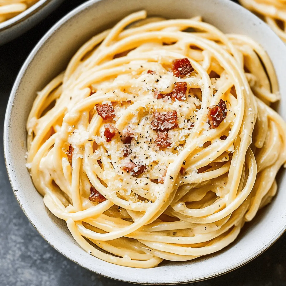 Jump to Recipe Print RecipeAs I stirred the bucatini in the bubbling pot, a wave of nostalgia washed over me—this Italian classic has become a staple in my kitchen. Bucatini Carbonara takes familiar comfort food to new heights with its luscious, cream-free sauce and the intensified flavors of crispy bacon and aromatic garlic. In just under 30 minutes, you can create an impressive dish that feels like a warm hug on a plate, perfect for weeknight dinners or special occasions. The thick bucatini perfectly clings to the silky sauce, making each bite a delightful experience. Ready to elevate your dinner game and savor a touch of Italy tonight? Let’s dive into this irresistible recipe! Why is Bucatini Carbonara a Must-Try? Rich, Creamy Texture: The luscious sauce clings beautifully to the thick bucatini, creating a velvety mouthfeel that elevates every bite. Quick & Easy: With just 30 minutes from stovetop to table, this recipe empowers you to impress without stress, making it perfect for busy weeknights or spontaneous gatherings. Flavor Explosion: The combination of crispy bacon, sharp pecorino Romano, and the hint of garlic delivers a savory punch that will leave your taste buds dancing. Versatile Ingredients: You can easily swap out bacon for pancetta or guanciale based on what you have available, ensuring this dish can be tailored to your preferences or pantry. Crowd-Pleasing Appeal: Whether you’re cooking for family or entertaining friends, Bucatini Carbonara is sure to be a hit, reminiscent of restaurant-quality Italian comfort food. Don’t forget to pair it with a simple green salad for a well-rounded meal that will have everyone asking for seconds! Bucatini Carbonara Ingredients For the Sauce • Bacon/Pancetta – Provides a salty, savory base flavor; you can substitute with any bacon on hand. • Garlic – Adds aromatic depth; while not traditional, it enhances flavor; mince for subtlety or leave thinly sliced for a stronger bite. • Egg – Creates the creamy base of the sauce; using just one whole egg will add richness. • Egg Yolks – Contribute to a velvety texture, increasing creaminess compared to using only egg whites. • Pecorino Romano Cheese – Offers a bold, fruity taste; substitute with Parmesan for a nuttier profile. • Kosher Salt – Enhances overall flavor; don’t forget to season the pasta water and adjust to taste. • Black Pepper – Adds heat; adjust to taste based on your preference. For the Pasta • Bucatini Pasta – Thicker than spaghetti, it provides a chewy texture and holds the sauce beautifully; substitute with spaghetti if needed. Discover the magic of Bucatini Carbonara and bring a comforting Italian feast to your table! Step‑by‑Step Instructions for Silky Bucatini Carbonara with Extra Bacon and Garlic Step 1: Prep the Water Start by bringing a large pot of salted water to a boil over high heat. Aim for a robust rolling boil, which will help the bucatini cook evenly. Once boiling, you’re ready to move on to cooking the pasta, ensuring a perfect al dente texture in your Bucatini Carbonara. Step 2: Cook the Bacon While waiting for the water, dice your bacon or pancetta into small pieces. In a skillet over medium heat, cook the bacon until it’s crispy and golden, about 5-7 minutes. Once done, remove it from the pan, but leave 1 tablespoon of the rendered fat for the sauce, adding rich flavor to your Bucatini Carbonara. Step 3: Create the Sauce In a mixing bowl, whisk together the whole egg, egg yolks, grated pecorino Romano, kosher salt, and freshly cracked black pepper. The mixture should be smooth and creamy—this will form the luscious sauce that clings to your bucatini. Set this aside while you cook the pasta. Step 4: Cook the Bucatini Once the water is boiling, add the bucatini to the pot and cook it for about 9-10 minutes, stirring occasionally. Aim for al dente, as the pasta will continue to cook when mixed with the sauce. Reserve about a cup of pasta water before draining it; this starchy water will help achieve the perfect consistency later. Step 5: Sauté the Garlic With the bacon fat still in the skillet, lower the heat to medium-low and add minced or thinly sliced garlic to the pan. Sauté for 1-2 minutes until fragrant but not browned; this will infuse your Bucatini Carbonara with a lovely aromatic flavor that complements the bacon beautifully. Step 6: Combine Everything Transfer the drained bucatini directly into the skillet with the sautéed garlic and bacon fat. Toss gently to coat the pasta. Remove the pan from heat and rapidly whisk in a little reserved pasta water into the egg-cheese mixture before adding it to the pasta; this will create the creamy sauce. Step 7: Adjust the Consistency Using additional reserved pasta water, continue to toss the bucatini until the sauce is silky and coats the noodles well—aim for a luxurious consistency. Stir in the crispy bacon, allowing the warmth to infuse through the dish. Add more salt and pepper to taste, finalizing the flavor of your Bucatini Carbonara. Step 8: Serve Immediately Plate your Bucatini Carbonara right away, garnishing with extra pecorino Romano and a dash of black pepper for added flavor. This dish is best enjoyed fresh as it retains its richness and creaminess. Pair it with a simple green salad for a delightful dining experience. Bucatini Carbonara Variations & Substitutions Feel free to make this Bucatini Carbonara your own with these delightful variations that cater to different tastes and dietary needs! Pancetta or Guanciale: Swap out the bacon for pancetta or guanciale for an authentic Italian flavor that elevates your dish. Dairy-Free: Use cashew cream and nutritional yeast instead of cheese for a creamy, dairy-free alternative that’s still rich and satisfying. Whole Grain: Opt for whole grain or lentil-based bucatini for a healthier twist that adds extra fiber and nutrients to your meal. Mushroom Magic: Incorporate sautéed mushrooms for an earthy f