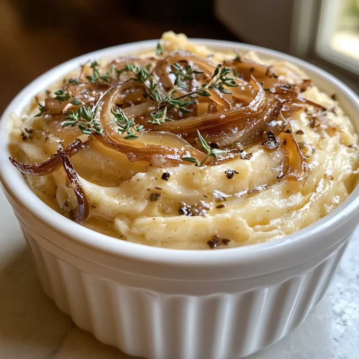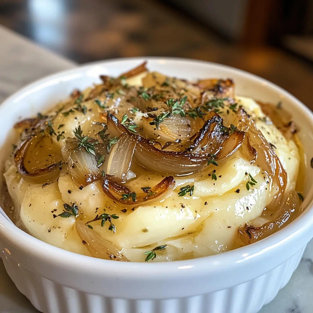 Jump to Recipe Print RecipeAs I stood over the stove, the enticing aroma of caramelized shallots wafted through my kitchen, instantly transporting me to a quaint bistro in the heart of Paris. This Creamy Caramelized Shallot Butter with Thyme and Marsala is not just a compound butter; it’s the perfect companion for anyone ready to take their savory dishes to gourmet heights. With just a handful of ingredients and less than an hour of your time, you can transform simple vegetables, grilled meats, or crusty bread into something spectacular. Plus, it’s an impressive make-ahead treat, allowing the flavors to meld beautifully in your refrigerator! Are you ready to elevate your meals with this rich, aromatic delight? Why Is Caramelized Shallot Butter a Must-Try? Elevation: This creamy compound butter takes ordinary dishes and transforms them into gourmet creations that impress. Ease: With just a few common ingredients and straightforward steps, you can master this recipe even if you’re a novice cook. Flavor Explosion: The blend of sweet shallots, earthy thyme, and nutty marsala results in a flavor profile that enhances everything from grilled meats to roasted veggies. Versatility: Whether you spread it on toasted bread or melt it over freshly grilled steak, the possibilities are endless. Want more ideas? Check out my Butternut Squash Lasagna for a delightful alternative. Make-Ahead: Prepare this ahead of time, letting the flavors deepen in the refrigerator, and enjoy its rich, seductive taste whenever you need a quick enhancement to your meals! ad Caramelized Shallot Butter Ingredients For the Butter • Unsalted Butter – Base for the compound butter; provides creaminess. Note: Use softened butter for easier mixing. • Shallots – Main flavor component; adds sweetness upon caramelization. Note: Substitute with onions if necessary. • Olive Oil – Used for sautéing shallots; helps achieve a golden color. Note: Can be replaced with butter for a richer flavor. • Salt – Enhances flavor of the butter and caramelized shallots. Note: Adjust to taste preference. • Fresh Thyme – Aromatic herb that complements the shallots and butter. Note: Dried thyme can substitute, but adjust quantity down. • Marsala Wine – Adds a nutty sweetness and depth to the flavor profile. Note: Sherry is a suitable alternative. Step‑by‑Step Instructions for Caramelized Shallot Butter Step 1: Prep Your Shallots Begin by peeling and thinly slicing 3-4 shallots. The slices should be uniform for even cooking. Set your sliced shallots aside and take out a skillet, ready for caramelization, as this will create the base for your luscious Caramelized Shallot Butter. Step 2: Heat the Skillet Place your skillet on the stove over medium heat. Once the skillet is warm, add 1 tablespoon of olive oil and 1 tablespoon of unsalted butter. Allow the butter to melt fully, swirling it around the pan to coat the surface. This step ensures a rich flavor that enhances the sweetness of the shallots. Step 3: Caramelize the Shallots Add the sliced shallots to the skillet, along with a pinch of salt. Stir them gently to coat with the oil and butter, letting them bask in the heat. Cook for about 30 minutes, stirring occasionally, until the shallots appear deeply golden brown and beautifully caramelized, releasing a sweet aroma. Step 4: Introduce Thyme and Marsala In the final 5 minutes of cooking, sprinkle in a handful of fresh thyme leaves and pour in 2 tablespoons of marsala wine. Stir the mixture well and allow it to cook until the wine reduces slightly, infusing the shallots with a nutty sweetness. Keep an eye on the skillet as you work, enjoying the delightful fragrance. Step 5: Cool the Mixture Once the shallots are perfectly caramelized and fragrant, remove the skillet from the heat. Allow the mixture to cool for about 5 minutes to avoid melting the butter when combined later. This cooling step is essential for achieving the right consistency in your Caramelized Shallot Butter. Step 6: Combine with Butter In a mixing bowl, place your softened unsalted butter and then add the cooled shallot mixture. Use a fork or spatula to mix thoroughly, ensuring the shallots are evenly distributed throughout the butter. The warmth of the shallots will help create a smooth, creamy compound. Step 7: Season to Taste As you mix your Caramelized Shallot Butter, don’t forget to taste! Add additional salt and pepper as desired. This step is crucial to enhance the flavor profile, ensuring your butter is seasoned to perfection for spreading or drizzling. Step 8: Store and Chill Transfer your luxurious Caramelized Shallot Butter into an airtight container, smoothing the top with a spatula. Refrigerate for at least an hour until it firms up. This chilling will solidify the butter, making it perfect for spreading and adding that gourmet touch to your dishes! Expert Tips for Caramelized Shallot Butter Watch the Heat: Keep a close eye on the skillet while caramelizing shallots to prevent burning. If needed, reduce the heat for even cooking. Uniform Slices: Make sure your shallots are sliced evenly; this helps them caramelize at the same rate and develop that rich flavor consistently. Cool Before Mixing: Allow the sautéed shallots to cool before mixing them with the softened butter to maintain a smooth consistency in your Caramelized Shallot Butter. Taste and Adjust: Don’t skip the tasting step! Adding salt and pepper to your mixture while mixing ensures a well-balanced flavor that complements your dishes beautifully. Storage Secrets: Keep your compound butter in an airtight container in the refrigerator for up to 2 weeks or freeze for later use, ensuring you have this delicious addition on hand! What to Serve with Caramelized Shallot Butter Elevate your dining experience by pairing this rich and aromatic delight with simple, savory dishes that come alive. Toasted Baguette: Slather this butter over warm, crusty baguette slices for a luxurious 