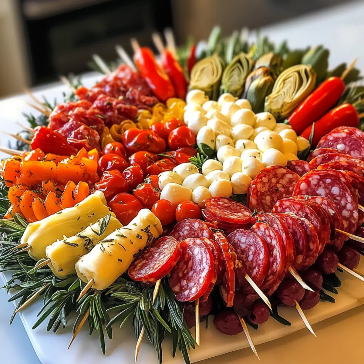 On a large platter or serving board, arrange the skewers in a circular wreath shape. Work your way from the inside out, fanning them out for an eye-catching presentation. Leave enough space for all the skewers while ensuring the wreath maintains its glorious round form. It’s an artistic yet effortless way to display your delicious charcuterie.
