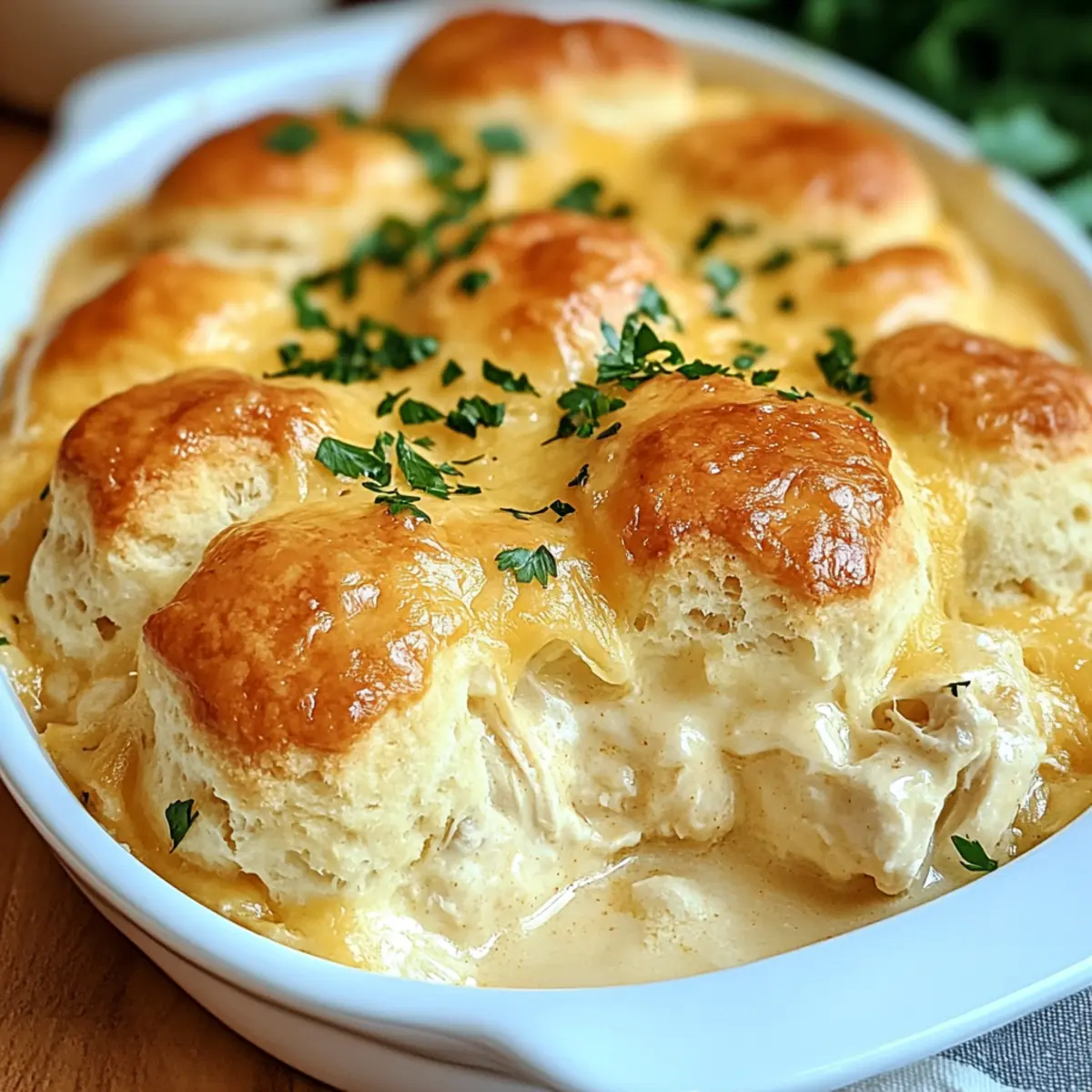 Jump to Recipe Print RecipeThere’s a certain magic in the kitchen when the aroma of warm, buttery biscuits fills the air. I found myself smiling the other day while flipping through my favorite comfort food recipes and stumbled upon a dish that immediately made my mouth water: Cheddar Bay Chicken Cobbler. This delightful comfort food features a creamy chicken casserole happily hidden beneath a golden blanket of Cheddar Bay biscuits, making it a perfect choice for cozy weeknight dinners or family gatherings. Not only is it a heartwarming meal, but it’s also incredibly simple to whip up, turning your kitchen into a haven of deliciousness without much fuss. If you’re looking for a dish that will have your loved ones asking for seconds, let’s take a closer look at this irresistible recipe. What’s your favorite twist on classic comfort food? Why Is Cheddar Bay Chicken Cobbler Irresistible? Warm, Cozy Delight: There’s nothing quite like the comforting aroma of this dish wafting through your home. Creamy Richness: The savory chicken filling combines seamlessly with tangy sour cream and a hint of garlic, creating a flavor explosion. Easy & Quick: This recipe allows you to utilize rotisserie chicken, saving time for a busy weeknight. Crowd-Pleasing Comfort: Perfect for family gatherings, it’s a dish that brings everyone together, leaving them asking for more. Serve it alongside a refreshing side salad or roasted veggies from your favorite recipe like Maple Brie Cheddar for a balanced meal, and watch as this dish becomes a beloved staple in your home. Cheddar Bay Chicken Cobbler Ingredients For the Chicken Filling Cooked, shredded chicken – Adds heartiness and a primary protein source; rotisserie chicken makes for a quicker preparation. Milk – Provides creaminess; swap with unsweetened almond milk for a dairy-free version. Chicken broth – Enhances the savory flavor; you can substitute vegetable broth for a vegetarian option. Frozen mixed vegetables – Adds color and nutrition; fresh vegetables can elevate the dish as well. Sour cream – Contributes tangy creaminess; Greek yogurt is a healthy alternative. Cream of chicken soup – Serves as a binder for the filling; use mushroom soup for a vegetarian variant. Garlic powder – Deepens the flavor; fresh minced garlic offers an even more robust taste. Black pepper – Provides seasoning; adjust to your preferred spice level. For the Biscuit Topping Cheddar Bay Biscuit mix – Offers delicious flavor and texture; a homemade biscuit recipe works fine too. Shredded cheddar cheese – Enhances the biscuit flavor; feel free to experiment with different cheeses like Monterey Jack. Butter (melted) – Bastes the biscuit topping for richness; olive oil is a lighter substitution. For Garnish Fresh parsley (optional) – Adds a pop of color and freshness; can be omitted if unavailable. This Cheddar Bay Chicken Cobbler is a must-try for those craving comfort; each bite is a cozy hug for the soul! Step‑by‑Step Instructions for Cheddar Bay Chicken Cobbler Step 1: Preheat and Prepare the Dish Begin by preheating your oven to 375°F (190°C) and greasing a 9×13-inch baking dish with non-stick spray or butter. This ensures that your Cheddar Bay Chicken Cobbler comes out effortlessly after baking. Make sure your baking dish is ready to hold all those delightful layers of chicken and biscuits. Step 2: Mix the Creamy Filling In a large mixing bowl, combine the milk, sour cream, and cream of chicken soup until the mixture is smooth and unified. Stirring these together creates a creamy base for the filling of your Cheddar Bay Chicken Cobbler. This step takes just a couple of minutes, so be sure to blend well for an even consistency. Step 3: Add Chicken and Vegetables Next, incorporate the garlic powder, black pepper, frozen mixed vegetables, and shredded chicken into your creamy mixture. Gently fold everything together until the chicken and veggies are evenly coated in the sauce. This step enhances the flavor and texture of your filling, bringing together a heartwarming blend in every scoop. Step 4: Transfer the Filling to the Baking Dish Pour the chicken mixture into the prepared baking dish, spreading it out evenly with a spatula. Make sure the filling layer is uniform to ensure even cooking throughout your Cheddar Bay Chicken Cobbler. This creates the cozy base that your biscuits will top, making it a hearty family favorite. Step 5: Prepare the Biscuit Topping Following the instructions on the Cheddar Bay Biscuit mix packaging, prepare the dough, adding in the shredded cheddar cheese for an extra burst of flavor. Mix until the ingredients are just combined. It’s essential to avoid overmixing, as you want your biscuit topping to remain light and fluffy once baked. Step 6: Spoon the Biscuit Dough Using a tablespoon, dollop spoonfuls of the biscuit dough over the chicken mixture in the baking dish, ensuring that it evenly covers the filling. The dough won’t need to completely cover the chicken, as it will spread during baking, creating a comforting crust for your Cheddar Bay Chicken Cobbler. Step 7: Drizzle and Garnish Carefully drizzle the melted butter over the biscuit layer, ensuring each biscuit piece gets a touch of richness. If you like, sprinkle fresh parsley on top for a pop of color and flavor. This step adds an appealing finish to your dish, enhancing both taste and presentation as it bakes. Step 8: Bake to Golden Perfection Place the baking dish in the preheated oven and bake for 40 to 45 minutes, or until the biscuits are golden brown and cooked through. You’ll know it’s ready when the top is beautifully browned, and the filling is bubbly around the edges, creating that irresistible comfort food aroma in your kitchen. Step 9: Rest and Serve After baking, let the Cheddar Bay Chicken Cobbler sit for about 5 minutes to firm up before serving. This brief resting time allows the flavors to settle, making for a better presentation