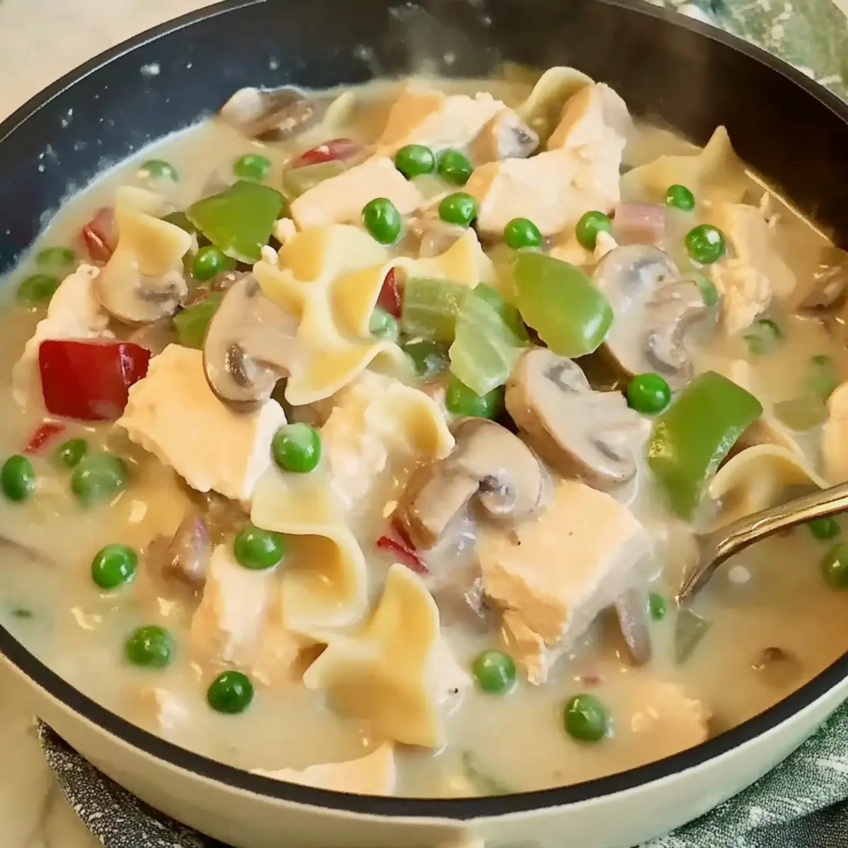 Jump to Recipe Print RecipeIn the hustle and bustle of a weeknight, finding time to prepare a fulfilling meal can feel like a mini crisis. But fear not—this creamy Chicken a la King recipe is here to save the day! The beauty of this comfort food lies in its quick prep and the delightful combination of tender chicken, earthy mushrooms, and fresh vegetables swimming in a velvety sauce. Whether you’ve got leftover rotisserie chicken on hand or you want to mix things up with tuna or salmon, this dish has you covered. It’s not only an easy solution for busy evenings, but it also fills your kitchen with mouthwatering aromas that beckon for comfort. Are you ready to dive into this deliciously creamy creation? Let’s get started! Why is Chicken a la King irresistible? Creamy Comfort: Every bite of Chicken a la King delivers a luscious, velvety sauce that wraps tender chicken and vibrant veggies in a cuddle of flavor. Quick and Easy: This dish can be whipped up in under 30 minutes, making it a lifesaver for busy weeknights when time is tight. Versatile Options: Whether using leftover rotisserie chicken or mixing in tuna, the variations make it adaptable to whatever you have on hand—perfect for a spontaneous dinner! Heartwarming Appeal: The delightful aroma it fills your kitchen with will surely have everyone gathering around the table, smiling and ready to dig in. Hearty Meal: Serving it over rice, egg noodles, or even in puff pastry transforms a simple recipe into a feast that leaves a lasting impression on family and friends. For more quick meals like this, check out our easy Thai Chicken Salad or try some hearty White Chicken Lasagna when you’re in need of something extra comforting! Chicken a la King Ingredients • A comforting dish awaits you! For the Sauce Butter – Adds richness and helps sauté the vegetables. Garlic – Enhances flavor with its aromatic nature; use freshly minced for the best results. All-Purpose Flour – Thickens the sauce; substitutable with gluten-free flour for a lighter touch. Low-Sodium Chicken Broth – Provides a flavorful base; vegetable broth can be used for a lighter variant. Half and Half – Creates a creamy texture; can be replaced with milk for a lower-fat option. For the Filling Cooked Chicken (Diced or Shredded) – Main protein source; using rotisserie chicken saves time and adds convenience. Mushrooms (Cremini or White Button) – Contributes umami flavor and texture; brown for enhanced taste. Yellow Onion – Offers sweetness and an aromatic base for the dish. Green Bell Pepper – Adds freshness and color; can substitute with red or yellow bell pepper for a sweeter taste. Frozen Peas – Brightens the dish and adds slight sweetness; best used over canned or fresh peas. Diced Pimentos – Adds color and flavor; ensure they are drained well to avoid excess moisture. Optional Variations Tuna or Salmon – Substitute cooked chicken with these for a tasty seafood twist. Chopped Carrots or Celery – Boosts nutrition by adding extra veggies! Step‑by‑Step Instructions for Chicken a la King Step 1: Melt the Butter In a large skillet or Dutch oven, melt 3 tablespoons of butter over medium-high heat until bubbly, about 2 minutes. This rich base will enhance the flavors of your Chicken a la King. Once melted, prepare to add your mushrooms for a savory, earthy depth. Step 2: Sauté the Vegetables Add 8 ounces of sliced mushrooms to the skillet and sauté for 2–3 minutes, until they turn golden brown and fragrant. Next, add 1 diced yellow onion and 1 green bell pepper, cooking until they soften, about 4–5 minutes. The aroma will be delightful as the ingredients begin to meld. Step 3: Incorporate Garlic and Mustard Lower the heat to medium-low and stir in 2 cloves of minced garlic and 1 teaspoon of dry mustard. Cook for about 1 minute, allowing the garlic to become aromatic without browning. Then, sprinkle in 1/4 cup of all-purpose flour, stirring continuously for 2 minutes until the mixture is lightly golden. Step 4: Create the Sauce Gradually whisk in 1 cup of low-sodium chicken broth, ensuring there are no lumps. Increase the heat slightly and simmer the mixture for 3–4 minutes, stirring frequently, until the sauce has thickened and coats the back of a spoon. This creamy foundation is the essence of your Chicken a la King dish. Step 5: Add Cream and Vegetables Reduce the heat to low and slowly stir in 1 cup of half and half. Next, add 1 cup of frozen peas and a 4-ounce jar of diced pimentos, ensuring they are well-drained beforehand. Cook for an additional 2–3 minutes, until the peas are warmed through and vibrant, enhancing the dish’s color. Step 6: Mix in the Chicken Finally, fold in 2 cups of diced or shredded cooked chicken. Stir gently for about 3 minutes until the chicken is heated through, soaking up the creamy sauce. This step brings the Chicken a la King together, ensuring each bite is hearty and satisfying. Step 7: Adjust Seasoning Taste and season the Chicken a la King with salt and pepper according to your preference. If the sauce is too thick, you can add a little more chicken broth for desired consistency. This final touch will ensure your comforting dish is perfectly seasoned and ready to serve. Chicken a la King Variations Feel free to customize your Chicken a la King with these delightful twists that will elevate your cozy meal to new heights! Seafood Twist: Substitute chicken with cooked tuna or salmon for a delicious seafood variation. This change adds a new layer of flavor, perfect for seafood lovers! Extra Veggies: Toss in chopped carrots or celery to boost nutrition without compromising taste. A handful of vibrant veggies not only expands the flavor profile but also enhances the dish’s appeal. Gluten-Free Option: Swap out all-purpose flour for a gluten-free alternative to cater to dietary needs. Your creamy sauce will still be deliciously thick and satisfying! Pasta Alternative: Use rice noodles or gluten-free