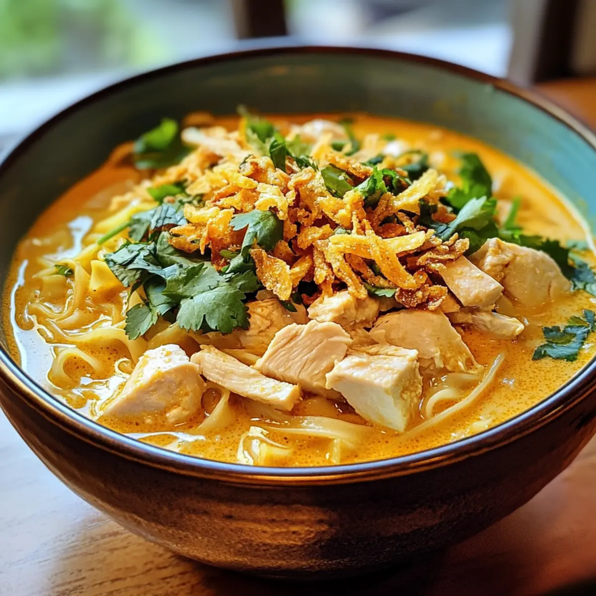 As the chill of autumn sets in, I find myself gravitating towards comforting bowls of warmth. My go-to? This Thai Chicken Curry Noodle Soup, a delightful twist on the classic Khao Soi. With tender chicken enveloped in a creamy coconut broth that’s both spicy and soothing, this dish is a hug for the soul on chilly days. Quick to prepare and easily adaptable, you can use your favorite noodles, making it a flexible crowd-pleaser that’s sure to satisfy. Topped with vibrant herbs, crispy onions, and a squeeze of lime, every spoonful is a flavorful journey that invites you to savor the moment. Curious how to recreate this cozy experience in your own kitchen? Let’s dive into the details!