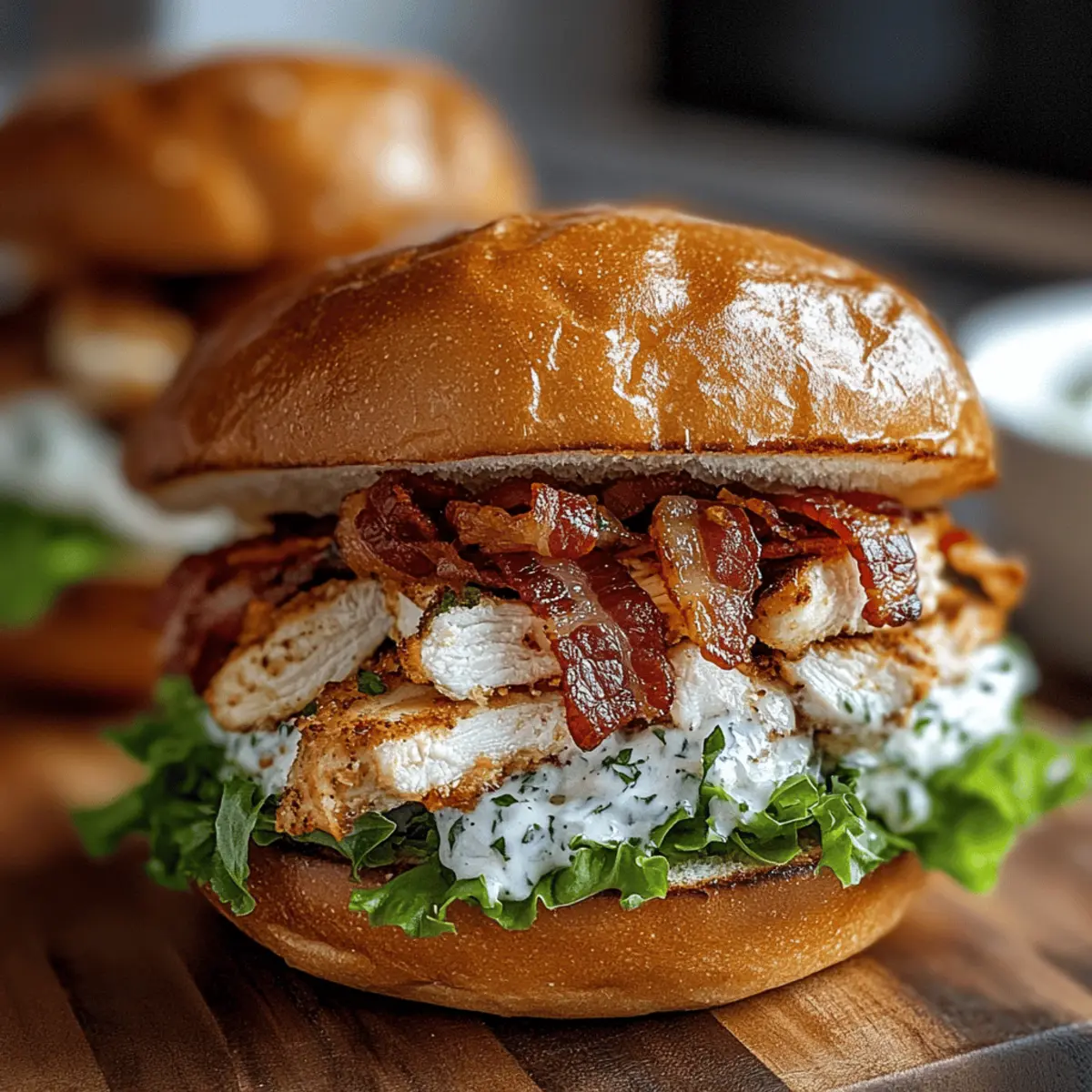 Jump to Recipe Print RecipeAs I unwrapped my lunch, the mouthwatering aroma of crispy bacon and freshly cooked chicken filled the air, taking me right back to those carefree summer picnics. Today, I’m excited to share my version of the Chopped Chicken Bacon Ranch Sandwich—a fantastic quick and easy recipe that perfectly bridges nostalgia and convenience. This satisfying sandwich combines tender chicken breast, crunchy bacon, and creamy ranch dressing, creating a delightful harmony of flavors and textures. In just 35 minutes, you can whip up this irresistible dish, making it an ideal choice for both bustling weeknights or leisurely weekends. Plus, it’s a crowd-pleaser that can easily be enjoyed as a wholesome lunch or comforting dinner. Who’s ready to elevate their homemade cooking experience? Why not treat yourself today? Quick and Easy: This Chopped Chicken Bacon Ranch Sandwich comes together in just 35 minutes, making it perfect for busy weekdays or lazy weekends. Crowd-Pleasing Delight: The combination of tender chicken, crispy bacon, and creamy ranch dressing guarantees this sandwich will be a hit with family and friends, appealing to both kids and adults alike. Flavor Explosion: With every bite, enjoy the harmonious blend of savory flavors and textures that will transport you back to summer picnics. Versatile Ingredients: Feel free to customize with your favorite toppings like spinach or bell peppers, or make it lighter with Greek yogurt ranch. Plus, this dish pairs perfectly with sweet potato fries or a refreshing side salad. Effortless Cleanup: Say goodbye to complicated meals! This sandwich requires minimal cleanup and can be stored for quick reheating later. Consider making extra ranch chicken mix for easy meal prep. Chopped Chicken Bacon Ranch Sandwich Ingredients Get ready to savor every bite! For the Chicken and Bacon Mix • Chicken Breasts – Provides lean protein and a satisfying texture; for a faster prep, use shredded rotisserie chicken. • Bacon – Adds a crispy texture and smoky flavor; consider cooking extra crispy for an even better crunch. • Ranch Dressing – Acts as a flavorful binding agent for the chicken and bacon mix; substitute with Greek yogurt or a low-calorie dressing for a lighter option. For the Fresh Toppings • Shredded Lettuce – Adds freshness and crunchy texture; feel free to swap in spinach or arugula for a different spin. • Diced Tomatoes – Provides juicy bursts of flavor and acidity; for a crunchy alternative, consider using diced bell peppers. For Assembling the Sandwich • Sandwich Buns/Rolls – Holds the fillings and provides essential structure; brioche offers buttery goodness, while ciabatta gives a delightful crust. • Olive Oil – Used for cooking the chicken; can be substituted with canola oil or avocado oil if preferred. Step‑by‑Step Instructions for Chopped Chicken Bacon Ranch Sandwich Step 1: Heat the Skillet Begin your Chopped Chicken Bacon Ranch Sandwich by heating 1 tablespoon of olive oil in a large skillet over medium heat. Keep an eye on the oil until it shimmers, indicating it’s hot and ready for cooking. This will create the perfect sear on the chicken, giving it that lovely golden color. Step 2: Cook the Chicken Add your diced chicken breasts to the skillet, seasoning generously with salt and pepper. Sauté the chicken for 8–10 minutes, stirring occasionally until it turns white and no longer pink in the center. This ensures your chicken is thoroughly cooked and juicy, forming the delicious base for your sandwich. Step 3: Prepare the Bacon While the chicken cooks, heat another skillet over medium heat. Add in 4–6 strips of bacon and cook until crispy, which should take about 5–7 minutes. Keep an eye on it to avoid burning; the bacon should be golden and crunch easily when bitten. Once done, remove it from the skillet and chop it into bite-sized pieces. Step 4: Combine Ingredients Once the chicken is fully cooked, lower the heat and combine the cooked chicken, chopped bacon, and ½ cup of ranch dressing in the original skillet. Stir well for about 2–3 minutes, allowing the flavors to meld together. You want everything coated in that creamy ranch goodness, making this sandwich truly irresistible. Step 5: Assemble the Sandwich To assemble your Chopped Chicken Bacon Ranch Sandwich, take your choice of sandwich bun and layer shredded lettuce and diced tomatoes on the bottom. Carefully spoon the chicken-bacon-ranch mixture on top, creating a hearty stack of deliciousness that’s sure to satisfy. Step 6: Serve and Enjoy Serve your assembled Chopped Chicken Bacon Ranch Sandwich immediately for the best flavor and texture. The warm mixture against the fresh toppings creates a delightful experience. Pair it with sweet potato fries or a crisp side salad for a complete meal that feels like a treat. Expert Tips for Chopped Chicken Bacon Ranch Sandwich Cook Chicken Properly: Ensure the chicken is fully cooked but not overdone; an internal temperature of 165°F keeps it juicy. Bacon Love: For crispier bacon, use a higher heat and cook it until it’s golden brown. This adds extra crunch to your sandwich! Ranch Variety: Feel free to experiment with different ranch dressings, like spicy or herb-infused, to elevate your chopped chicken bacon ranch sandwich. Toppings Matter: Don’t skip on the fresh toppings; they balance the richness of the ranch and bacon, adding freshness and crunch. Storage Solutions: Make extra chicken-bacon mix and store it in the fridge for up to 4 days. It’s great for quick meals! How to Store and Freeze Chopped Chicken Bacon Ranch Sandwich Fridge: Store leftover chicken ranch mix in an airtight container in the fridge for up to 4 days to maintain freshness and flavor. Freezer: For longer storage, freeze the chicken-bacon mixture in small portions. It can last up to 3 months in the freezer, making quick-meals a breeze! Reheating: When ready to enjoy, thaw in the fridge overnight a