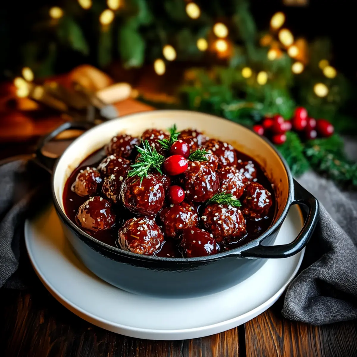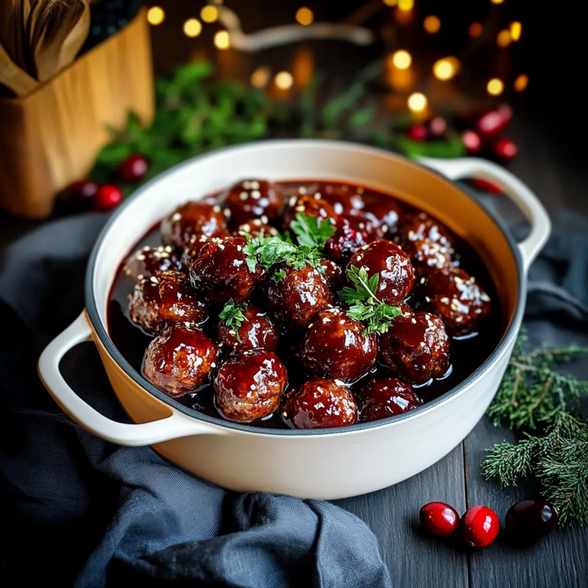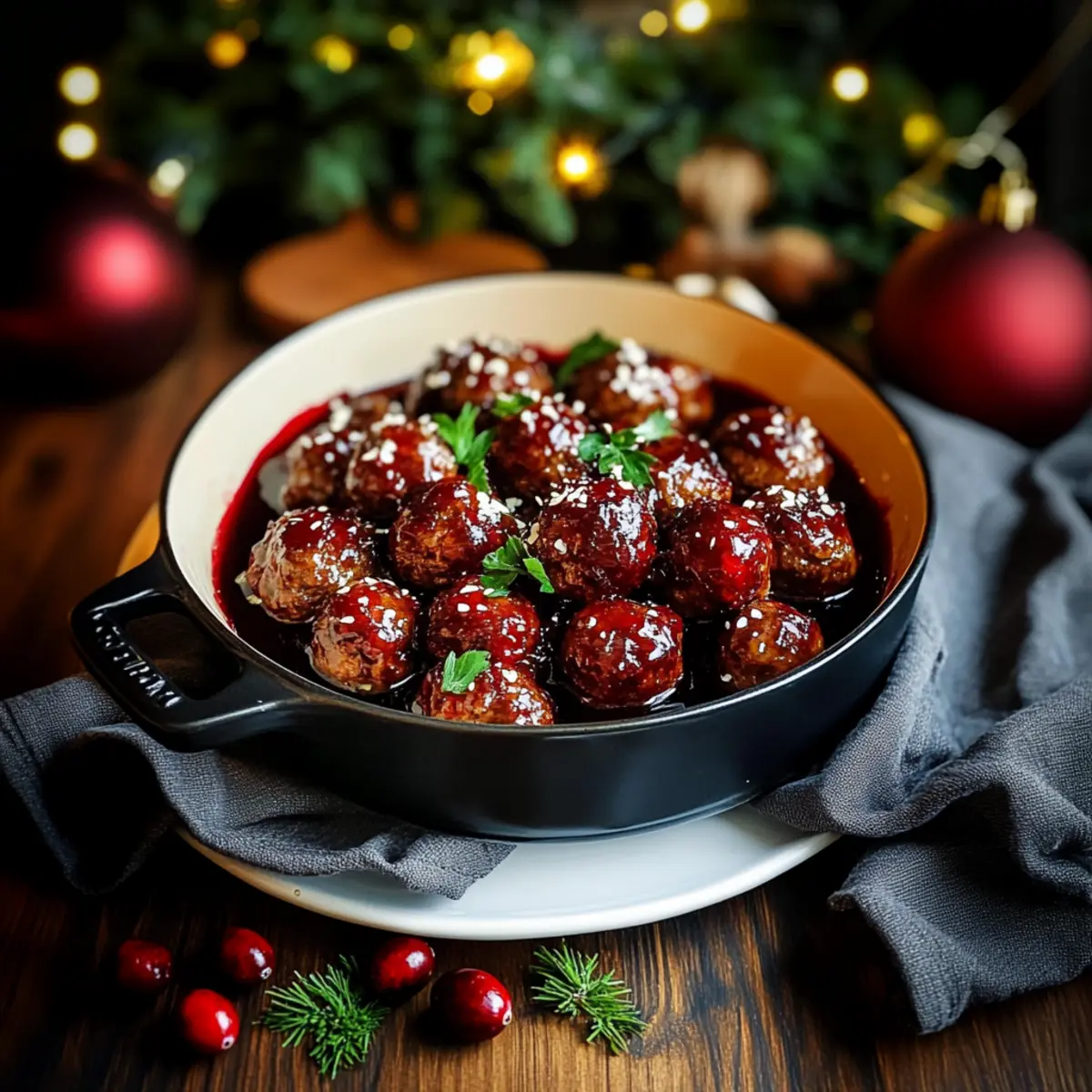Jump to Recipe Print RecipeAs the scent of cinnamon and pine fills the air, I can’t help but feel the spirit of the season creeping in. There’s something magical about gathering loved ones around a festive table, and my Sweet and Savory Christmas Meatballs are a must-have addition to any holiday feast. Perfectly juicy with a whisper of sweetness, these meatballs come draped in a delightful sauce that perfectly balances savory and sweet. What makes them irresistible? They’re quick to prepare and make for a crowd-pleasing showstopper, whether you choose to simmer them in a slow cooker or broil them for that beautiful, crispy crust. Ready to impress your friends and family this holiday season? Let’s dive into this recipe and watch them disappear in no time! Why Are These Meatballs So Beloved? Juicy, Perfectly Seasoned: These Christmas meatballs boast a juicy texture, ensuring every bite is bursting with flavor. Sweet and Savory Harmony: The rich sauce masterfully balances sweetness and savory notes, making them an irresistible crowd-pleaser at any holiday gathering. Time-Saving Option: Whether you use a slow cooker or opt for broiling, you’ll have a stunning dish ready in no time! Incredibly Versatile: Serve them as appetizers with toothpicks or pair them with mashed potatoes for a hearty main dish—either way, they’ll shine. Make-Ahead Friendly: Prepare them ahead of time for a stress-free holiday meal; you can freeze or refrigerate them for a later date. If you’re looking for more delicious meatball variations, check out my Sticky Mongolian Meatballs or Vodka Sauce Meatballs. Get ready to share the love with these festive delights! Christmas Meatballs Ingredients These ingredients come together to create the magic of Christmas meatballs! For the Meatballs • Ground Beef Chuck – Provides the meat base; substitute with turkey for a lighter option. • Evaporated Milk – Adds moisture and richness; can be replaced with heavy cream for added creaminess. • Dry Breadcrumbs – Acts as a binder for meatballs; use gluten-free breadcrumbs for a gluten-free alternative. • Worcestershire Sauce – Infuses depth and umami flavor; apple cider vinegar can serve as a substitute. • Onion Soup Mix – Enhances overall flavor; you can use homemade onion powder and seasoning mix instead. For the Sauce • Ketchup – Forms the base of the sauce for sweetness; opt for homemade tomato sauce for a fresher taste. • Brown Sugar – Balances savory elements with sweetness; coconut sugar is a lower glycemic substitute. • Port Wine – Contributes richness to the sauce; substitute with grape juice for a non-alcoholic version. Optional Addition • Fresh Cranberries – Adds a tart, festive touch; may be omitted or swapped for pomegranate arils if desired. Now that you have everything you need, let’s create some irresistible Christmas meatballs that will leave everyone asking for seconds! Step‑by‑Step Instructions for Sweet and Savory Christmas Meatballs Step 1: Mix Ingredients In a large mixing bowl, combine the ground beef, evaporated milk, dry breadcrumbs, Worcestershire sauce, and onion soup mix. Mix until just combined, ensuring not to overwork the meat. Cover the bowl with plastic wrap and refrigerate the meat mixture for at least 1 hour to allow the flavors to meld beautifully. Step 2: Preheat Broiler Adjust your oven rack to the highest position for optimal broiling and preheat the broiler to high. This step is crucial for achieving that beautifully crispy exterior on your Christmas meatballs, ensuring they are golden brown and well-cooked. Keep an eye on them as they broil to prevent burning. Step 3: Form Meatballs Once the mixture has rested, take it out of the refrigerator and begin portioning it into approximately 36 small meatballs, roughly the size of a golf ball. Arrange them on a parchment-lined baking sheet, allowing a little space between each meatball for even cooking. The shape should be round for that classic meatball appearance. Step 4: Broil Place the baking sheet in the preheated broiler and cook the meatballs for 2-3 minutes on each side, or until they are nicely browned. You’re looking for a crispy crust that adds texture while maintaining the juicy interior of the Sweet and Savory Christmas Meatballs. Flip them carefully using tongs to ensure even cooking. Step 5: Make Sauce While the meatballs are broiling, prepare the sauce by heating a saucepan over medium heat. Combine the ketchup, brown sugar, port wine, and the remaining Worcestershire sauce in the pan. Stir continuously until the mixture is smooth and begins to bubble slightly, creating a rich, inviting aroma that will complement your meatballs perfectly. Step 6: Slow Cooker Once the meatballs are browned, transfer them to a slow cooker. Pour the warm sauce over the meatballs, ensuring they are fully coated. Set the slow cooker to HIGH and let them cook for 1 hour. This step allows the meatballs to absorb the sauce, deepening their flavor and making them irresistibly moist. Step 7: Dutch Oven Alternative If you prefer not to use a slow cooker, you can use a Dutch oven instead. Simply combine the meatballs and sauce in the pot and simmer on medium-low heat for 30-40 minutes. This method equally allows the flavors to meld beautifully, and you’ll achieve tender, delicious Sweet and Savory Christmas Meatballs that are perfect for holiday gatherings. How to Store and Freeze Christmas Meatballs Fridge: Keep cooked Christmas meatballs in an airtight container for up to 3-4 days. This makes it easy to enjoy festive leftovers without losing any flavor! Freezer: Freeze raw or cooked meatballs for up to 2-3 months. For best results, wrap them in plastic wrap and place them in a freezer-safe bag to prevent freezer burn. Thawing: When you’re ready to enjoy the meatballs, thaw in the fridge overnight. This ensures a safe and gentle defrost before reheating. Reheating: For a delicious finish, reheat cooked 