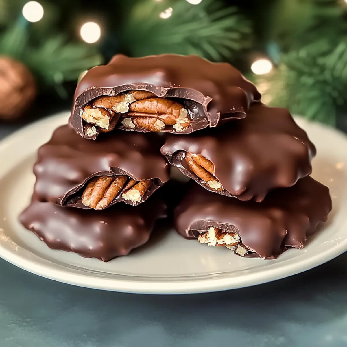 Jump to Recipe Print RecipeAs I unwrapped the first holiday gift of the season, the aroma of chocolate and caramel wafted through the air, instantly transporting me to cozy kitchen memories. These Easy Christmas Pecan Turtles are more than just a delightful treat; they seamlessly blend crunchy pecans, velvety caramel, and a smooth chocolate coating to create a festive indulgence that anyone can make. Perfect for busy bakers, this quick and simple recipe allows you to whip up a batch in no time, making it ideal for last-minute gift-giving. Whether enjoyed on a chilly evening or shared at holiday gatherings, these homemade treasures add a touch of sweetness to your celebrations. So, are you ready to elevate your holiday treat game with these scrumptious pecan turtles? Let’s get started! Why Try These Christmas Pecan Turtles? Irresistible Flavor: The combination of crunchy pecans, silky caramel, and rich chocolate creates a taste experience that’s simply unforgettable. Quick to Make: This recipe is perfect for busy bakers, allowing you to whip up a batch in under an hour. Gift-Ready: Beautifully package them in holiday tins, making them a delightful homemade gift for family and friends this season. Customizable: Feel free to substitute walnuts or almonds, or even switch to dark chocolate for a richer flavor. If you’re looking for more festive inspiration, check out these Gooey Butter Pecan treats! Crowd-Pleaser: These pecan turtles are always a hit at holiday gatherings, ensuring they’ll be gone in no time! Christmas Pecan Turtles Ingredients For the Turtles Pecans – Ground or whole, they provide a crunchy texture and nutty flavor; toasting them enhances their taste. Butter – Essential for caramel richness; choose unsalted butter for better sweetness control. Light Brown Sugar – Adds sweetness and a hint of molasses flavor to the luscious caramel. Granulated Sugar – Contributes sweetness and structure in the decadent caramel. Light Corn Syrup – Prevents sugar crystallization in the caramel, ensuring a smooth finish. Sweetened Condensed Milk – This gives the caramel a rich, creamy texture you’ll adore. Vanilla Extract – Infuses depth of flavor into the caramel, making it irresistibly tasty. Chopped Chocolate (for coating) – A rich layer of chocolate transforms these into heavenly bites; opt for high-quality chocolate for best results. Optional Toppings Sea Salt (for garnish) – A pinch on top adds a delightful sweet-salty contrast that’s simply scrumptious! With these Christmas Pecan Turtles ingredients, you’re all set to create a batch of these delightful treats that will surely spread holiday cheer! Step‑by‑Step Instructions for Christmas Pecan Turtles Step 1: Preheat and Prepare Begin by preheating your oven to 350°F (175°C). Spread 2 cups of pecans evenly on a baking pan and toast them for 8-10 minutes. Keep an eye on them; they should be fragrant and slightly golden. This toasting step enhances the nutty flavor, making your Christmas Pecan Turtles even more delicious! Step 2: Melt the Butter In a microwave-safe bowl, melt 6 tablespoons of unsalted butter. Once melted, combine it with ½ cup of light brown sugar, ½ cup of granulated sugar, ½ cup of light corn syrup, and ½ cup of sweetened condensed milk. Stir the mixture well to blend all the ingredients smoothly, creating the base for the luscious caramel. Step 3: Heat the Caramel Mixture Microwave the blended caramel mixture on high for about 6 minutes, stirring halfway through to ensure even heating. The mixture should be bubbling and thickening, achieving a consistently smooth texture as it nears the right consistency. This step is crucial for obtaining the gooey caramel used in your Christmas Pecan Turtles! Step 4: Add Flavor and Nuts After heating, carefully stir in 1½ teaspoons of vanilla extract along with your toasted pecans, ensuring each nut is well-coated with the caramel. The combination of flavors will make your Christmas Pecan Turtles irresistible. Let this mixture cool for about 10 minutes to make it easier to scoop and shape. Step 5: Chill to Firm Up Transfer the pecan-caramel mixture to a prepared dish or bowl, spreading it out evenly. Refrigerate for 30 minutes until it firms up. This chilling step helps the caramel hold its shape, making it perfect for dipping in chocolate later. Step 6: Melt the Chocolate While the caramel cooling, melt 2 cups of chopped chocolate in a heatproof bowl. Place the bowl in the microwave and heat for 30 seconds at a time, stirring in between, until smooth and lump-free. The melted chocolate will create a rich coating that beautifully complements your Christmas Pecan Turtles. Step 7: Assemble the Turtles Once the pecan-caramel mixture is firm, scoop small portions and shape them into balls or mounds. Dip each piece into the melted chocolate, ensuring they are fully coated. Place the chocolate-covered turtles onto a wax paper-lined tray and allow any excess chocolate to drip off. Step 8: Set and Serve Let your chocolate-coated Christmas Pecan Turtles sit at room temperature for about 30 minutes, or until the chocolate has fully set. Once firm, they’re ready to be enjoyed or packaged up as thoughtful gifts for friends and family during the festive season! Storage Tips for Christmas Pecan Turtles Room Temperature: Store in an airtight container at room temperature for up to 1 week to maintain freshness and flavor. Fridge: For longer storage, keep in the fridge for up to 2 weeks in an airtight container. Make sure to let them come to room temperature before serving for the best taste. Freezer: Freeze in an airtight container for up to 3 months. Layer with parchment paper to prevent sticking. Thaw overnight in the refrigerator before enjoying your delicious Christmas Pecan Turtles. Reheating: No need to reheat these treats; simply enjoy them as they are at room temperature or slightly chilled for a delightful experience! Christmas Pecan Turtles Variati