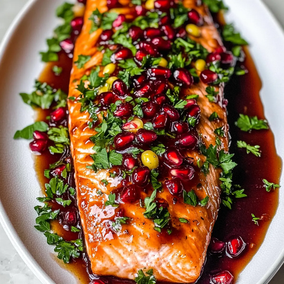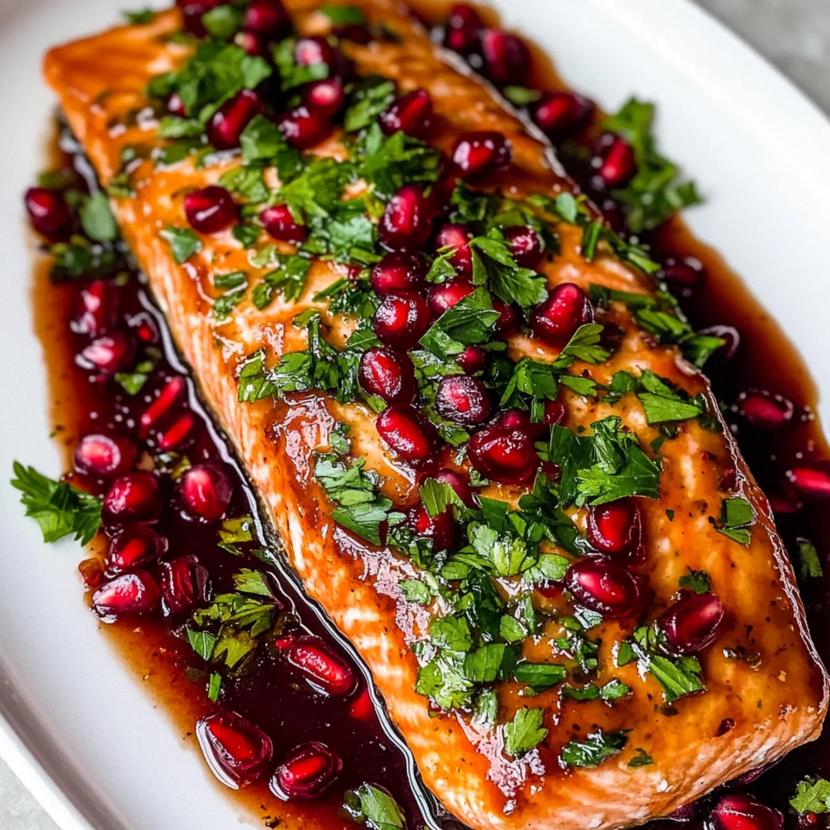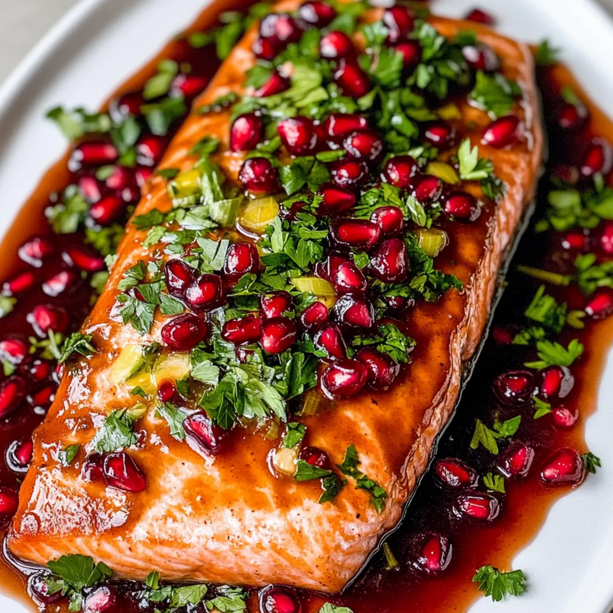 Jump to Recipe Print RecipeAs I curated my holiday menu this year, the vibrant colors of pomegranate caught my eye, sparking an idea for a festive masterpiece: Christmas Salmon with Pomegranate Glaze. This dish harmonizes the tender, flaky richness of salmon with a luscious, tangy glaze that brightens any table—perfect for both an elegant main course and a delightful appetizer. In just a matter of minutes, you can create a stunning showstopper that’s not only healthy but also a guaranteed crowd-pleaser at your holiday gatherings. Lettuce celebrate the season with this dazzling recipe that promises to sprinkle joy into every bite! Are you ready to make your holiday dining unforgettable? Why is this salmon recipe a must-try? Vibrant, Festive Appeal: The vivid pops of pomegranate and orange make this dish a feast for the eyes, perfect for brightening your holiday table. Easy Preparation: With straightforward steps, even novice cooks can create this impressive dish, ensuring you spend less time in the kitchen and more time with loved ones. Health-Conscious Choice: At approximately 222 calories per serving, this low-calorie recipe allows you to indulge without guilt. Flavor Explosion: The delightful combination of sweet, tangy, and savory tones will leave your guests raving! Versatile Serving Options: Whether as a main dish or an elegant appetizer, this Christmas Salmon is perfect for any festive occasion, pairing beautifully with sides like roasted vegetables or a fresh salad. Christmas Salmon Ingredients For the Salmon Salmon – The star protein of this festive dish, creating a rich and savory base. Kosher Salt – Enhances the salmon’s natural flavor; feel free to substitute with sea salt if preferred. Black Pepper – Provides a hint of heat; freshly ground gives the best taste. For the Pomegranate Glaze Pomegranate Juice – The key component for a sweet and tangy glaze; cranberry juice can be used as a substitute. Brown Sugar – Adds sweetness and helps caramelize the glaze; honey is a good alternative for a different flavor. Fresh Squeezed Orange Juice – Brightens the glaze with acidity; fresh juice is recommended for optimal flavor. Orange Zest – Intensifies the orange flavor and adds depth; take care to zest only the outer peel to avoid bitterness. For Garnish Pomegranate Seeds – Fresh is ideal for a pop of color and sweetness; can omit if unavailable. Orange Slices – Enhances the dish’s visual appeal and adds a hint of zest; optional for extra flavor. Parsley – Adds a refreshing herb note; dill or cilantro can be nice substitutes if desired. Green Onions – Provides mild onion flavor and visual pops of color; optional to include. Step‑by‑Step Instructions for Christmas Salmon Step 1: Preheat Your Oven Begin by preheating your oven to 300°F (150°C). While it warms, line a large baking sheet with parchment paper to prevent the salmon from sticking. This step is essential for achieving that perfect, flaky texture in your Christmas Salmon. Take a moment to prepare your workspace, ensuring it’s organized and ready for the next steps. Step 2: Prepare the Salmon Place the salmon filets skin-side down on the prepared baking sheet. Generously season each piece with kosher salt and freshly ground black pepper for enhanced flavor. Visual cues here include a gleaming surface of the salmon, which signifies it’s ready for the flavorful layering to come. Set aside while you prepare the glaze. Step 3: Make the Pomegranate Glaze In a medium saucepan over medium heat, combine pomegranate juice, brown sugar, fresh orange juice, and orange zest. Stir the mixture gently until the brown sugar dissolves completely, then bring it to a boil, watching for bubbles forming on the surface. This aromatic blend will set the stage for your Christmas Salmon’s delicious glaze. Step 4: Thicken the Glaze Once boiling, reduce the heat to low and allow the glaze to simmer for 20-25 minutes, occasionally stirring to avoid sticking. You’ll know it’s ready when the mixture thickens into a syrup-like consistency. The reduced glaze will transform into a rich, glossy sauce, perfectly complementing the savory notes of the salmon. Step 5: Glaze the Salmon Using a basting brush, generously coat the top of the salmon with your beautifully reduced pomegranate glaze. Ensure each filet is evenly coated to build that sticky sweetness, which will enhance the flavors of your Christmas Salmon. The shiny glaze glistening on the fish is a lovely sign of the festive touch you are bringing to the dish. Step 6: Bake the Salmon Carefully place the baking sheet in the preheated oven and bake the salmon for 30-38 minutes. Cook it until the internal temperature reaches 145°F (63°C), which you can check using a food thermometer. The salmon should appear opaque and flaky, easily separating with a fork. This gentle baking will ensure moisture is sealed in. Step 7: Garnish and Serve Once baked, transfer the Christmas Salmon to a beautiful serving platter. Garnish with pomegranate seeds, vibrant orange slices, and freshly chopped parsley and green onions for that festive flair. Each element adds pops of color and texture, making your dish not only delicious but also an eye-catching centerpiece for holiday gatherings. What to Serve with Pomegranate-Glazed Christmas Salmon Elevate your holiday dining experience with these delightful pairings that transform your meal into a festive feast. Creamy Mashed Potatoes: The smoothness of buttery mashed potatoes contrasts beautifully with the flaky salmon, making each bite a comforting delight. Roasted Brussels Sprouts: Crisp-tender Brussels sprouts add a lovely crunch and slight bitterness to balance the sweetness of the glaze. A touch of balsamic glaze takes these sprouts to the next level, enhancing their flavors and offering a pop of color on your festive table. Citrus Spinach Salad: Fresh spinach adorned with orange segments delivers a burst of freshness that enhances 