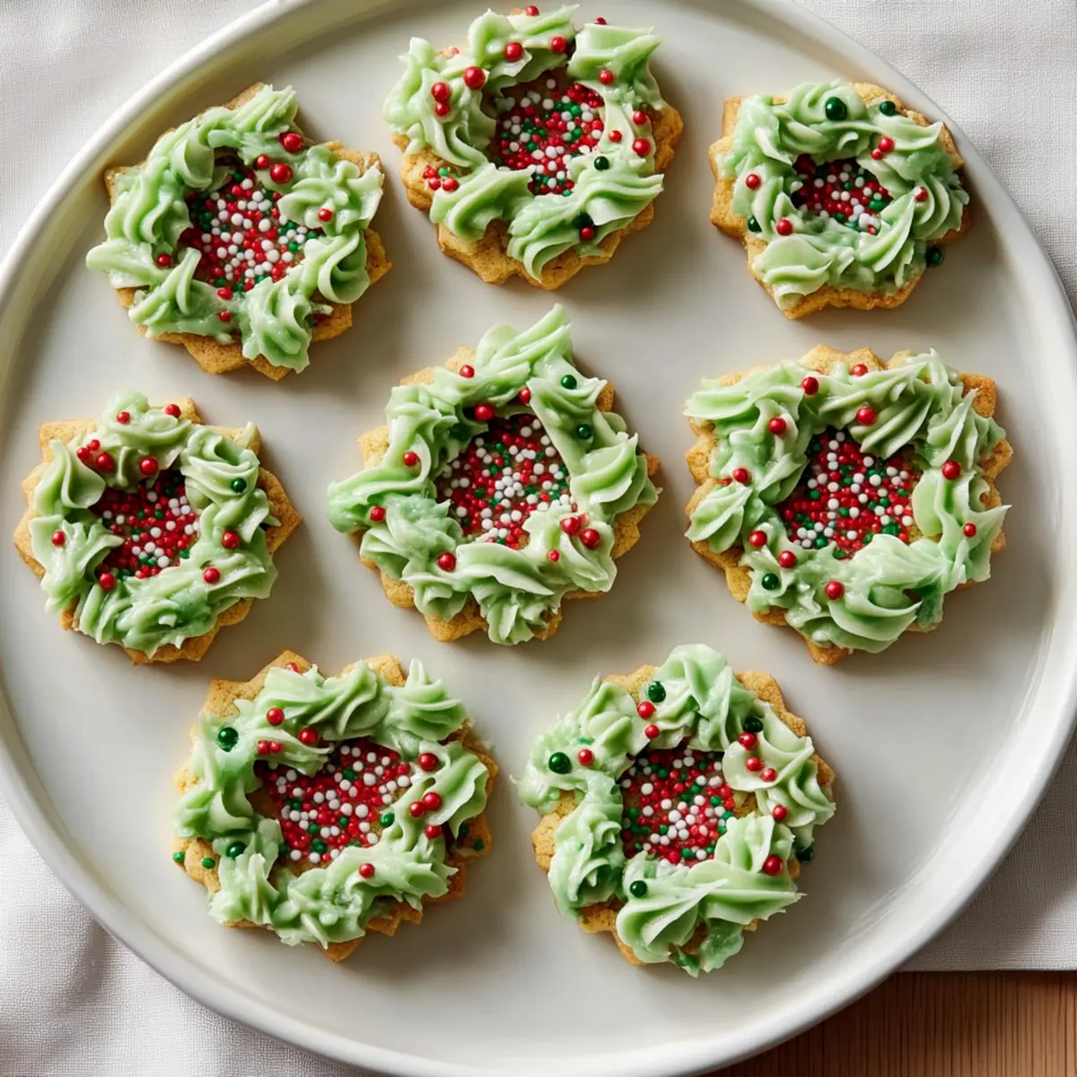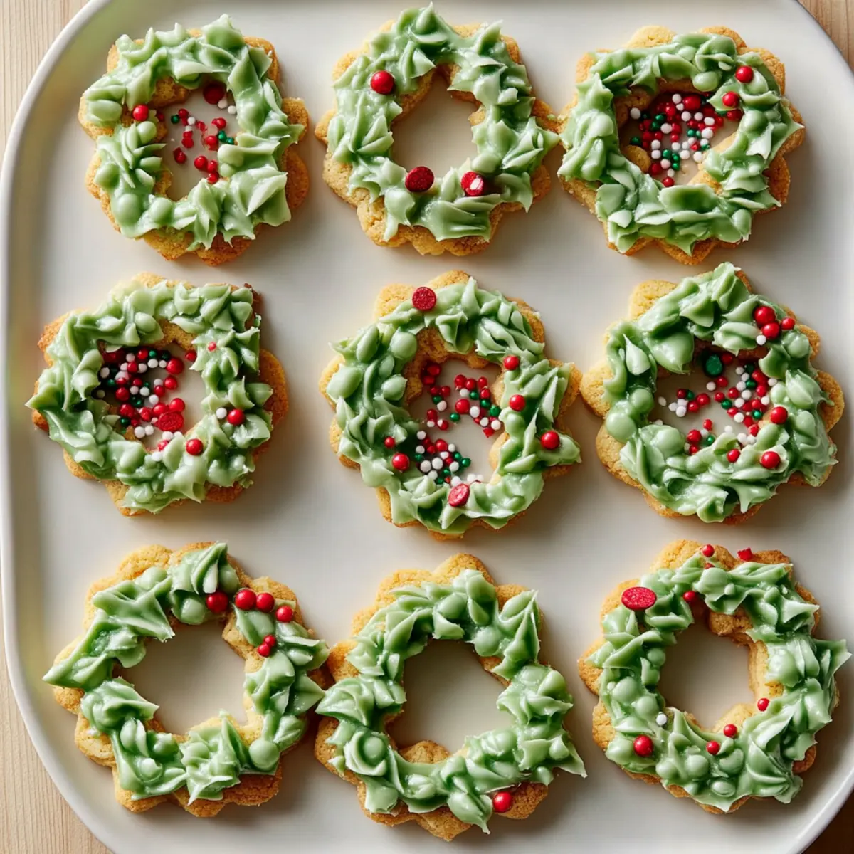 Jump to Recipe Print RecipeAs I stood in my kitchen, the sweet scent of cinnamon and vanilla filled the air, pulling me deeper into the holiday spirit. There’s something truly magical about baking, especially when it comes to making Christmas Wreath Cookies. These delightful treats are not just visually stunning with their vibrant green icing and festive decorations; they’re also a breeze to whip up, making them perfect for both novice and experienced bakers alike. With their charming shape and cheerful appearance, they easily become a holiday favorite for cookie exchanges and family gatherings. Plus, with the option to mix in fun toppings or even create a gluten-free version, you’ll have something to please everyone at your holiday table. What festive twist will you add to your wreaths this year? Why Are Christmas Wreath Cookies Special? Visually Stunning: The vibrant green icing makes these cookies a festive centerpiece on any holiday table. Incredibly Easy: With straightforward directions, even novice bakers can create these delightful treats. Customizable Options: Feel free to mix in your favorite toppings or sprinkles to personalize each cookie. Gluten-Free Friendly: A simple substitution allows everyone to indulge, making them versatile for gatherings. Perfect for Sharing: Their charming presentation makes them a great choice for cookie exchanges! Whether you’re also making Cone Crunch Cookies or looking for healthier options like Banana Oatmeal Cookies, these wreath cookies are sure to bring holiday cheer to your kitchen! Christmas Wreath Cookies Ingredients Get ready to create these festive delights! For the Cookie Base Butter – A must for rich flavor and tenderness; consider using dairy-free margarine for a vegan version. Sugar – Adds sweetness; brown sugar can deepen the flavor for a more complex taste. Eggs – Essential for binding; substitute with applesauce for a vegan option. Flour – Provides structure; choose all-purpose or gluten-free flour for a gluten-free version. Baking Powder – Helps the cookies rise for a delightful texture; keep this fresh for best results. For the Frosting Powdered Sugar – Sweet and smooth, this is the base for your festive icing; adjust water for desired consistency. Milk or Non-Dairy Milk – Aids in achieving a creamy frosting texture; can be swapped with almond or oat milk. Green Food Coloring – Brings that festive color to your cookies; mix in slowly to reach your perfect shade. For Decoration Sprinkles – Use festive shapes or colors to jazz up your wreath cookies; let your creativity shine! Mini Chocolate Chips – These add both sweetness and visual appeal; they can be mixed in or used as decoration. These Christmas Wreath Cookies will not only bring joy to your holiday gatherings but also allow for some creative expression in your baking! Step‑by‑Step Instructions for Christmas Wreath Cookies Step 1: Gather Ingredients Begin by gathering all your ingredients and ensuring that the butter and eggs are at room temperature for smooth mixing. Arrange them on your countertop for easy access while preparing your delicious Christmas Wreath Cookies. Preheat your oven to 350°F (175°C) to ensure it’s hot and ready for baking once your dough is prepared. Step 2: Mix Dry Ingredients In a medium bowl, whisk together the flour and baking powder. This process is crucial for incorporating air and ensuring an even rise in your Christmas Wreath Cookies. Once combined, set the bowl aside and focus on creaming the butter and sugar, as the right texture will greatly enhance your cookie’s tenderness. Step 3: Cream Butter and Sugar In a large mixing bowl, beat the softened butter and sugar together using an electric mixer on medium speed until the mixture is light and fluffy, which usually takes about 3-5 minutes. The blend should appear pale and airy, indicating that you’ve successfully incorporated air into the mixture, essential for the perfect cookie texture. Step 4: Add Eggs and Flavorings Next, add the eggs one at a time to your butter-sugar mixture, mixing well after each addition to ensure a smooth batter. Follow this by mixing in your vanilla extract. This step not only binds your ingredients but also enriches the flavors in your Christmas Wreath Cookies, enhancing their scrumptiousness. Step 5: Incorporate Dry Ingredients Gently blend the dry ingredients into the butter mixture, mixing until just combined. Avoid overmixing, as this can lead to tough cookies. When your dough starts to come together, you’ll know it’s ready for the next step. If desired, now is also the time to fold in mini chocolate chips for an extra touch of sweetness. Step 6: Shape Cookies Using a cookie scoop or tablespoon, portion out the dough and roll it into balls before placing them onto a lined baking sheet, spacing them about 2 inches apart. You should have around 12 cookies per sheet. Press each ball slightly to flatten them into thick disks; this step allows them to spread while baking, creating a lovely shape. Step 7: Bake Bake the cookies in your preheated oven for 10-12 minutes, or until the edges turn golden brown while the centers remain slightly soft. Keep an eye on them as they bake, as the visual cue of golden edges will indicate they’re ready. Remove the baking sheet from the oven and let the cookies cool on the sheet for a few minutes before transferring them to wire racks. Step 8: Prepare the Frosting While the cookies cool, combine powdered sugar, milk, and green food coloring in a medium bowl. Mix until you achieve a smooth, spreadable icing consistency. Adjust the thickness by adding more milk or powdered sugar as needed, ensuring your frosting will beautifully coat the Christmas Wreath Cookies. Step 9: Decorate the Cookies Once the cookies are completely cooled, use a spatula or piping bag to frost the tops with your vibrant green icing. Let your creativity shine by adding festive sprinkles or mini chocolate chips to mim