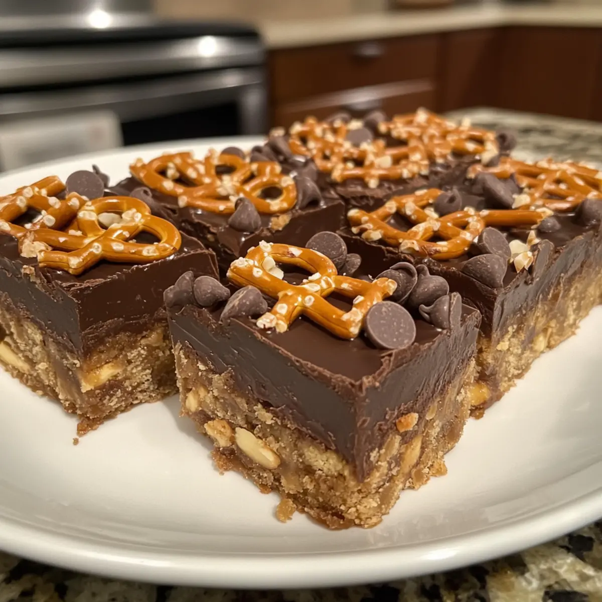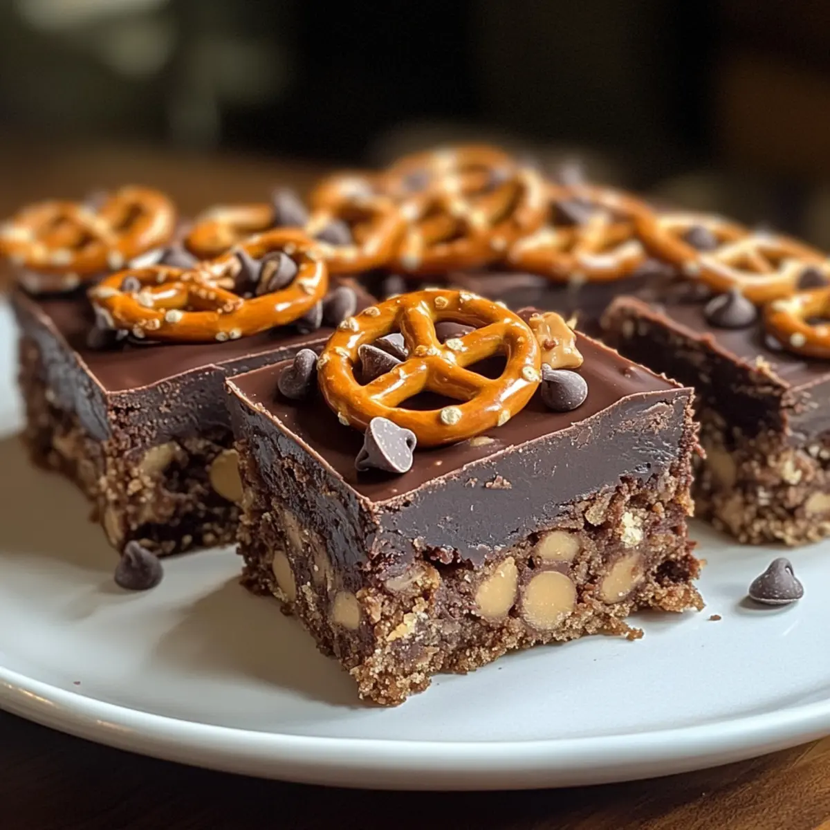 Jump to Recipe Print RecipeAs I stood in my kitchen, the sweet aroma of melting chocolate mingled with the salty crunch of pretzels, a moment of pure bliss washed over me. The recipe for these Addictively Sweet and Salty Chocolate Peanut Butter Pretzel Bars, or as I affectionately call them, chubby hubby bars, is one that I often turn to when I’m craving something indulgent yet easy to whip up. Not only are these bars a delightful treat perfect for parties, but they also offer the incredible benefit of being a crowd-pleaser that disappears in a flash! With a rich combination of creamy peanut butter, chunks of chocolate, and crunchy pretzels, this dessert is a unique blend of flavors and textures that will leave everyone wanting more. Curious about how to put this yumminess together? Let’s dive in! Why Are Chubby Hubby Bars So Irresistible? Addictive Combination: The blend of chocolate, peanut butter, and pretzels creates a taste explosion you won’t be able to resist. Quick and Easy: With just a few simple steps, you can have a decadent dessert that’s ready to impress without spending hours in the kitchen. Crowd-Pleasing Delight: These bars are an instant hit at gatherings—a perfect party treat that will vanish before your eyes! Endless Customization: Feel free to experiment by adding nuts or swapping in almond butter for a fun twist, just like in my Layer Everything Bars. Satisfy Your Cravings: Whether you’re in the mood for something sweet, salty, or both, these bars deliver unparalleled satisfaction that keeps you coming back for more! Chubby Hubby Bars Ingredients • For the Batter All-purpose flour – Provides structure; substitute with gluten-free flour for a gluten-free option. Baking soda – Helps the bars rise; no substitutions needed. Salt – Balances sweetness; use sea salt for a slightly different flavor. Unsalted butter or margarine – Adds richness; can substitute with coconut oil if desired. Light brown sugar – Adds moisture and a mild caramel flavor; can substitute with coconut sugar for a lower glycemic index. Granulated sugar – Provides sweetness; can be reduced to lower sugar content. Eggs – Acts as a binding agent; use a flax egg or applesauce for an egg-free version. Vanilla extract – Enhances flavor; no substitutions needed. Chunky peanut butter – Adds creaminess and texture; swap for smooth peanut butter or almond butter if you like. Semi-sweet chocolate chips – Adds sweetness and richness; dark chocolate chips offer a deeper flavor experience. Coarsely chopped pretzels – Provides crunch and a salty element; any pretzel type can be used. • For the Topping Peanut butter chips – Adds extra peanut flavor; can substitute with chocolate chips for a delightful twist. Chocolate chips – Enhances visual appeal and sweetness; consider white chocolate chips for a fun variation. Coarsely chopped pretzels – Adds a decorative crunch; no substitutions necessary to maintain that signature texture. These chubby hubby bars come together with easy-to-find ingredients, making your baking adventure not only enjoyable but also rewarding! Step‑by‑Step Instructions for chubby hubby bars Step 1: Preheat the Oven Begin by preheating your oven to 350°F (175°C). While the oven warms up, take a 9×13 inch baking pan and generously grease it with butter or line it with parchment paper to ensure easy removal of your delicious chubby hubby bars later. Step 2: Prepare the Dry Ingredients In a medium mixing bowl, whisk together 1 ½ cups of all-purpose flour, 1 teaspoon of baking soda, and ½ teaspoon of salt until well combined. This mixture forms an essential base that will provide structure to your bars. Set this bowl aside while you move on to the wet ingredients. Step 3: Cream the Butter and Sugars In a separate large mixing bowl, place ½ cup of softened unsalted butter, ¾ cup of light brown sugar, and ½ cup of granulated sugar. Using an electric mixer, cream these ingredients together on medium speed until the mixture is light and fluffy, about 2-3 minutes. This step is crucial for achieving that melt-in-your-mouth texture in your chubby hubby bars. Step 4: Add Eggs and Vanilla Once your butter and sugar mixture is fluffy, add in 2 large eggs and 1 teaspoon of vanilla extract. Mix on low speed until fully incorporated, taking care not to overmix. You’ll want to create a smooth batter that beautifully blends the flavors together, setting the stage for your sweet and salty bars. Step 5: Combine the Dry and Wet Mixtures Gradually add the dry flour mixture you prepared earlier into the wet batter. Mix gently on low speed until just combined—be careful not to overmix, as this can toughen your chubby hubby bars. Once the batter is set, fold in 1 cup of chunky peanut butter, 1 cup of semi-sweet chocolate chips, and 1 cup of coarsely chopped pretzels with a sturdy spatula. Step 6: Spread the Batter in the Pan Transfer the thick batter into your previously prepared baking pan. Use a spatula to press it down evenly, ensuring it fills the corners of the pan uniformly. This will help your bars bake evenly and give them a beautiful, flat surface, perfect for showcasing their irresistible toppings. Step 7: Bake the Chubby Hubby Bars Place the pan in your preheated oven and bake for 30-35 minutes, or until the edges are golden brown and a toothpick inserted in the center comes out with a few moist crumbs. This will give your bars the tender and chewy consistency that everyone loves. Step 8: Cool the Bars Once baked, remove the chubby hubby bars from the oven and let them cool in the pan for about 10 minutes. After that, carefully transfer them to a wire rack to cool completely. Allowing them to cool fully will help in achieving clean, perfect cuts when it’s time to slice. Step 9: Top and Slice Before slicing into squares, sprinkle the tops of your cooled bars with additional coarsely chopped pretzels, peanut butter chips, and chocolate chips for a tasty f