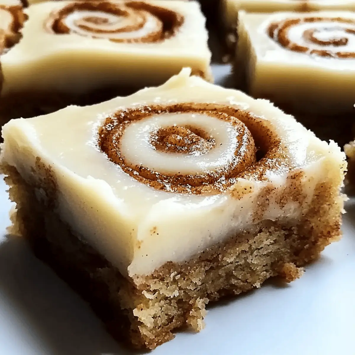 Jump to Recipe Print RecipeAs I pulled a tray of freshly baked treats from the oven, the sweet scent of cinnamon began to envelop my kitchen, beckoning anyone nearby to come and investigate. That’s the magic of these Cinnamon Roll Bliss Bars—they transform the comforting tradition of cinnamon rolls into an easy, grab-and-go dessert that’s accessible for everyone. Perfect for those lazy Sunday brunches or festive gatherings, these bars bring a cozy vibe to the table without the fuss. Plus, they’re freezer-friendly and have options for both gluten-free and dairy-free diets, making them as versatile as they are delicious. So, how about making your day just a bit sweeter? Let’s dive into this delightful recipe together! Why are Cinnamon Roll Bliss Bars special? Warm, Nostalgic Aroma: The enchanting scent of cinnamon fills your home, wrapping you in a comforting embrace as these bars bake. Easy to Make: With straightforward steps, anyone can whip up these treats, ensuring a stress-free baking experience. Versatile Options: Whether you prefer gluten-free or dairy-free, modifications allow everyone to enjoy their own slice of bliss. Freezer-Friendly: Stash away extras for busy days—simply thaw and enjoy! Crowd-Pleasing Delight: Perfect for brunch or gatherings, they’re bound to impress friends and family, reminiscent of cherished cinnamon rolls without the hassle. For a delightful twist, consider pairing them with a warm cup of coffee or delicious Layer Everything Bars for an inviting spread! Cinnamon Roll Bliss Bars Ingredients For the Batter Unsalted Butter – Adds richness and moisture; substitute with plant-based butter for a dairy-free option. Granulated Sugar – Provides sweetness; no direct substitutes recommended. Brown Sugar – Contributes to deep flavor and moisture; can substitute with coconut sugar, though taste may vary. Egg – Binds ingredients together; for a vegan option, use a flax egg (1 tablespoon flaxseed meal + 2.5 tablespoons water). Vanilla Extract – Enhances flavor; no substitutes, but almond extract gives a different twist. All-Purpose Flour – Provides structure; swap with a 1:1 gluten-free flour for gluten-free bars. Baking Soda – Acts as a leavening agent for rising. Salt – Balances sweetness. Ground Cinnamon – Key flavor; adjust for personal preference. For the Frosting Cream Cheese – Creates a creamy frosting; substitute with dairy-free cream cheese for a vegan option. Powdered Sugar – Sweetens frosting and ensures a smooth texture. Melted Butter – Used in the swirl; can be replaced with plant-based butter. Now that you have all the necessary ingredients laid out, you’re just a whisk and a swirl away from enjoying these irresistible Cinnamon Roll Bliss Bars! Step‑by‑Step Instructions for Cinnamon Roll Bliss Bars Step 1: Preheat and Prepare Preheat your oven to 350°F (175°C). While it warms, line an 8×8-inch baking pan with parchment paper, allowing some overhang for easy removal, or grease it thoroughly with cooking spray or butter. This preparation ensures your Cinnamon Roll Bliss Bars lift out beautifully once baked. Step 2: Cream the Butters and Sugars In a large mixing bowl, cream together the unsalted butter, granulated sugar, and brown sugar using an electric mixer on medium speed for 2-3 minutes until the mixture is light and fluffy. You’ll want the sugars to be well incorporated, creating a smooth and creamy base for your bars. Step 3: Incorporate Egg and Vanilla Add one large egg and 1 teaspoon of vanilla extract to the creamed mixture. Mix on low speed until everything is combined and smooth, about 1 minute. The egg acts as a binder, providing structure to your Cinnamon Roll Bliss Bars while the vanilla adds a warm aroma to the batter. Step 4: Combine Dry Ingredients Gradually add in the all-purpose flour, baking soda, salt, and ½ teaspoon of ground cinnamon. Gently mix on low speed just until the dry ingredients are incorporated—overmixing can lead to tough bars. The batter should be slightly thick and stick to the spoon. Step 5: Press the Dough Transfer the dough into your prepared baking pan, pressing it evenly into the bottom with your hands or a rubber spatula. Make sure the surface is smooth and flat, as this will be the base of your Cinnamon Roll Bliss Bars, setting the stage for that delicious cinnamon swirl. Step 6: Create the Cinnamon Swirl In a small bowl, mix together ⅓ cup of brown sugar, 1 teaspoon of ground cinnamon, and 2 tablespoons of melted butter until combined. Drizzle this mixture over the pressed dough, and use a knife or toothpick to gently swirl it into the batter, creating beautiful patterns without overdoing it. Step 7: Bake to Perfection Place the pan in the preheated oven and bake for 22-26 minutes. Keep an eye on the edges as they should turn a lovely golden brown, while the center remains soft. A toothpick inserted into the center will come out clean, signaling that your Cinnamon Roll Bliss Bars are ready. Step 8: Cool Completely Once baked, remove the pan from the oven and allow the bars to cool completely on a wire rack in the pan. This cooling step is crucial, as it firms up the bars making them easier to frost and cut. Patience will reward you with perfectly structured treats! Step 9: Make the Cream Cheese Frosting In a separate bowl, beat together 4 ounces of cream cheese and 2 tablespoons of softened butter until creamy. Gradually add 1 cup of powdered sugar along with ½ teaspoon of vanilla extract and mix until light and fluffy, creating a luscious frosting to top your Cinnamon Roll Bliss Bars. Step 10: Frost and Serve Once the bars are completely cool, spread the cream cheese frosting generously on top using a spatula. Allow it to set for a few minutes before slicing into squares. Your Cinnamon Roll Bliss Bars are now ready to be savored, providing a cozy treat perfect for any occasion! How to Store and Freeze Cinnamon Roll Bliss Bars Room Temperature: Store in an air
