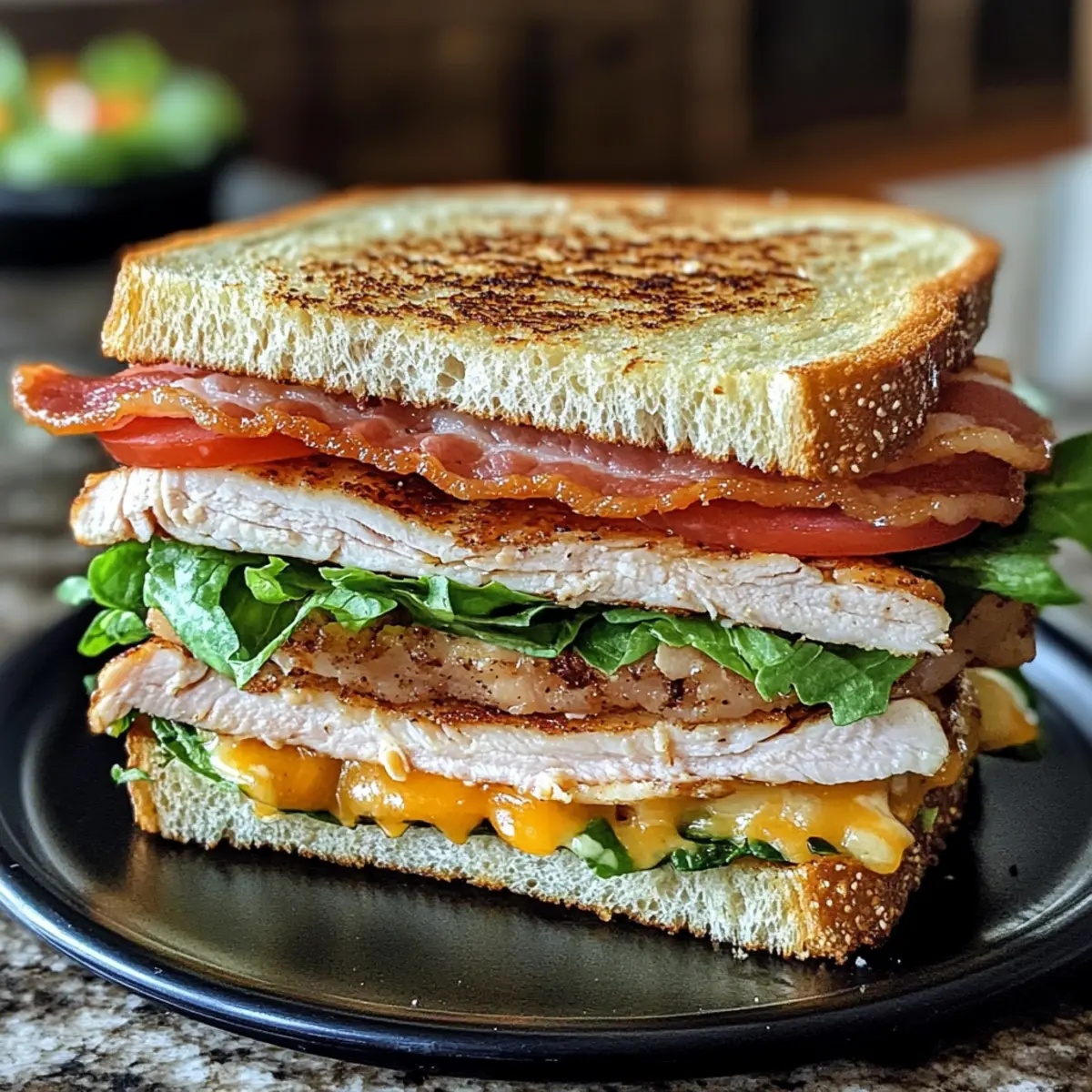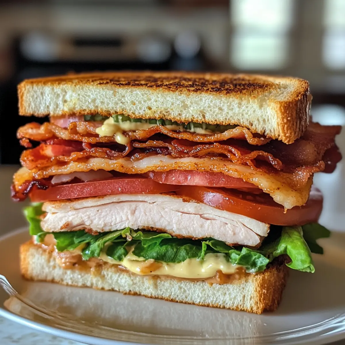 Jump to Recipe Print RecipeAs I settled down in the sunlit kitchen, I couldn’t help but feel the excitement of crafting something hearty—a Cowboy Club Sandwich, to be exact. The thrill of layering crispy bacon, savory turkey, and vibrant veggies between toasty slices of bread is a comfort every home chef can appreciate. With just 25 minutes of prep time, this quick meal not only satisfies your lunch cravings but also allows you to customize each layer to suit your taste. Whether you prefer an extra slice of cheese or a bit of spicy mayo, there’s no right or wrong way to create your ultimate sandwich masterpiece. So, are you ready to dive into an indulgent yet simple lunch that will make any mid-day slump disappear? Why is the Cowboy Club Sandwich a must-try? Irresistible Flavor Combo: The melding of crispy bacon, savory turkey, and fresh veggies creates a flavor explosion in every bite. Quick & Easy: In just 25 minutes, you can whip up this delightful sandwich, perfect for busy days. Customizable Delight: Tailor your sandwich with various toppings or spreads. Feeling adventurous? Try chipotle mayo or add creamy avocado! Crowd-Pleasing Meal: Whether it’s for a family lunch or a casual get-together, this sandwich guarantees smiles all around. Satisfying Crunch: Each layer offers a wonderful texture, making it not just a meal but an experience. Don’t miss out on enjoying this classic American dish; it’s perfect alongside a side of chips or a fresh salad, just like at your favorite diner! Cowboy Club Sandwich Ingredients For the Bread • 3 slices of bread – Choose between white or whole wheat for a sturdy base, or try gluten-free for a different option. For the Protein • 4 ounces sliced turkey breast – Adds lean protein and flavor; you can swap it with chicken or ham if you prefer. • 4 slices of crispy bacon – Provides a delightful crunch and smoky goodness; vegan bacon can serve as a meat-free alternative. For the Vegetables • 2 slices of tomato – Infuses freshness and moisture; substitute with roasted red peppers for a new twist. • 1 cup fresh lettuce (Romaine or Iceberg) – Offers crispness and nutrition, while spinach can work wonderfully in its place. For the Spread • 2 tablespoons mayonnaise – Enhances flavor and moisture; Greek yogurt is a healthier option to consider. • Salt and pepper – Season to taste to elevate the overall flavor profile. Optional Add-ons • Optional cheese slices (Swiss or Cheddar) – For an additional layer of creaminess and flavor; can be omitted for a lighter sandwich. Create an unforgettable Cowboy Club Sandwich that brings joy to your lunch hour! Step‑by‑Step Instructions for Cowboy Club Sandwich Step 1: Toast the Bread Begin by preheating your toaster or oven to a medium setting. Place three slices of your chosen bread (white or whole wheat) inside and toast them until they are golden brown, about 3-4 minutes. The crispy texture will serve as a wonderful base for your Cowboy Club Sandwich, so keep an eye on them for the perfect shade! Step 2: Cook the Bacon While the bread is toasting, heat a skillet over medium heat. Add four slices of bacon and cook them for about 5-7 minutes or until they are crispy and golden. Use tongs to flip them halfway through for even cooking. Once done, transfer the crispy bacon to a plate lined with paper towels to drain excess grease. Step 3: Layer the Base Take one slice of your toasted bread and generously spread about 1 tablespoon of mayonnaise over the top. Next, lay down 2 ounces of sliced turkey breast evenly, then stack two slices of the crispy bacon on top. Make sure to position these ingredients evenly to create a solid first layer for your Cowboy Club Sandwich. Step 4: Add Vegetables Now, it’s time to bring in the freshness! On top of your bacon, add a cup of crisp romaine or iceberg lettuce, followed by two slices of ripe tomato. Sprinkle a pinch of salt and pepper to elevate the flavors. This burst of color and crispness will not only enhance the sandwich’s flavor but also add visual appeal. Step 5: Stack the Middle Layer Place a second slice of toasted bread on top of your layered goodness. If you like, spread a bit more mayonnaise on this side for extra flavor. Layer on the remaining turkey breast and bacon, followed by another helping of lettuce and tomato. This double-stack will make your Cowboy Club Sandwich incredibly satisfying! Step 6: Finish the Sandwich Top your creation with the last slice of toasted bread. If you’re a cheese lover, add a slice of Swiss or cheddar cheese on the top layer at this point for extra creaminess. Press down gently to help all the layers meld together beautifully, preparing for the final touch. Step 7: Secure the Sandwich To keep everything intact, stick toothpicks through the center of the Cowboy Club Sandwich. This will make it easier to handle and slice without everything falling apart. Make sure they’re evenly spaced to keep your sandwich looking neat and presentable. Step 8: Cut and Serve Finally, take a sharp knife and slice your sandwich diagonally into quarters, revealing those delicious layers. Arrange them on a plate and consider serving with a side of chips or a fresh salad for a complete meal. Enjoy this delightful creation that’s sure to please everyone at the table! What to Serve with Cowboy Club Sandwich Transform your hearty sandwich into a delightful meal experience with these delicious side options! Crispy Sweet Potato Fries: The natural sweetness and crunchy texture of these fries complement the savory flavors of the sandwich beautifully, adding a comforting touch. Try dipping them in a tangy sauce for an extra layer of delight. Tangy Coleslaw: A refreshing side of coleslaw adds a bright, zesty contrast to the rich layers of the Cowboy Club Sandwich. The crunchiness paired with a tangy dressing enhances every bite, making this a classic pairing. Pickle Chips: Crunchy, tangy pickle chips provide a zesty bite 
