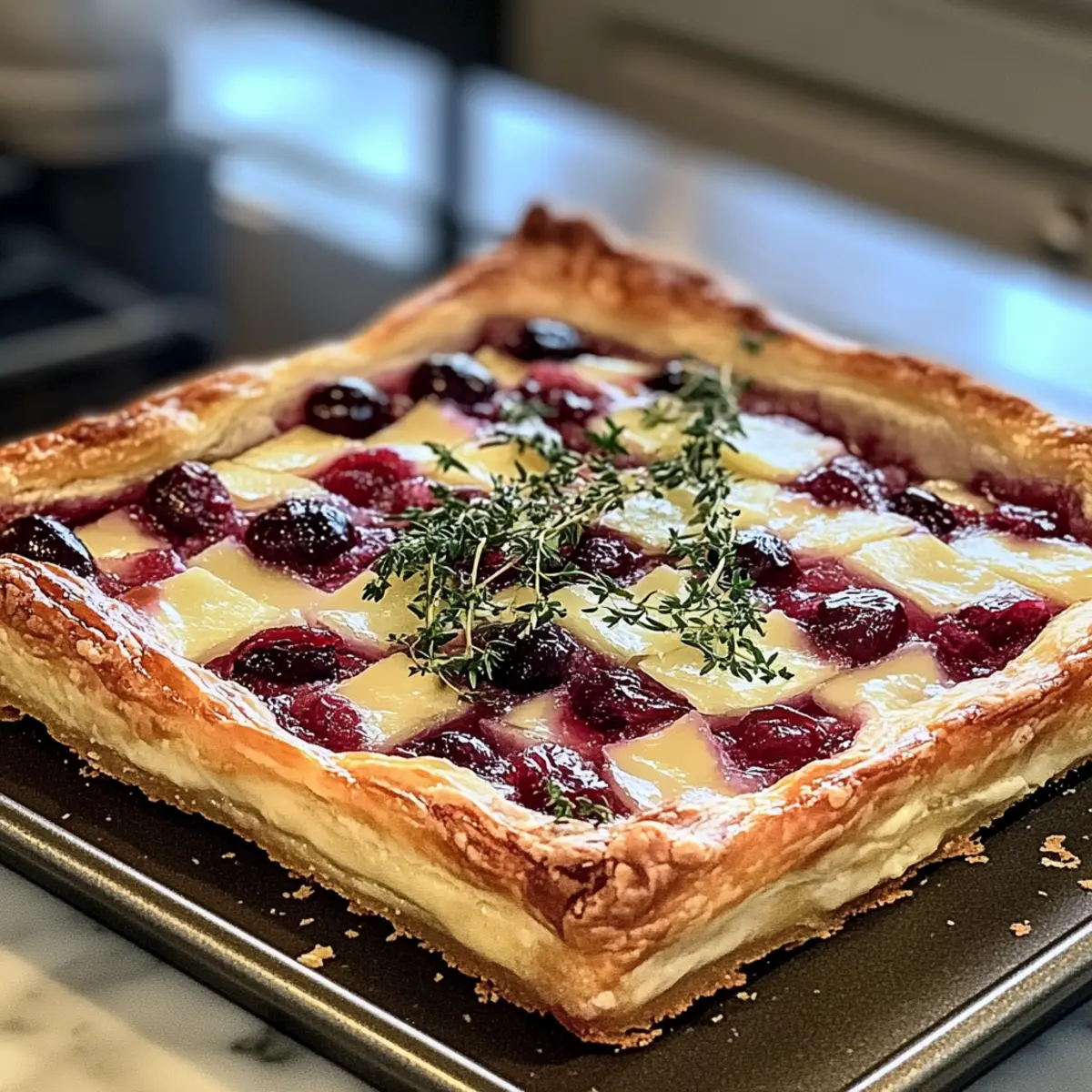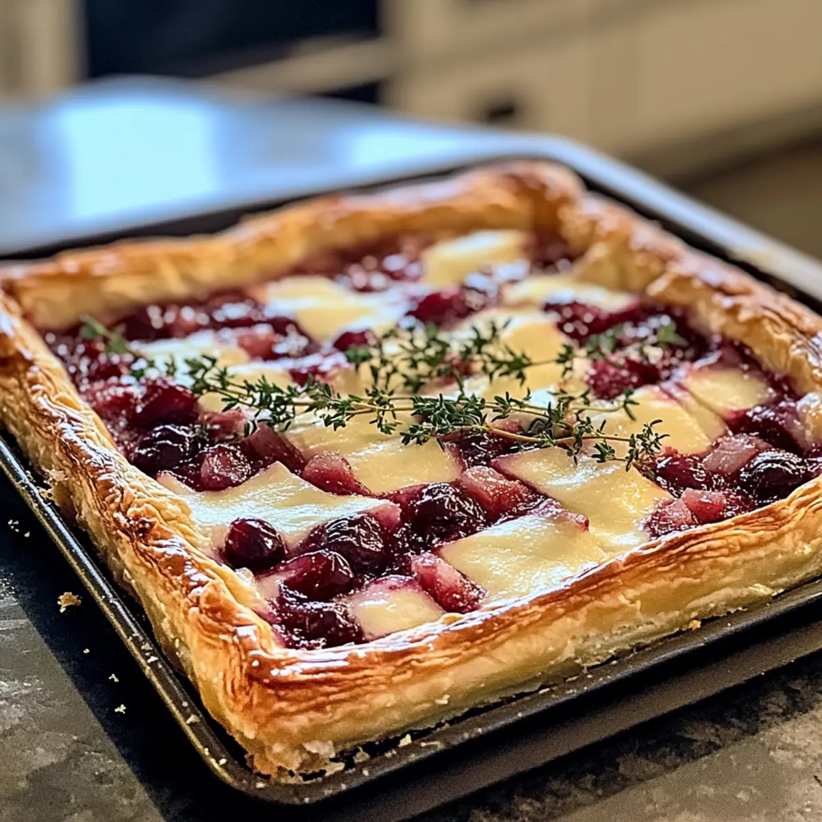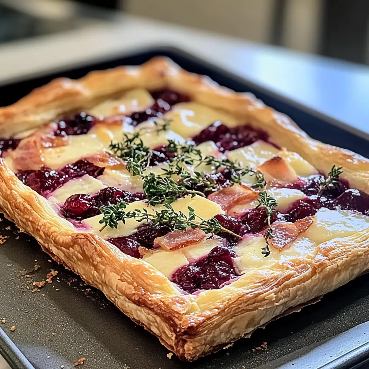 Jump to Recipe Print RecipeThere’s something enchanting about the first aroma of a buttery, baked tart wafting through the kitchen, and this Cranberry Brie Tart with Pancetta & Thyme is no exception. The flaky puff pastry cradles gooey, melted Brie, tangy cranberry sauce, and a hint of crispy pancetta that harmonizes beautifully with fresh thyme. This recipe is not only easy to whip up but also stands out as a show-stopping appetizer at any gathering, making it the perfect blend of comfort and sophistication. Whether you’re hosting friends for a cozy evening or simply indulging in a special treat, the versatility of this tart invites you to explore flavor combinations that can cater to everyone, including a delightful vegetarian adaptation. Are you ready to bring a touch of gourmet flair to your table? Why is this Tart a Must-Try? Simple Preparation: From start to finish, this Cranberry Brie Tart with Pancetta & Thyme can be on your table in under an hour, making it perfect for last-minute gatherings. Unforgettable Flavors: The contrast of rich, creamy Brie and sweet-tart cranberry sauce creates a taste sensation that will leave your guests wanting more. Versatile & Adaptable: Easily switch out the pancetta for nuts to cater to vegetarians, or try different fruit preserves for a unique twist – the possibilities are endless! Crowd-Pleasing Appeal: This tart is a guaranteed hit, perfect for cozy dinners, holiday feasts, or brunch spreads, ensuring it will impress family and friends alike. Elevated Comfort Food: Enjoy the luxurious quality of melted cheese with the comforting crunch of flaky pastry, reminiscent of fine dining but achievable right in your kitchen. Consider serving it alongside a fresh salad or a glass of sparkling wine for an elegant touch, and pair it with other recipes like Baked Brie Puffed and Gratin Gruyere Thyme for a complete feast! Cranberry Brie Tart Ingredients For the Tart Puff Pastry – Provides a flaky, buttery base; ensure it’s kept cold for the best texture. Brie Cheese – Adds creaminess and richness; substitute with soft cheeses like Camembert if desired. Cranberry Sauce – Adds a perfect balance of sweetness and tartness; homemade or store-bought works well, or try fig and apricot preserves for a change! Pancetta – Offers a delicious crispy, savory element; omit it for a vegetarian version or replace with toasted nuts. Fresh Thyme – Enhances the overall flavor with earthy notes; dried thyme is a substitute but fresh is ideal for its fragrance. Egg (for egg wash) – Provides a glossy finish to the edges; optional if a less shiny look is preferred. Step‑by‑Step Instructions for Cranberry Brie Tart with Pancetta & Thyme Step 1: Preheat the Oven Begin by preheating your oven to 400°F (200°C). While the oven heats up, line a baking sheet with parchment paper to prevent sticking and make cleanup a breeze. This step is crucial for achieving that beautiful golden crust on your Cranberry Brie Tart with Pancetta & Thyme. Step 2: Prepare the Puff Pastry On a lightly floured surface, roll out your chilled puff pastry into a rectangle about 1/8-inch thick. Gently transfer the rolled pastry onto the prepared baking sheet, ensuring it covers the bottom and edges. This flaky base will cradle the delicious filling, so handle it carefully to maintain its texture. Step 3: Cook the Pancetta In a skillet over medium heat, add the diced pancetta and cook for about 3-5 minutes, stirring frequently until it’s crispy and golden. This step not only enhances the crunchy texture but also infuses the tart with savory flavor. Once cooked, drain the pancetta on paper towels to remove excess grease. Step 4: Assemble the Tart With the puff pastry in place, layer the tart with a generous spread of cranberry sauce, followed by evenly distributing the melted Brie and crispy pancetta. Gently fold the edges of the pastry over the filling, pinching them to create a rustic border, and then brush with beaten egg for a glossy finish. Step 5: Bake to Perfection Slide the assembled tart into your preheated oven and bake for about 20-25 minutes. You want the pastry to rise beautifully and turn a golden brown while the cheese melts deliciously. Keep an eye on it to avoid over-baking; it should look inviting and aromatic as it cooks. Step 6: Cool and Garnish Once baked, remove the Cranberry Brie Tart from the oven and allow it to cool for a few minutes—this helps the filling set slightly. Garnish with fresh thyme sprigs for a pop of color and added freshness. The aroma will be irresistible; prepare for compliments! Step 7: Slice and Serve Finally, slice the tart into generous portions, revealing the gooey cheese and vibrant cranberry filling inside. Serve warm as an elegant appetizer or a delightful addition to any gathering. The balance of flavors in this Cranberry Brie Tart with Pancetta & Thyme will surely make it a standout dish at your table. What to Serve with Cranberry Brie Tart with Pancetta & Thyme Elevate your dining experience with delightful pairings that complement the tart’s rich flavors and textures. Mixed Greens Salad: A light, refreshing salad with a citrus vinaigrette balances the creamy tart perfectly, adding brightness to each bite. Roasted Vegetables: Tender, caramelized veggies such as Brussels sprouts or carrots add earthy notes, enhancing the savory and sweet elements of the tart. Sparkling Wine: Pairing with bubbly adds a festive touch, as the effervescence cuts through the richness, making every sip an indulgent delight. Cranberry Sauce: Enhancing the tart’s flavors, a side of homemade cranberry sauce deepens the fruity notes while adding a burst of tartness. Fresh Fruit Platter: Presenting vibrant berries or crisp apple slices offers a fresh contrast, complementing the decadent cheese and balancing indulgence with lightness. Bruschetta: Toasted bread topped with fresh tomatoes and basil provides a crunchy texture and a burst of flavor, creating an