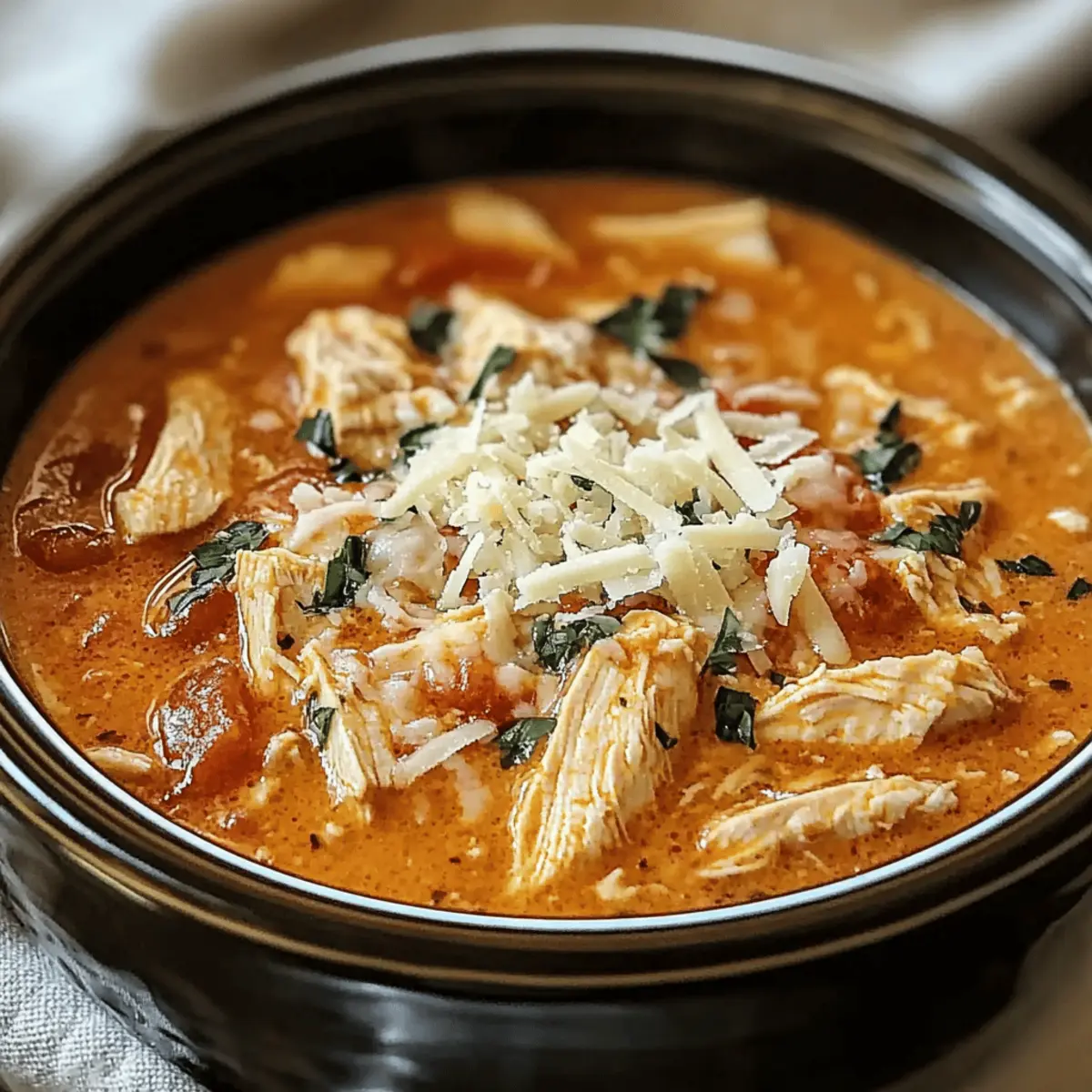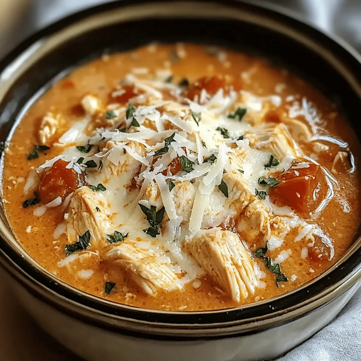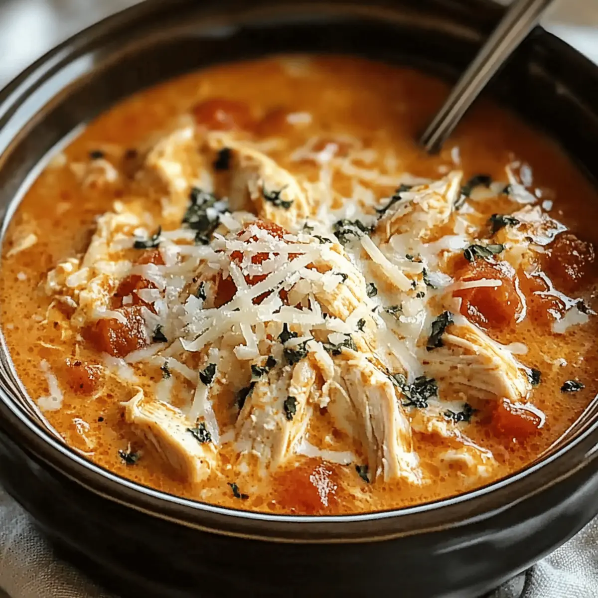 A comforting soup combining juicy chicken, tangy tomatoes, and rich cream for an extraordinary Italian-inspired delight.