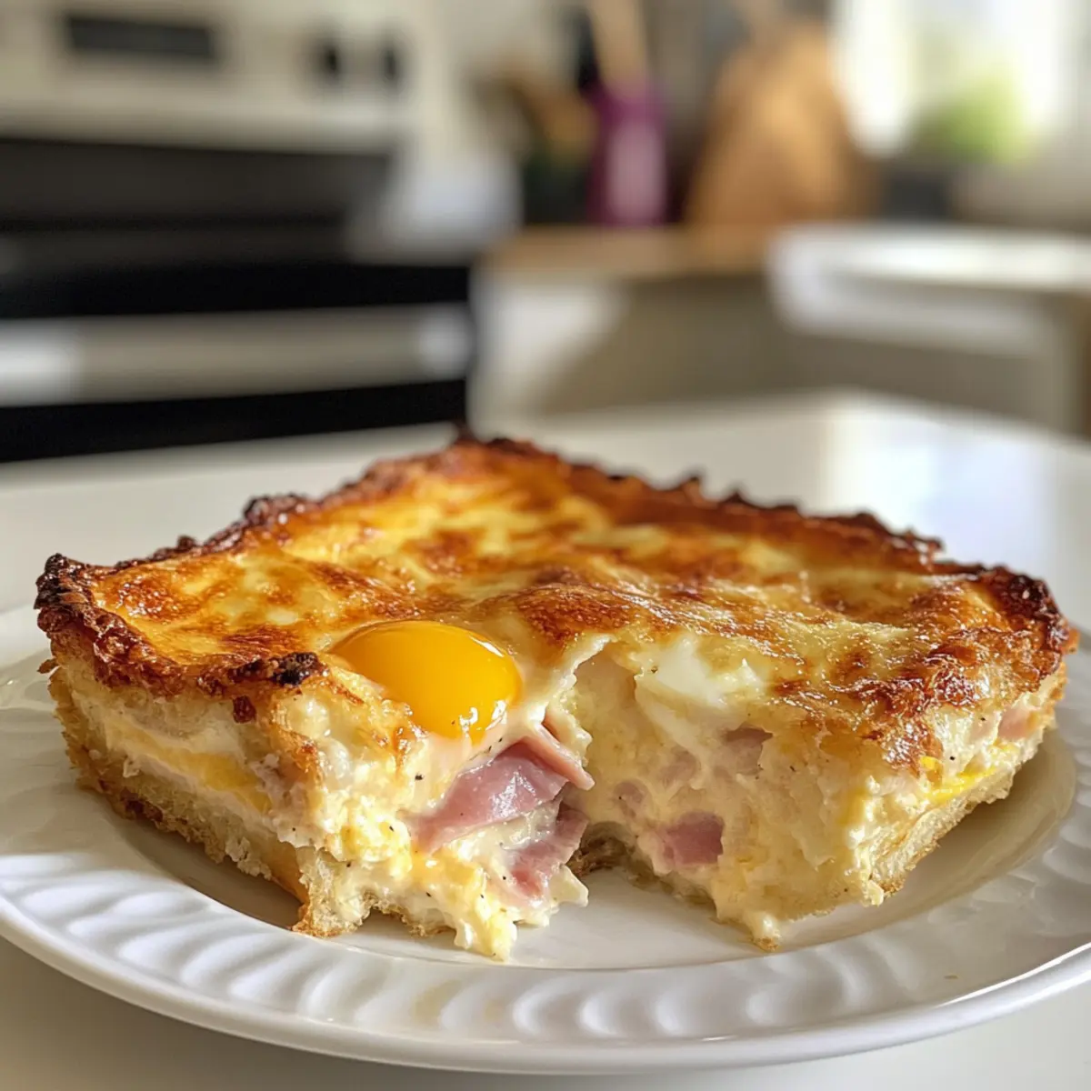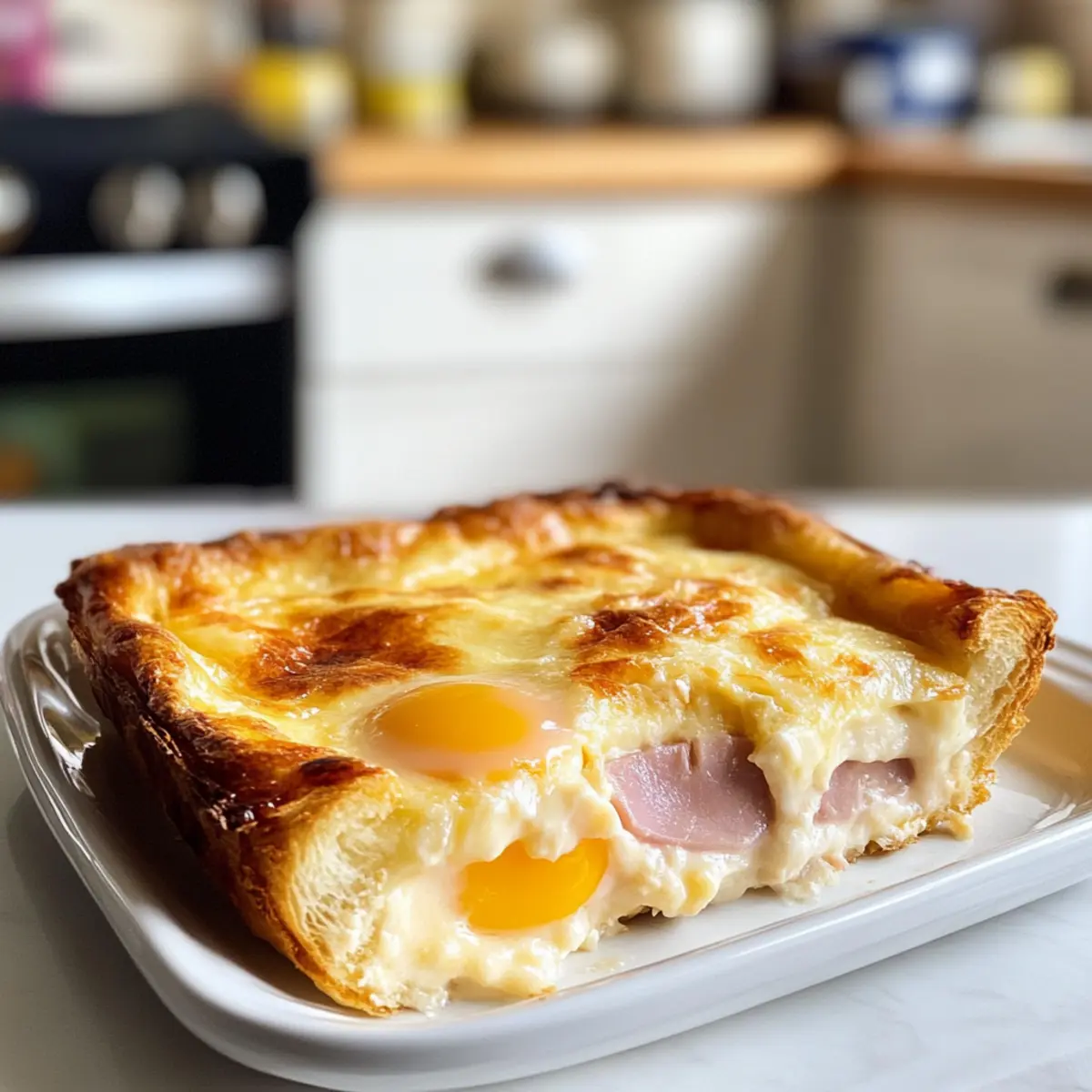Jump to Recipe Print RecipeThe aroma of melting Gruyère cheese and crisp, golden crust wafts through the kitchen, instantly teleporting me to the charming bistros of France. This Ultimate Croque Madame Breakfast Casserole captures the beloved flavors of the classic sandwich while transforming it into a cozy, shareable dish perfect for brunch gatherings or lazy weekend breakfasts. With its rich layers of savory ham, creamy béchamel, and fluffy eggs, this breakfast casserole is a crowd-pleaser that’s both hearty and comforting. Plus, it’s all baked in one pan, making clean-up feel like a breeze! Curious to learn how to create this delectable twist on tradition? Let’s dive into the recipe that will bring a piece of Paris to your breakfast table! Why is this casserole a must-try? Irresistible Flavors: The combination of nutty Gruyere cheese and savory ham creates a flavor explosion like no other. Time-Saving Delight: This casserole is perfect for brunch gatherings; simply prepare it in one pan and enjoy more time with family and friends. Comfort Food at its Finest: Enjoy the cozy vibes of a French bistro right at home with every comforting bite. Versatility: You can easily customize it by adding your favorite ingredients; try it with sautéed spinach or swap for turkey. This delightful dish is sure to impress everyone at the table, much like our popular Chicken Rice Casserole or flavorful Savory Breakfast Muffins. Experience all the joy of a Croque Madame without the fuss of making individual sandwiches! Croque Madame Breakfast Casserole Ingredients • Perfect for a delicious brunch! For the Casserole Thick Country French Bread – Building the base; use a rustic variety for the best texture. Gruyere Cheese – Essential for its nutty flavor; try a Swiss or Gouda substitute if needed. Smoked Ham – Adds savory goodness; don’t hesitate to swap for turkey or crispy bacon. Eggs – The heart of this dish, bringing richness; opt for high-quality eggs for better flavor. For the Bechamel Sauce Butter – Creates the roux; use unsalted to control the seasoning. All-Purpose Flour – Thickens the sauce beautifully; a gluten-free blend works well too! Milk – The creamy base for the sauce; whole milk gives the best richness. Nutmeg – A pinch elevates the flavor; fresh grated is the best option. For Finishing Touches Fresh Thyme – Herbaceous notes that complement the dish; feel free to use dried thyme in a pinch! Black Pepper – Adds a subtle heat; adjust the amount to your liking. This Croque Madame Breakfast Casserole will elevate your brunch game while being incredibly easy to prepare! Step‑by‑Step Instructions for Croque Madame Breakfast Casserole Step 1: Prepare the Bread Begin by preheating your oven to 350°F (175°C). While it heats, take a loaf of thick country French bread and cut it into 1-inch cubes. Spread the bread cubes evenly on a baking sheet and toast them in the oven for about 10 minutes, until they are golden brown and slightly crisp. This step adds texture to your Croque Madame Breakfast Casserole. Step 2: Mix Ingredients In a large mixing bowl, combine the toasted bread cubes, 2 cups of grated Gruyere cheese, and 1 cup of diced smoked ham. Crack in 6 high-quality eggs and gently mix all the ingredients together until well coated. The bread should absorb the flavors and binding elements, creating a foundation for a rich and savory casserole. Step 3: Make Bechamel Sauce In a medium saucepan over medium heat, melt 4 tablespoons of unsalted butter. Once melted, whisk in ¼ cup of all-purpose flour, stirring constantly for about 2-3 minutes until golden and bubbly. Gradually pour in 2 cups of whole milk while whisking vigorously to prevent lumps. Cook until the sauce thickens; it should coat the back of a spoon. Sprinkle in a pinch of nutmeg for flavor. Step 4: Combine Pour the warm bechamel sauce over the bread mixture and gently stir until everything is thoroughly combined, ensuring that the bread is evenly soaked. Grease a 9×13-inch casserole dish with butter or cooking spray. Transfer the mixture into the prepared dish, spreading it out evenly with a spatula. This will form the heart of your Croque Madame Breakfast Casserole. Step 5: Add Toppings Create small wells in the mixture and crack 4 eggs directly onto the top of the casserole. Sprinkle with fresh thyme and black pepper to taste. This not only enhances the dish visually but also infuses extra flavor as the casserole bakes, elevating it to brunch perfection. Step 6: Bake Place the casserole in the preheated oven and bake for approximately 38-40 minutes or until the top is bubbly and golden brown. It should have a rich aroma, and the eggs should be set but still slightly jiggly at the center for a creamy texture. This step transforms your mixture into a delightful Croque Madame Breakfast Casserole. Step 7: Serve Once baked, remove the casserole from the oven and let it cool for about 10 minutes before slicing. This resting time will help it hold its shape when you serve it. Cut into squares or rectangles and serve warm, allowing everyone to enjoy this comforting and delicious brunch dish! Expert Tips for Croque Madame Breakfast Casserole Choose the Right Bread: Using thick, rustic bread is essential; soft sandwich bread may disintegrate and make the casserole soggy. Let it Rest: Allow the mixture to rest before baking, so the bread absorbs the egg mixture fully, resulting in a moist, creamy Croque Madame Breakfast Casserole. Monitor Baking Time: Keep an eye on the casserole as it bakes; overbaking can dry it out. Aim for a golden brown top that’s bubbly but still moist inside. Enhance with Herbs: Don’t hesitate to experiment with fresh herbs; thyme, chives, or even a sprinkle of parsley can add delightful notes of flavor. Use Quality Ingredients: Opt for high-quality eggs and cheese, as these ingredients significantly impact the overall taste and richness of the casserole. Make Ahead Options These 