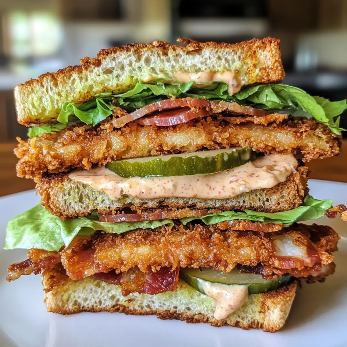 Enjoy a Crunchy Fried Green Tomato Sandwich, a Southern comfort food with crispy fried green tomatoes, savory bacon, and fresh lettuce.