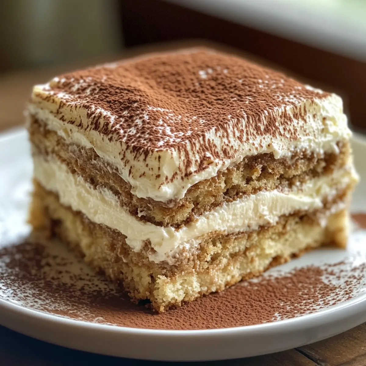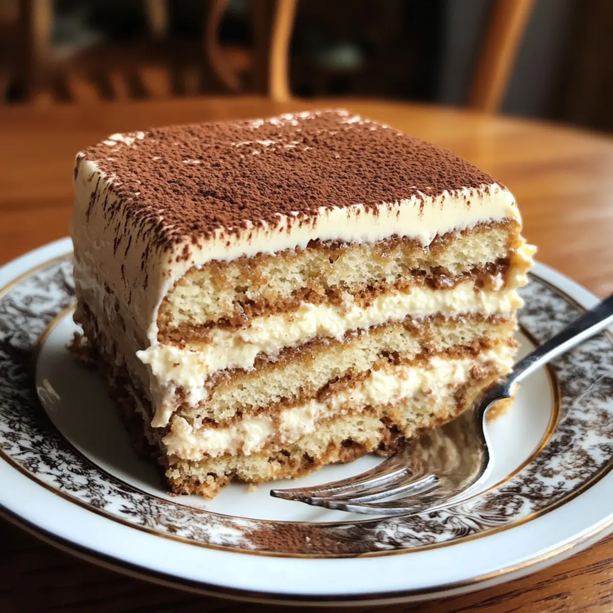 Jump to Recipe Print RecipeAs I dipped the ladyfingers into fragrant coffee, a small wave of nostalgia washed over me—each soak reminded me of cozy afternoons spent with my favorite book and a cup of Earl Grey tea. This is where the magic of Earl Grey Tiramisu truly unfolds, merging the rich, creamy layers of classic tiramisu with the enchanting aroma of bergamot. This elegant dessert is not only a sophisticated twist on the beloved Italian classic, but it’s also surprisingly easy to whip together. What I adore most is its versatility: perfect for impressing guests at a dinner party or simply relishing on a quiet evening at home. Curious to uncover the delicious details of this delightful treat? Let’s dive in! Why will you adore Earl Grey Tiramisu? Elegant and Unique: This Earl Grey Tiramisu elevates the traditional dessert with a sophisticated floral twist. Creamy Texture: The lush mascarpone offers a rich, velvety mouthfeel that’s simply irresistible. Versatile Flavor Options: Feel free to experiment—swap Earl Grey for chai or matcha and add a splash of your favorite liqueur for a personal touch! Perfect for Any Occasion: Whether it’s a fancy dinner party or a cozy night in, this dessert fits the mood beautifully. Make-Ahead Marvel: Ready to impress guests? Make it the day before to enhance the flavors—your future self will thank you! With this easy-to-follow recipe, achieving a restaurant-quality dessert at home is easier than you think. Dive into the comforting embrace of Earl Grey Tiramisu today! Earl Grey Tiramisu Ingredients For the Creamy Mixture Mascarpone Cheese – Adds rich creaminess; can substitute with cream cheese for a tangier flavor. Sugar – Sweetens the mascarpone layer; feel free to adjust according to your taste preference. Eggs – Essential for structure and richness; use fresh eggs or pasteurized ones for safety. For the Flavor Base Earl Grey Tea – Infuses the tiramisu with aromatic notes; use loose leaf or tea bags for steeping. Coffee – Brings a deep flavor to the dessert; brew strong coffee for best taste results. For Assembly Ladyfingers (Savoiardi) – Form the base; absorb coffee nicely; look for gluten-free options if needed. Cocoa Powder – Dust with this to balance sweetness and add visual appeal; unsweetened is best for authenticity. With these ingredients, you’re well on your way to creating a stunning Earl Grey Tiramisu that will enchant everyone who tastes it! ad Step‑by‑Step Instructions for Earl Grey Tiramisu Step 1: Prepare Tea Begin by brewing a strong cup of Earl Grey tea, allowing it to steep for about 5 minutes. Use either loose leaf or tea bags, then strain the leaves if necessary. Once steeped, let the tea cool to room temperature before moving on to the next step, ensuring it’s ready to flavor your Earl Grey Tiramisu. Step 2: Mix Mascarpone In a mixing bowl, combine 1 cup of mascarpone cheese with 1/3 cup of sugar using a spatula or mixer on low speed. Blend until the mixture is smooth and creamy, taking care to avoid overmixing. This rich and velvety base will be the heart of your Earl Grey Tiramisu, so ensure it’s well-combined and free of lumps. Step 3: Beat Eggs Separate 3 large eggs, placing the yolks in one bowl and the whites in another. Whisk the yolks with a hand mixer for about 3-4 minutes until they become pale and creamy. Once they are ready, gently fold the beaten yolks into the mascarpone mixture, incorporating them to create a luscious filling for your tiramisu. Step 4: Whip Egg Whites Now, in a separate bowl, whip the egg whites until they reach stiff peaks, which should take about 3-5 minutes. This will introduce air into the mixture, making your Earl Grey Tiramisu delightfully fluffy. Carefully fold the whipped egg whites into the mascarpone mixture using a spatula, ensuring you maintain the airy texture. Step 5: Prepare Coffee Dip Brew a strong cup of coffee (about 1 cup) and add sugar to taste if desired. Dip each ladyfinger briefly into the coffee, making sure they are soaked but not soggy—about 1-2 seconds per side is ideal. This quick dip will infuse the ladyfingers with flavor, creating a harmonious base for your Earl Grey Tiramisu. Step 6: Layering In a 9×9-inch serving dish, create a layer by arranging dipped ladyfingers at the bottom. Spread half of the mascarpone mixture over the ladyfingers evenly using a spatula. Repeat this layering process with another round of dipped ladyfingers, followed by the remaining mascarpone mixture until all components are used, finishing with a creamy layer on top. Step 7: Chill Cover the assembled Earl Grey Tiramisu with plastic wrap or aluminum foil, then place it in the refrigerator to chill for at least 4 hours, preferably overnight. This chilling time allows the flavors to meld and enhances the texture, making for a more delectable dessert experience. Step 8: Serve Before serving, dust the top of the tiramisu generously with cocoa powder using a fine sieve. This final touch adds a beautifully bitter contrast to the sweetness. Once ready, cut into squares and serve chilled, delighting in each creamy, aromatic bite of your elegant Earl Grey Tiramisu. Earl Grey Tiramisu: Creative Variations Feel free to explore these delightful variations of this elegant dessert that will tantalize your taste buds! Chai Twist: Replace Earl Grey with a spiced chai tea for a warm and aromatic flavor profile. The cozy spices in chai will give your tiramisu a comforting twist. Matcha Magic: Use matcha green tea instead of Earl Grey for a vibrant, earthy flavor. The bright green hue will make your tiramisu visually stunning alongside its unique taste. Chocolate Indulgence: Add cocoa powder directly into the mascarpone mixture for a chocolate-infused tiramisu. Chocolate lovers will adore this rich, decadent variation. Zesty Citrus: Mix in freshly grated lemon or orange zest into the mascarpone for a refreshing and zesty touch. The citrus brightness creates an uplifting 