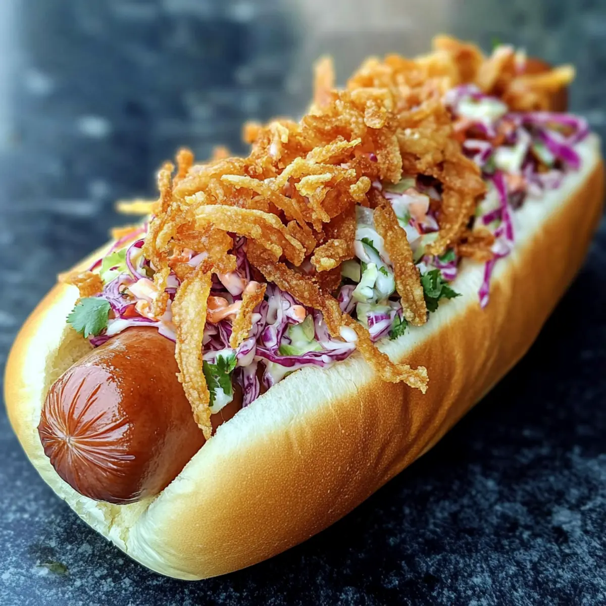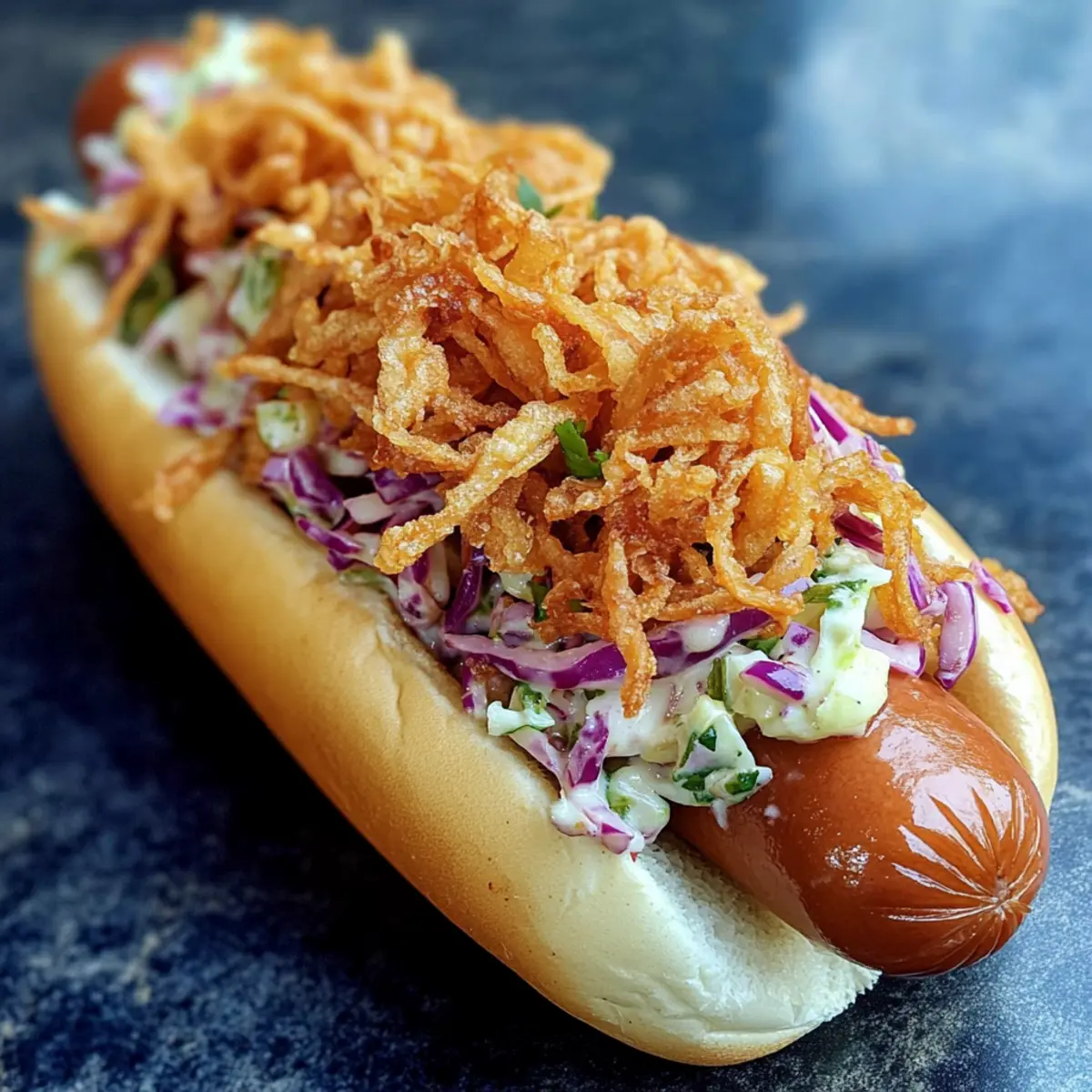 Jump to Recipe Print RecipeThere’s nothing quite like the thrill of a backyard barbecue, where every biting down into a juicy hot dog transports you back to sunny summer days. My Firecracker Hot Dogs with Spicy Slaw and Crispy Onions are a perfect blend of nostalgia and innovation, bringing a zesty twist to this classic comfort food. In just 25 minutes, you can whip up this vibrant dish that is as adaptable as it is mouthwatering—ideal for gatherings or a cozy night in. The added crunch of crispy onions and the refreshing kick from the spicy slaw make each bite an explosion of flavor. Are you ready to elevate your hot dog game and impress your friends and family? Why are these hot dogs a must-try? Bursting with Flavor: These Firecracker Hot Dogs are not your average backyard fare; they boast an exciting mix of spicy slaw that tantalizes the taste buds. Quick & Easy: Ready in just 25 minutes, this recipe fits seamlessly into any busy schedule, making it perfect for last-minute gatherings. Adaptable to Preferences: With substitution options galore—like spicy sausages or pretzel buns—feel free to tailor the dish to your taste! Crowd-Pleasing Crunch: The crispy fried onions add a delightful texture that contrasts beautifully with the juicy hot dogs and slaw. Perfect for Any Occasion: From casual family dinners to festive barbecues, these hot dogs are sure to impress. Plus, why not try them alongside Crispy Roasted Cauliflower for a delicious side? Firecracker Hot Dogs Ingredients Here’s everything you need to bring these exciting Firecracker Hot Dogs with Spicy Slaw and Crispy Onions to life! For the Hot Dogs Hot Dogs – The main star, juicy and bursting with flavor; try spicy sausages for an added kick. Hamburger Buns – Soft and sturdy, the perfect vessel for your toppings; consider pretzel buns for a twist! For the Spicy Slaw Mayonnaise – Provides a creamy base for the slaw; feel free to use store-bought for convenience. Sriracha – Infuses heat into the slaw; adjust to your preferred spice level for the best flavor. Lime Juice – Brightens the slaw with acidity; fresh is best but bottled works in a pinch. Shredded Cabbage – Adds volume and crunch; you can substitute with a ready-made coleslaw mix. Chopped Red Onion – Contributes sharpness; omit for a milder flavor if preferred. Fresh Cilantro – Offers a burst of freshness; parsley is a great alternative if cilantro isn’t to your taste. For the Crunchy Topping Crispy Fried Onions – Introduces a satisfying crunch; these can be homemade or store-bought. Now that you’ve gathered the ingredients, get ready to wow your family and friends with this flavorful Firecracker Hot Dogs masterpiece! Step‑by‑Step Instructions for Firecracker Hot Dogs Spicy Slaw Crispy Onions Step 1: Prepare the Spicy Slaw In a medium bowl, whisk together 1/2 cup of mayonnaise, 2 tablespoons of sriracha, and the juice of 1 lime until smooth. Add in 3 cups of shredded cabbage, 1/4 cup of chopped red onion, and a handful of fresh cilantro, tossing gently to combine. Ensure everything is nicely coated, then set aside to allow the flavors to meld while you prepare the hot dogs. Step 2: Cook the Hot Dogs Preheat your grill or a skillet over medium heat. Place the hot dogs on the grill or in the skillet and cook for about 5-7 minutes, turning them frequently until they are nicely browned and heated through. Look for a slight char and sizzling sound, which indicates they’re ready to be enjoyed in all their juicy glory! Step 3: Toast the Buns As the hot dogs cook, slice the hamburger buns in half and lightly butter the inside. On a separate skillet over medium heat, toast the buns for about 2-3 minutes, cut side down, until they are golden brown and crispy. This step will add flavor and texture, creating the perfect base for your Firecracker Hot Dogs with spicy slaw. Step 4: Assemble the Hot Dogs Once the hot dogs are cooked and the buns are toasted, it’s time to assemble! Place each hot dog into a toasted bun and generously top it with the zesty spicy slaw from Step 1. The vibrant colors and textures will create a feast for the eyes before the first bite. Step 5: Add the Crispy Onions Finish your Firecracker Hot Dogs by sprinkling a handful of crispy fried onions on top of the slaw. These add a delightful crunch and a burst of flavor that complements the heat of the sriracha and the coolness of the slaw. Step 6: Serve and Enjoy Serve your assembled Firecracker Hot Dogs warm with additional lime wedges on the side for those who want an extra kick of freshness. Gather your friends and family around to enjoy this vibrant dish, perfect for any casual gathering or barbecue! What to Serve with Firecracker Hot Dogs with Spicy Slaw & Crispy Onions Elevate your backyard barbecue with delightful sides that will complement the explosive flavors of your hot dogs. Creamy Coleslaw: This cool and crunchy side adds a classic touch, offering a refreshing counterbalance to the spicy slaw. Grilled Corn on the Cob: Sweet and smoky, grilled corn is a summer staple that brings a joyful pop of sweetness to your meal. Potato Salad: A creamy potato salad shrouded in tangy dressing makes for a hearty and comforting companion to any hot dog. Fresh Garden Salad: Light and crisp, a garden salad can help cleanse the palate between bites, enhancing your tasting experience. Baked Beans: Sweet and savory baked beans are sure to please the crowd, complementing the spice with a rich, hearty flavor. Chips and Salsa: For a burst of flavor, serve tortilla chips alongside zesty salsa for a fun, dippable snack that mirrors the vibrant style of your hot dogs. Lemonade or Iced Tea: Refreshing drinks like homemade lemonade or iced tea bring a cooling contrast to the heat of the Firecracker Hot Dogs. Fruit Salad: A light, vibrant fruit salad filled with seasonal fruits adds a delightful sweetness to balance the savory elements of your meal. Make Ahead Options These Firecracker Hot Dogs