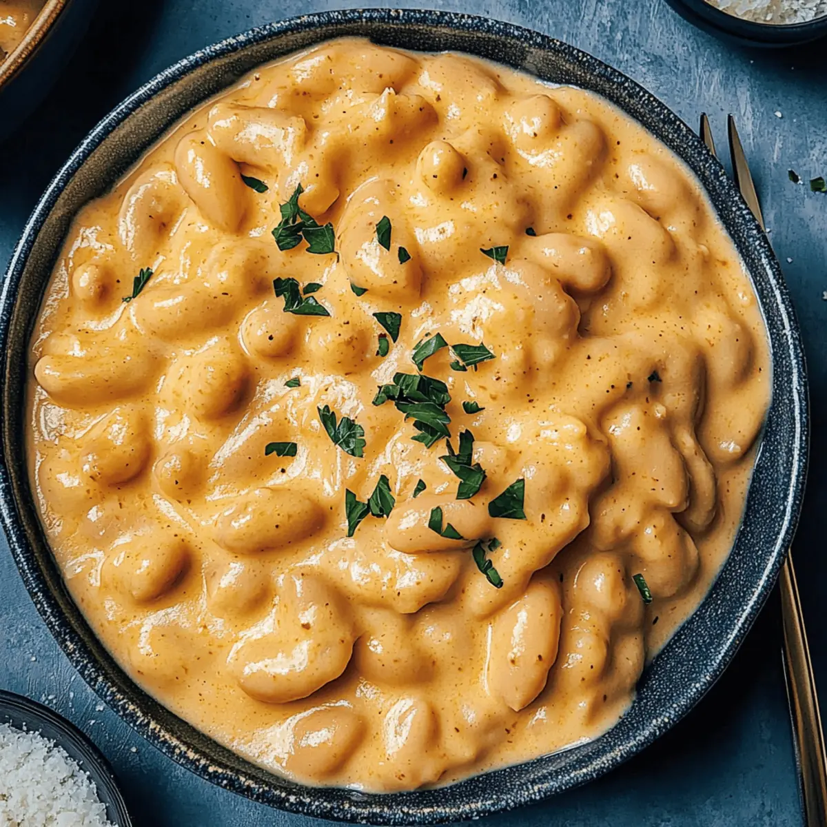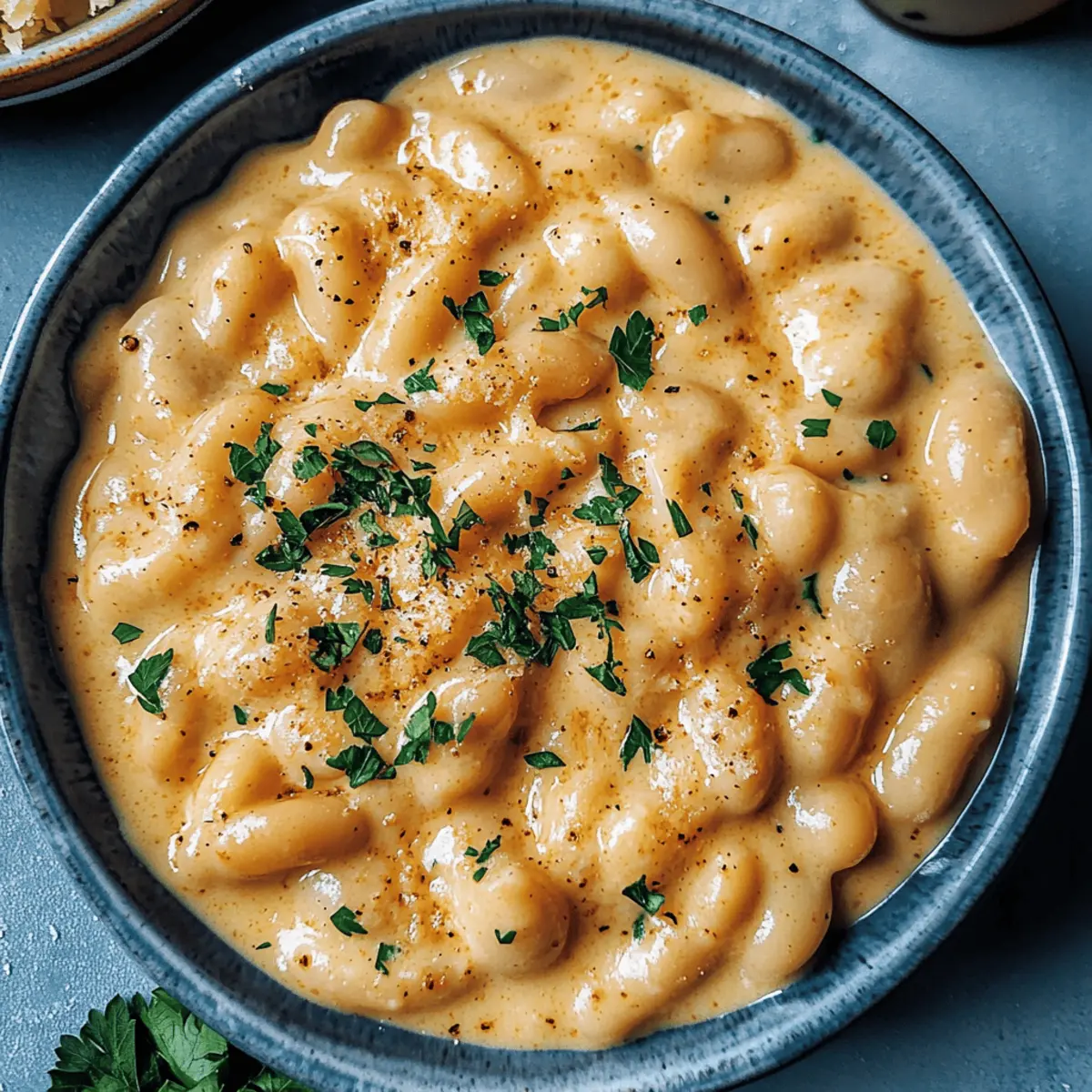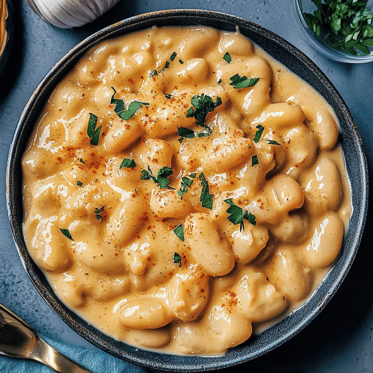 Jump to Recipe Print RecipeThe aromatic sizzle of garlic mingling with creamy butter fills my kitchen, instantly transporting me to a cozy bistro. Today, I’m excited to share my take on Garlic Parmesan Butter Beans—a delightful vegetarian dish that’s not just quick and easy, but also packed with plant-based protein and fiber, making it a guilt-free indulgence. In just 20 minutes, you can whip up a meal that transforms humble ingredients into a rich, comforting experience, perfect for busy weeknights or a leisurely weekend dinner. This dish proves that good food doesn’t have to take hours to prepare and will definitely entice everyone to leave their fast food cravings behind. Curious about how to create this creamy wonder? Let’s dive into the recipe! Why Try Garlic Parmesan Butter Beans? Simplicity: This recipe is incredibly straightforward, utilizing just nine ingredients that you probably already have at home. Quick Prep: You’ll have a filling meal on the table in just 20 minutes, making it ideal for busy weeknights. Creamy Texture: The combination of cream cheese and butter beans creates a luxuriously creamy sauce that’s sure to impress. Versatile Substitutions: Easily swap out ingredients like cheese or beans for personalized options that cater to dietary preferences. Healthy Indulgence: Packed with protein and fiber, this dish is a wholesome alternative to fast food cravings, leaving you satisfied without the guilt. Pair it with a crusty bread for a complete experience you won’t soon forget! Garlic Parmesan Butter Beans Ingredients • Get ready to explore the magic of Garlic Parmesan Butter Beans with these nine simple ingredients! For the Flavor Base Unsalted Butter – Adds richness; substitute with olive oil for a dairy-free option. Garlic (4 cloves, minced) – Provides an aromatic foundation; fresh garlic is best for maximum flavor. Italian Seasoning (1 tsp) – A herbal blend that elevates taste; dried basil or oregano can be used instead. Ground Black Pepper (½ tsp) – Enhances flavor; adjust to your spice preference. Smoked Paprika (½ tsp) – Introduces a subtle smokiness that deepens flavor; regular paprika can stand in without smokiness. For the Creamy Sauce Vegetable Broth (1 cup) – The flavorful cooking liquid for the beans; use low-sodium for a lighter option. Cream Cheese (4 oz) – Creates a rich, creamy texture; opt for plant-based cream cheese or coconut milk for a dairy-free version. For the Star Ingredient Butter Beans (2 cans, 15 oz each) – The main source of plant-based protein and fiber; cannellini or chickpeas can be substituted if needed. Shredded Parmesan Cheese (½ cup) – Adds cheesy flavor and richness; vegan parmesan works well for a dairy-free option. Step‑by‑Step Instructions for Garlic Parmesan Butter Beans Step 1: Prepare Flavor Base In a large sauté pan, melt 2 tablespoons of unsalted butter over medium heat. Once the butter is bubbling, add 4 minced garlic cloves, 1 teaspoon of Italian seasoning, ½ teaspoon of ground black pepper, and ½ teaspoon of smoked paprika. Sauté for about 1-2 minutes, stirring frequently, until the garlic becomes soft and fragrant, releasing its delicious aroma. Step 2: Simmer Mixture Next, carefully stir in 1 cup of vegetable broth and 4 ounces of cream cheese, mixing until the cream cheese is fully melted and the mixture is creamy. Drain and add 2 cans of butter beans, gently folding them into the mixture. Allow this delicious blend to simmer uncovered for 10-15 minutes, stirring occasionally until the sauce thickens and coats the beans beautifully. Step 3: Finish and Serve When the sauce has reached a velvety consistency, remove the pan from heat and stir in ½ cup of shredded Parmesan cheese. Mix thoroughly until the cheese melts and is evenly distributed throughout the Garlic Parmesan Butter Beans. Serve the dish warm, and enjoy every comforting bite of this creamy, scrumptious meal. What to Serve with Garlic Parmesan Butter Beans Elevate your meal with delicious sides that enhance the rich flavors and creamy texture of this delightful dish. Crusty Bread: Perfect for soaking up the creamy sauce, a warm, crusty baguette or sourdough bread adds a satisfying crunch to your meal. Dip and delight! Green Salad: A fresh salad with mixed greens, cherry tomatoes, and a light vinaigrette offers a refreshing contrast to the richness of the beans, balancing flavors beautifully. Roasted Vegetables: Try a mix of seasonal veggies like carrots, zucchini, and bell peppers. Their caramelized sweetness complements the savory notes of the Garlic Parmesan Butter Beans. Quinoa Pilaf: Light and nutty quinoa adds a protein punch, rounding out your meal while providing a heartiness that pairs perfectly with the creamy beans. Garlic Breadsticks: Enhance the garlicky goodness by serving these warm and buttery sticks alongside. They’re a fun finger-food option everyone will love. Sparkling Lemonade: A zesty drink option that cuts through the richness, sparkling lemonade brings a bubbly freshness to your dinner table. Lemon Sorbet: End the meal on a light note with a refreshing lemon sorbet. Its bright flavor acts as a palate cleanser, leaving you satisfied and happy. Make Ahead Options These Garlic Parmesan Butter Beans are perfect for meal prep enthusiasts, allowing you to enjoy a delicious home-cooked meal with minimal effort! You can prepare the flavorful base (the garlic, seasonings, and broth mixture) up to 24 hours in advance and store it in an airtight container in the refrigerator. Additionally, the butter beans can be measured and drained ahead of time for even quicker cooking. On the day you plan to serve, simply reheat the prepped mixture in a sauté pan, stir in the cream cheese and butter beans, and simmer for a few minutes until everything is warmed through and creamy. This way, you’ll save precious time during busy weeknights while still enjoying the same comforting flavors! Garlic Parmesan Butt