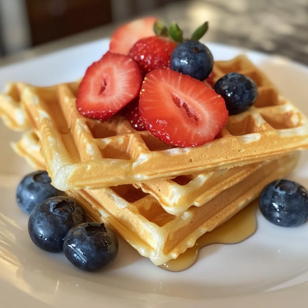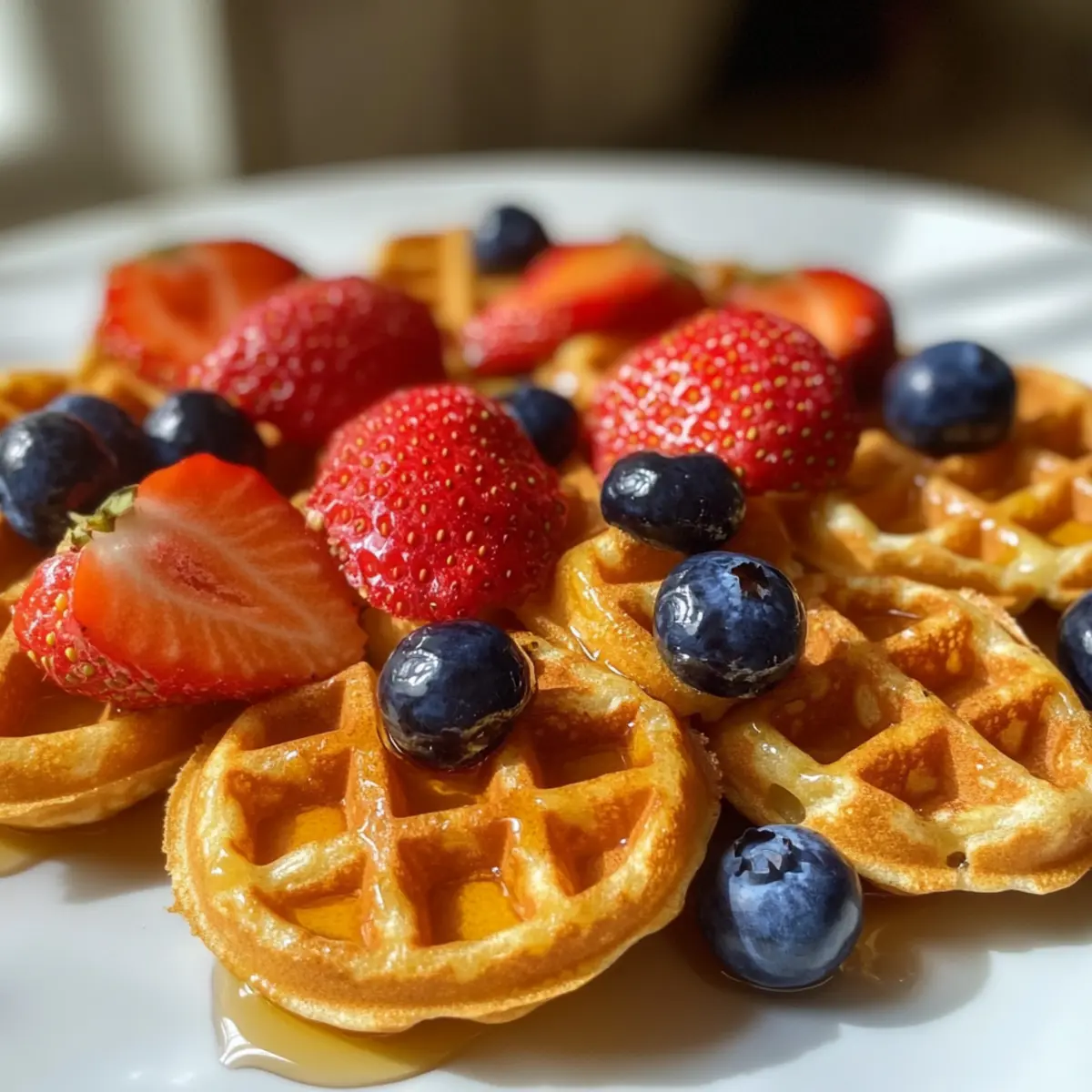 • Fresh Berries: Juicy strawberries and blueberries add a pop of color and freshness that balances the sweetness of the waffles.