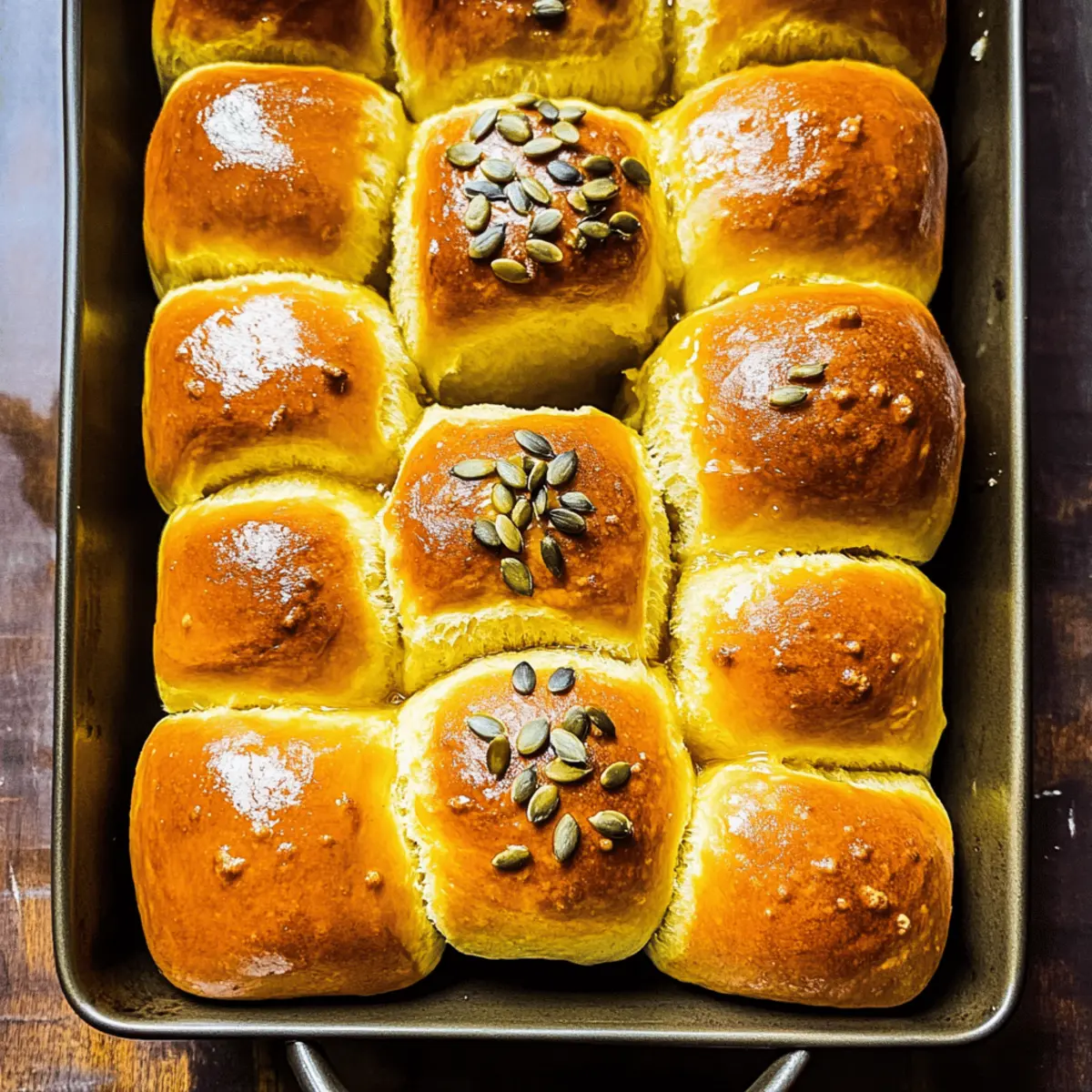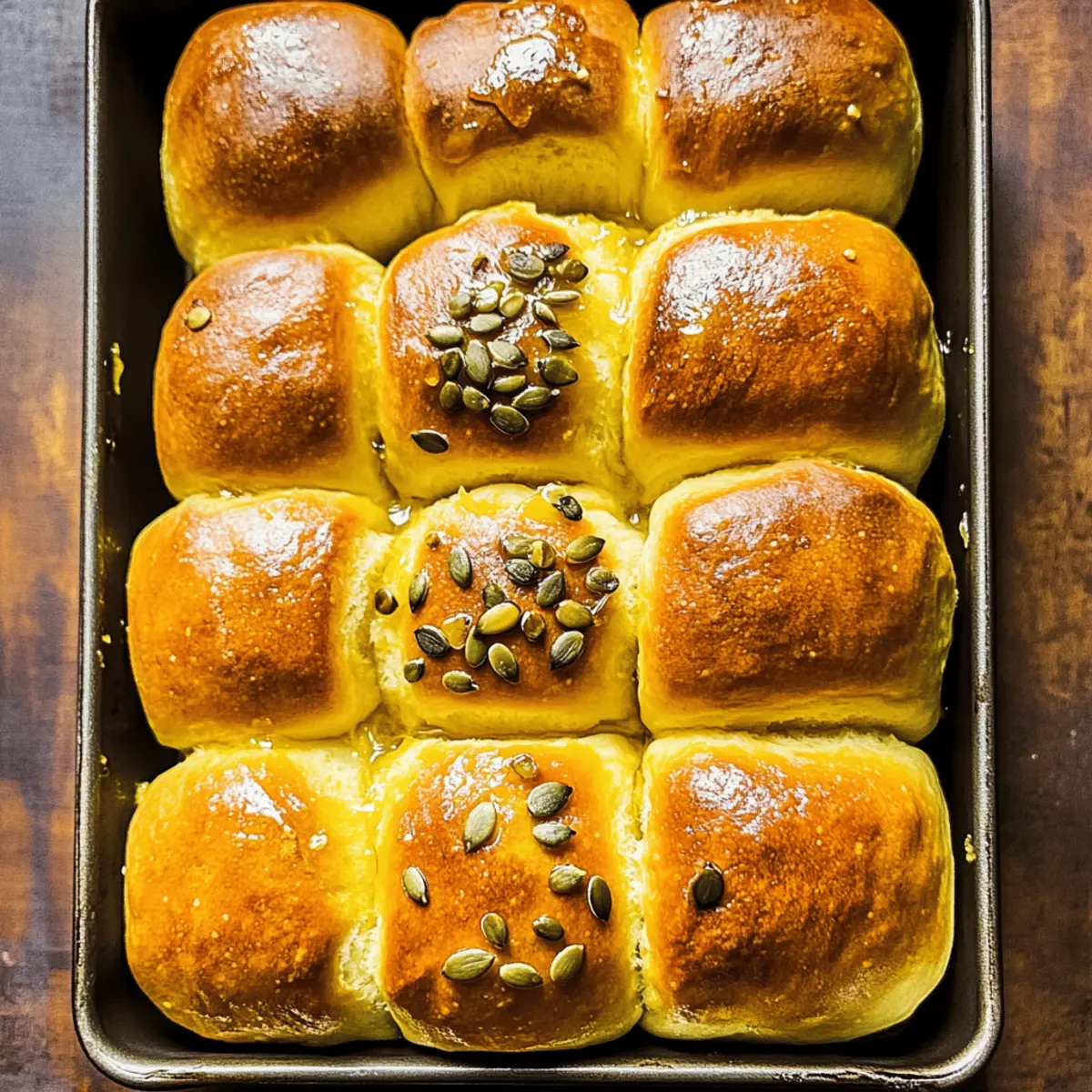 Jump to Recipe Print RecipeAs I took my first bite of the warm, fluffy Honey Pumpkin Dinner Rolls fresh from the oven, I felt like I was wrapped in a cozy fall blanket. These delightful rolls are not just another side dish—they embody the spirit of Thanksgiving with their sweet pumpkin twist and rich dough that’s perfect for soaking up gravy or enjoying with a pat of butter. Whipping up these easy homemade rolls will have your kitchen filled with comforting aromas and your family gathering around the table, eagerly awaiting their taste. Whether it’s for a festive feast or a casual family dinner, these rolls are sure to impress and become a cherished part of your recipe rotation. Are you ready to elevate your fall baking game with this irresistible recipe? Why will you adore these rolls? Fluffy Texture: Each Honey Pumpkin Dinner Roll is incredibly soft, creating a delightful pillowy bite that melts in your mouth. Seasonal Flavor: Infused with rich pumpkin puree and a hint of honey, these rolls capture the essence of fall, making them a seasonal favorite. Easy to Make: With straightforward steps, you’ll have fresh rolls baking in less than three hours, perfect for even novice bakers. Versatile Pairing: Whether served alongside roasted turkey or enjoyed with soups like Salted Honey Butter Buttermilk Biscuits, they complement a variety of dishes beautifully. Crowd-Pleaser: Your family and friends will rave about these festive rolls, making them an instant hit at any gathering! Serve them warm, and watch them disappear quickly! Honey Pumpkin Dinner Roll Ingredients For the Dough Whole Milk – Provides moisture and richness; can use almond milk for a dairy-free option. Honey – Adds natural sweetness and depth of flavor; maple syrup is a perfect alternative. Active Dry Yeast – Essential for the dough to rise; always check the expiration date for freshness. Egg – Binds the ingredients and adds moisture; substitute with a flax egg for a vegan option (1 tbsp flaxseed meal + 2.5 tbsp water). Pure Pumpkin Puree – Infuses the rolls with flavor and moisture, making them irresistibly soft; both canned or fresh puree work wonderfully. All-Purpose Flour – Provides structure; substitute with a gluten-free blend if necessary. Bread Flour – Adds chewiness to the texture; there’s no direct substitute for the best results. Fine Sea Salt – Enhances flavor; kosher salt can be used as an alternative, reducing the amount slightly. Unsalted Butter – Adds richness; can swap with vegan butter for a dairy-free version. For the Topping Pumpkin Seeds – Offers a visual and textural crunch; optional, but delicious if included. Granulated Sugar – For optional sprinkling on top, it gives a sweet glossy finish to the rolls. Dive into the world of Honey Pumpkin Dinner Rolls and watch them become a beloved part of your fall family meals! Step‑by‑Step Instructions for Honey Pumpkin Dinner Rolls Step 1: Activate the Yeast In a mixing bowl, warmly combine 1/2 cup of whole milk, 2 teaspoons of honey, and 2 1/4 teaspoons of active dry yeast. Allow the mixture to sit undisturbed for about 5 minutes until it becomes bubbly and foamy—this shows your yeast is alive and ready to work its magic for your Honey Pumpkin Dinner Rolls. Step 2: Prepare the Dry Ingredients While the yeast activates, whisk together 2 cups of all-purpose flour, 1 cup of bread flour, and 1 teaspoon of fine sea salt in a separate bowl. This blend creates a sturdy foundation for your rolls. Mix well until completely combined, ensuring that the salt is evenly distributed to flavor every bite of your Honey Pumpkin Dinner Rolls. Step 3: Mix Wet Ingredients To the foamy yeast mixture, add 1 large egg and 1 cup of pure pumpkin puree, stirring gently to combine. The vibrant orange color of the pumpkin adds not just flavor but also a beautiful hue to your dough. Make sure it’s well mixed before moving to the next step, as this is where your Honey Pumpkin Dinner Rolls begin to take shape. Step 4: Combine Wet and Dry Mixtures Gradually incorporate the dry flour mixture into the pumpkin mixture, stirring with a spatula until a shaggy dough forms. As you combine, it may seem a bit sticky, but that’s perfectly fine! The goal here is to ensure that all the ingredients are well incorporated before heading into the kneading phase for your delightful Honey Pumpkin Dinner Rolls. Step 5: Knead the Dough Transfer the dough to a lightly floured surface and knead for about 10 minutes until smooth and elastic. If the dough feels too sticky, sprinkle in a little more flour, as needed. You can also use a stand mixer with a dough hook, but feel free to unleash your inner baker by kneading by hand for that personal touch in your Honey Pumpkin Dinner Rolls. Step 6: Let the Dough Rise Once kneaded, shape the dough into a ball and place it in a greased bowl. Cover the bowl with a clean kitchen towel or plastic wrap, and let it rise in a warm place until it doubles in size—approximately 1.5 to 2 hours. This slow rise will develop the flavors in your Honey Pumpkin Dinner Rolls, making them irresistibly fluffy. Step 7: Shape the Rolls After the dough has risen, punch it down gently to release air bubbles and turn it onto a floured surface. Divide the dough into 12 equal pieces, shaping each into a smooth ball. Place them on a greased baking sheet, making sure they’re evenly spaced to allow for expansion. This step is crucial for evenly fluffy Honey Pumpkin Dinner Rolls. Step 8: Prove the Rolls Cover the baking sheet with a towel and let the shaped rolls rise for another hour until puffed. During this time, preheat your oven to 375ºF. This second rise allows the dough to become light and airy, ensuring that each bite of your Honey Pumpkin Dinner Rolls is a warm, soft experience. Step 9: Prep for Baking Brush each roll with an egg wash made from 1 beaten egg to give them a beautiful golden color. If desired, sprinkle with pumpkin seeds and a bit of gran