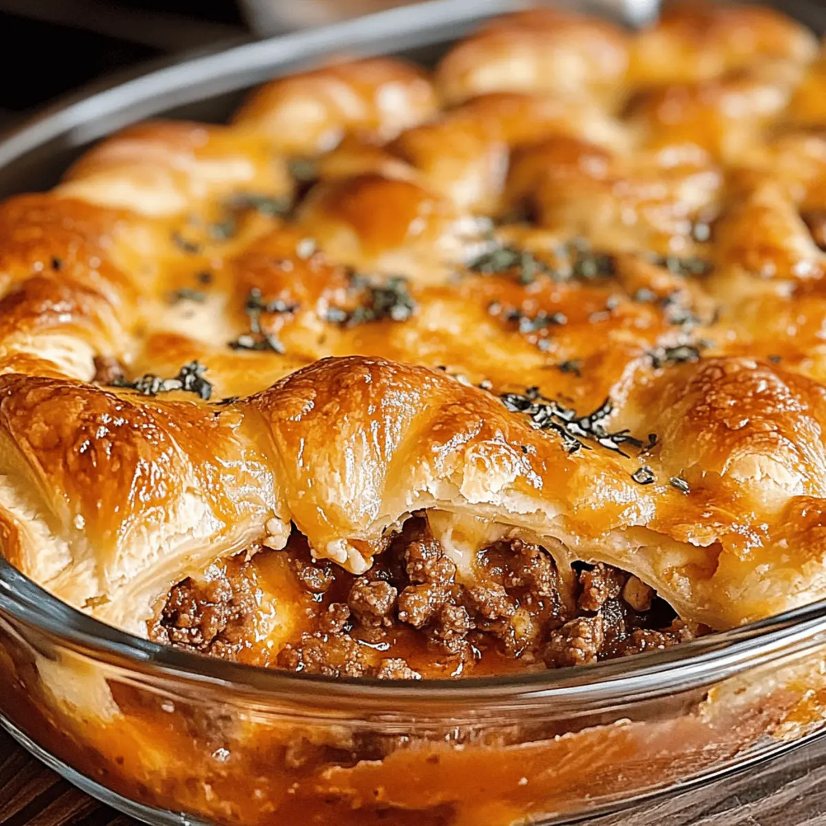 Jump to Recipe Print RecipeAs soon as I pulled this Italian Crescent Casserole from the oven, the irresistible aroma wrapped around my kitchen like a warm hug, making my mouth water. This cozy dish, packed with savory ground beef, gooey cheese, and flaky crescent rolls, is a game-changer for those busy evenings when you crave comfort food without the fuss. Whipping it up takes just 30 minutes, making it perfect for families and gatherings alike. Imagine serving up a delightful casserole that not only pleases the crowd but also gives you that satisfying homemade feel. Whether it’s a weeknight dinner or a special occasion, this Italian Crescent Casserole is sure to become a cherished recipe in your culinary repertoire. Ready to dive into a comforting dish that’s as easy to make as it is delicious? Let’s get started! Why will you love this casserole? Simplicity at Its Best: This Italian Crescent Casserole is incredibly easy to prepare, taking just 30 minutes from start to finish, leaving you time to enjoy your meal rather than spend all day in the kitchen. Rich, Comforting Flavor: Savory ground beef and gooey cheese meld perfectly with flaky crescent roll layers, delivering a taste sensation that brings the family running at dinnertime. Versatile Genius: Feel free to customize with veggies or swap in ground turkey for a lighter take, allowing you to cater to everyone’s preferences! Crowd-Pleasing Appeal: Perfect for family dinners or entertaining guests, this dish looks impressive yet requires minimal effort, making it a true win-win! Looking for more comforting casseroles? Check out my delicious Crack Chicken Casserole or the hearty Chicken Rice Casserole for satisfying options. Italian Crescent Casserole Ingredients A perfect mix of flavors awaits! For the Casserole Ground Beef – The hearty base that adds rich flavor and protein. Onion (finely diced) – Sweetens the dish and brings texture to the mix. Marinara Sauce (1 cup) – Choose your favorite for a flavorful sauce that sings Italian cuisine. Sour Cream (½ cup) – Adds a luscious creaminess that elevates every bite. Shredded Mozzarella Cheese (8 oz) – This gooey goodness is essential for a comforting cheesy layer. Pillsbury Refrigerated Crescent Dinner Rolls (1 package, 8 oz) – Your quick solution for a flaky, golden crust. Butter (2 tablespoons, melted) – Enhances the flavor of the crescent rolls and adds a golden touch. Grated Parmesan Cheese (¼ cup) – Ideal for that crisp topping and an extra flavor boost. For Customization Ground Turkey or Chicken – A lighter alternative if you prefer leaner meats in your Italian Crescent Casserole. Additional Veggies – Consider spinach or bell peppers for a nutritious twist! Step‑by‑Step Instructions for Italian Crescent Casserole Step 1: Prepare the Base In a large skillet, heat over medium heat while browning 1 pound of ground beef along with 1 finely diced onion. Stir frequently until the meat is fully cooked and the onion softens, about 5-7 minutes. Drain excess fat from the skillet, ensuring a less greasy final casserole, then return to the heat. Step 2: Combine Ingredients To the skillet with the beef and onions, stir in 1 cup of marinara sauce. Season with salt and pepper to taste, mixing well to ensure the flavors meld together. Let this mixture simmer for about 3-5 minutes until heated through, giving a wonderful fragrant aroma that signals it’s time for the next step. Step 3: Make the Cheese Blend In a medium bowl, whisk together ½ cup of sour cream and 8 ounces of shredded mozzarella cheese. This creamy blend adds a delightful richness to your Italian Crescent Casserole. Ensure it’s well combined so each bite bursts with cheesy goodness, then set it aside while you prepare the casserole dish. Step 4: Layer the Casserole Grease a 2 ½ quart casserole dish with cooking spray or butter to prevent sticking. Spread the beef and marinara mixture evenly across the bottom of the dish, creating a flavorful base. Follow this by layering the creamy cheese blend on top, spreading it evenly to ensure a delightful cheesy finish in every serving. Step 5: Add the Dough Unroll a package of Pillsbury Refrigerated Crescent Dinner Rolls and lay the dough over the cheese layer, ensuring it covers the entire mixture. You can press the edges of the dough together gently to create a seamless crust. This flaky topping will bake to golden perfection while keeping the filling moist and flavorful. Step 6: Finish with Buttery Topping In a small bowl, mix 2 tablespoons of melted butter with ¼ cup of grated Parmesan cheese. Drizzle this buttery mixture over the dough, ensuring an even coating for a rich flavor and crunchy texture. This step is essential for that beautiful golden-brown crust that makes the Italian Crescent Casserole irresistible. Step 7: Bake Place the assembled dish in a preheated oven at 375°F (190°C). Bake for 20-25 minutes, or until the crescent roll crust is golden brown and the filling is bubbling delightfully at the edges. You’ll know it’s done when the aroma fills your kitchen, making it hard to wait for the first slice! Step 8: Serve Once baked, allow the Italian Crescent Casserole to cool for a few minutes before slicing. This brief cooling helps the layers set slightly for easier serving. Slice into squares and serve warm, ready to enjoy a comforting dish that brings everyone to the table! Italian Crescent Casserole Variations Feel free to let your culinary creativity shine with these delightful twists that will add a personal touch to your Italian Crescent Casserole! Turkey Swap: Substitute ground turkey or chicken for a leaner, lighter option that still offers great taste. Juicy and satisfying, it’s a healthy way to enjoy this comfort dish! Sauce Switch: Swap marinara sauce with pesto or Alfredo for a creamy, herb-infused flavor. This simple change can take your casserole on an entirely new flavor adventure! Veggie Boost: Add chopped spinach o