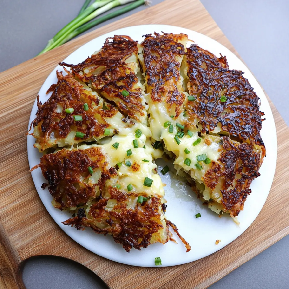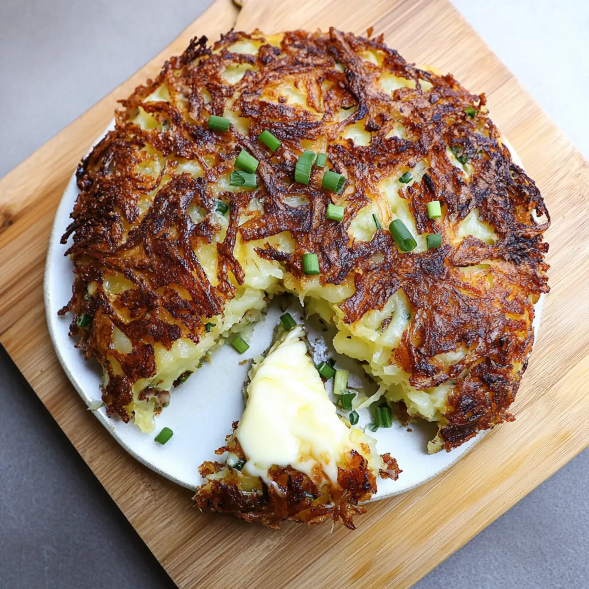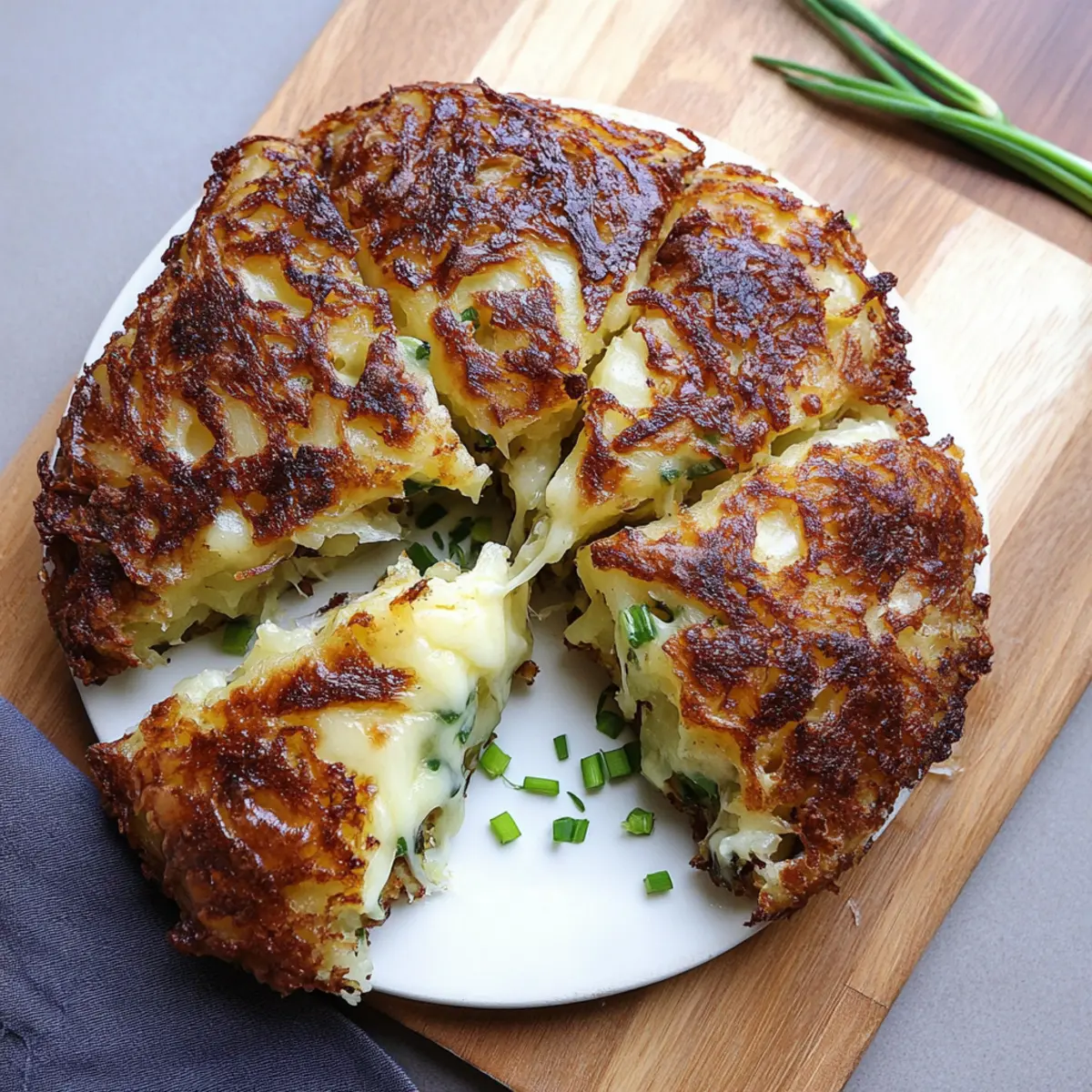 Jump to Recipe Print RecipeA delightful aroma fills the kitchen as I carefully peel and grate my potatoes, reminiscing about cozy evenings spent savoring potato rösti at my favorite Swiss café. This Crispy Jarlsberg-Stuffed Potato Rösti is my modern twist on a classic dish, featuring the nutty richness of melted Jarlsberg cheese tucked within golden, crispy layers. Not only is this recipe a fantastic way to elevate humble ingredients, but it also brings joy to any table, whether it’s a lazy Sunday brunch or a chic dinner side. Imagine serving a dish that’s both irresistible and vegetarian-friendly, making it perfect for impressing friends or simply savoring at home. Are you ready to dive into this cheesy goodness? Let’s get cooking! Why is this Rösti a Must-Try? Comfort Food Bliss: Each bite of Crispy Jarlsberg-Stuffed Potato Rösti is like a warm hug from your favorite dish. The combination of crispy potatoes and gooey Jarlsberg cheese makes it a comforting meal for any occasion. Endless Customization: Want to switch things up? You can easily substitute the Jarlsberg cheese or add in veggies for a delightful twist. It’s the kind of recipe that encourages creativity! Quick and Easy: This dish is a breeze to make, transforming simple ingredients into a showstopper in under an hour. Perfect for busy weeknights or a leisurely brunch with friends. Crowd-Pleaser: Your guests will swoon over this innovative take on a classic Swiss dish. Serve alongside a hearty salad or even topped with a sunny-side-up egg for a breakfast delight. Explore more exciting potato recipes like our Steakhouse Potato Salad or try the flavorful Cheesy Baked Potatoes with Broccoli Cheese Sauce to impress your loved ones! Jarlsberg-Stuffed Potato Rösti Ingredients For the Rösti Base Potatoes (2 lb thin-skinned) – Waxy varieties provide the best structure and crispy texture for your rösti. Canola Oil – This cooking fat ensures a crispy exterior; olive oil works as a healthy substitute. Butter – Adds a rich flavor while helping to achieve that coveted crunch; can be replaced with margarine for a dairy-free option. Salt and Pepper – Essential seasonings that enhance flavors; feel free to adjust according to your taste. For the Filling Jarlsberg Cheese (1/2-1 lb, grated) – The star ingredient that brings a creamy and nutty flavor to every bite; Gruyère or Emmental can be used for similar results. For the Garnish Green Onions/Chives (2 green onions or a few chives, chopped) – These fresh herbs add a pop of color and flavor; substitute with diced shallots if needed. Step‑by‑Step Instructions for Jarlsberg-stuffed Potato Rösti Step 1: Prepare Potatoes Begin by boiling the potatoes in salted water for about 15 minutes until they are just tender but not fully cooked. Drain and let them cool completely; if you prefer, refrigerate them for a quicker process. This allows for easier grating and ensures the crispy layers of your Jarlsberg-stuffed Potato Rösti develop beautifully. Step 2: Grate Potatoes Once the potatoes have cooled, use a box grater to coarsely grate them, disposing of any excess peel. The coarser the grate, the better the texture of your Rösti will be. This step is crucial, as it will help the potatoes get crispy while creating a deliciously gooey filling with the Jarlsberg cheese. Step 3: Heat Pan In a 9-10 inch skillet, pour in a generous amount of canola oil and add a tablespoon of butter. Heat over medium-high until the mixture shimmers and starts to bubble, which will take about 2-3 minutes. This hot oil is essential for getting your Jarlsberg-stuffed Potato Rösti crispy and golden, so make sure it’s ready before adding the potatoes. Step 4: Layer Potatoes Spread half of the grated potatoes evenly across the skillet, pressing them down gently to form a base. Season this layer with salt, pepper, and sprinkle some chopped green onions or chives for added flavor. This base will create a delicious crunch for your Jarlsberg-stuffed Potato Rösti. Step 5: Add Cheese Next, evenly scatter the grated Jarlsberg cheese over your potato layer, allowing the creamy, nutty flavor to melt into every bite. Top this cheesy goodness with the remaining grated potatoes, patting them down to cover the filling. This layering technique ensures a beautifully melty center surrounded by crisp, golden potato. Step 6: Cook Rösti Cook the Rösti for about 10-12 minutes, or until the bottom reaches a lovely golden brown. Carefully flip the Rösti onto a plate, then return it to the skillet with the crispy side facing up. Cook for an additional 5-7 minutes until the bottom is golden again and the cheese has melted, creating an irresistible layer in your Jarlsberg-stuffed Potato Rösti. Step 7: Serve Once fully cooked, slide the Rösti onto a cutting board. Garnish with extra green onions or chives for a fresh touch, then slice it into wedges. Serve your crispy Jarlsberg-stuffed Potato Rösti warm, and watch as everyone around the table enjoys every cheesy, crunchy bite! What to Serve with Crispy Jarlsberg-Stuffed Potato Rösti? Get ready to impress your loved ones by creating a delightful meal to pair with your crispy, cheese-filled masterpiece. Fresh Green Salad: A light, vibrant salad complements the rich flavors of the Rösti, adding a refreshing crunch with every bite. Tossing in some seasonal veggies will elevate your dish. Dijon Vinaigrette: Drizzle a tangy Dijon vinaigrette over your salad or Rösti for a delightful zing that balances the creamy Jarlsberg filling. Roasted Garlic Asparagus: The earthy notes of roasted asparagus enhance the overall meal, creating a beautiful contrast with the crispy potato exterior. Sautéed Mushrooms: Earthy, buttery mushrooms pair perfectly with the richness of Jarlsberg cheese, adding depth and an umami-packed punch to your dinner table. Creamy Horseradish Dip: A zesty horseradish dip adds a delightful kick that elevates the potato rösti, making your dish unforg