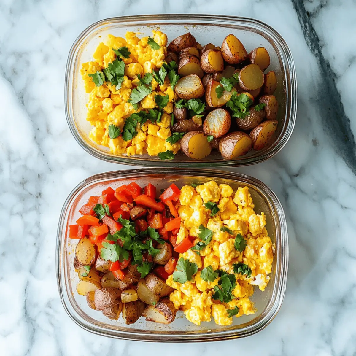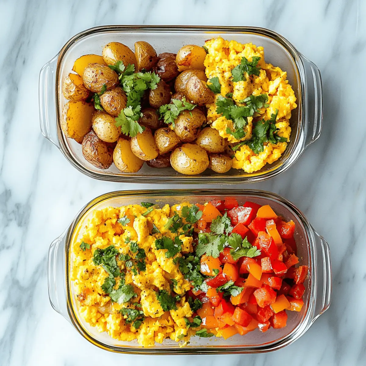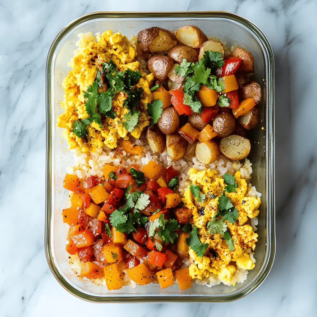 Jump to Recipe Print RecipeAs I stumbled into the kitchen one chilly morning, the aroma of roasted potatoes and savory sausage wafting through the air brought my senses to life. I had just discovered the magic of Easy Make-Ahead Breakfast Bowls, a delightful solution to those rushed mornings when time is tight but I crave something hearty and homemade. These bowls are not just a meal; they’re a canvas for creativity, ensuring a filling and nutritious start to the day tailored to every palate. With their gluten-free goodness and high-protein punch, they also make meal prep a breeze. Imagine waking up to a ready-made breakfast that’s bursting with warm, comforting flavors—it’s a game changer! What will you add to your customized creation? Why Are Make-Ahead Breakfast Bowls Amazing? Simplicity: With just a few ingredients, these bowls come together easily, saving you time each morning. Customizable: Mix and match veggies, proteins, and seasonings based on your mood or dietary needs; try a Healthy Greek Bowl for an exciting twist! Time-Saving: Prepare multiple servings in advance, making weekdays a breeze, and allowing you to enjoy a hearty meal without the hassle. Flavorful: The combination of roasted veggies, savory sausage, and fluffy eggs guarantees each bite is delicious and satisfying. Versatile: Perfect for various dietary preferences, whether you’re a meat lover or prefer a plant-based option. Swap in favorite ingredients and enjoy creativity at breakfast! Make-Ahead Breakfast Bowls Ingredients • Perfect for customizing your morning! For the Base Olive Oil – Adds fat for roasting vegetables; substitute with avocado oil for a different flavor. Potatoes (2, diced) – Basis for the bowl, providing texture and substance; use sweet potatoes for a sweeter taste. Bell Pepper (1, diced) – Provides color and sweetness; any color bell pepper works or even zucchini. Onion (1 small, diced) – Adds flavor and depth; substitute with shallots or scallions for a milder taste. For the Seasoning Paprika (1 tsp) – For warmth and flavor; smoked paprika offers a delightful smoky twist. Onion Powder (1 tsp) – Enhances the onion flavor; replace with garlic powder if desired. Salt (½ tsp) and Pepper (¼ tsp) – Essential for elevating overall flavor; adjust according to your taste. For the Protein Cooking Spray – Prevents sticking when cooking sausages; olive oil or butter can be used instead. Maple Breakfast Sausages (12) – Provides protein and savory flavor; try turkey or chicken sausage for a leaner option, or omit for a vegan version. For the Eggs Butter (2 tsp) – For scrambling eggs, adding richness; use olive oil for a dairy-free option. Eggs (6) – Main protein source; tofu scramble works great as a vegan alternative. Salt & Pepper (to taste) – For additional seasoning for eggs; adjust to your preference. For Garnish Cilantro or Parsley (optional garnish) – Brings freshness and color; any fresh herb can be a lovely substitute. Step‑by‑Step Instructions for Easy Make-Ahead Breakfast Bowls Step 1: Preheat the Oven Begin by preheating your oven to 425°F (220°C). This temperature is perfect for roasting vegetables, ensuring they become golden and crispy. While the oven heats up, gather your baking sheet and line it with parchment paper for easy cleanup. Step 2: Roast the Vegetables On the prepared baking sheet, toss together the diced potatoes, bell pepper, and onion with a generous drizzle of olive oil. Season with paprika, onion powder, salt, and pepper, making sure each piece is well coated. Spread the mixture evenly across the sheet and roast for approximately 30 minutes. Keep an eye on the veggies, looking for a lovely golden color and crisp edges for that perfect texture. Step 3: Cook the Sausages While your vegetables roast, heat a large skillet over medium heat and lightly coat it with cooking spray. Add the maple breakfast sausages and cook them for 8–10 minutes, turning occasionally until they are fully done and brown all over. Once cooked, let the sausages rest for a few minutes before slicing them into bite-sized pieces for your Make-Ahead Breakfast Bowls. Step 4: Scramble the Eggs In a bowl, whisk together the eggs and season with salt and pepper to enhance the flavor. In another skillet, melt the butter over medium-low heat. Pour in the whisked eggs, gently stirring as they cook. Scramble them until just set but still soft, ensuring a creamy texture. This step is crucial for adding richness to your breakfast bowls. Step 5: Assemble the Bowls Now it’s time to bring the Easy Make-Ahead Breakfast Bowls together! In suitable containers, divide the roasted vegetables, sliced sausages, and fluffy scrambled eggs. Create portions that are visually appealing, filling your containers to the brim. If you desire, sprinkle with fresh cilantro or parsley for an added burst of color and freshness. Step 6: Store or Serve You can serve your delicious breakfast bowls hot right away or store them in the fridge for later. Seal each container with a lid and keep them in the refrigerator for up to 4-5 days. When you’re ready to enjoy, simply reheat in the microwave for 1-2 minutes, and savor the delightful flavors of your homemade meal! Expert Tips for Make-Ahead Breakfast Bowls Cook Veggies Evenly: Ensure vegetables are cut into uniform pieces for even roasting. This prevents some from being overcooked while others remain raw. Sausage Safety: Always verify sausages are fully cooked before slicing. This ensures food safety and maximizes flavor distribution throughout your Make-Ahead Breakfast Bowls. Flavor Boost: Experiment with herbs and spices! Fresh herbs like chives or dill can enhance flavors. Don’t be afraid to customize seasonings to your taste! Batch Cooking: If meal prepping, consider making a double batch. This way, you always have healthy breakfasts at hand, making busy mornings stress-free. Proper Storage: Use airtight containers to keep your breakfast