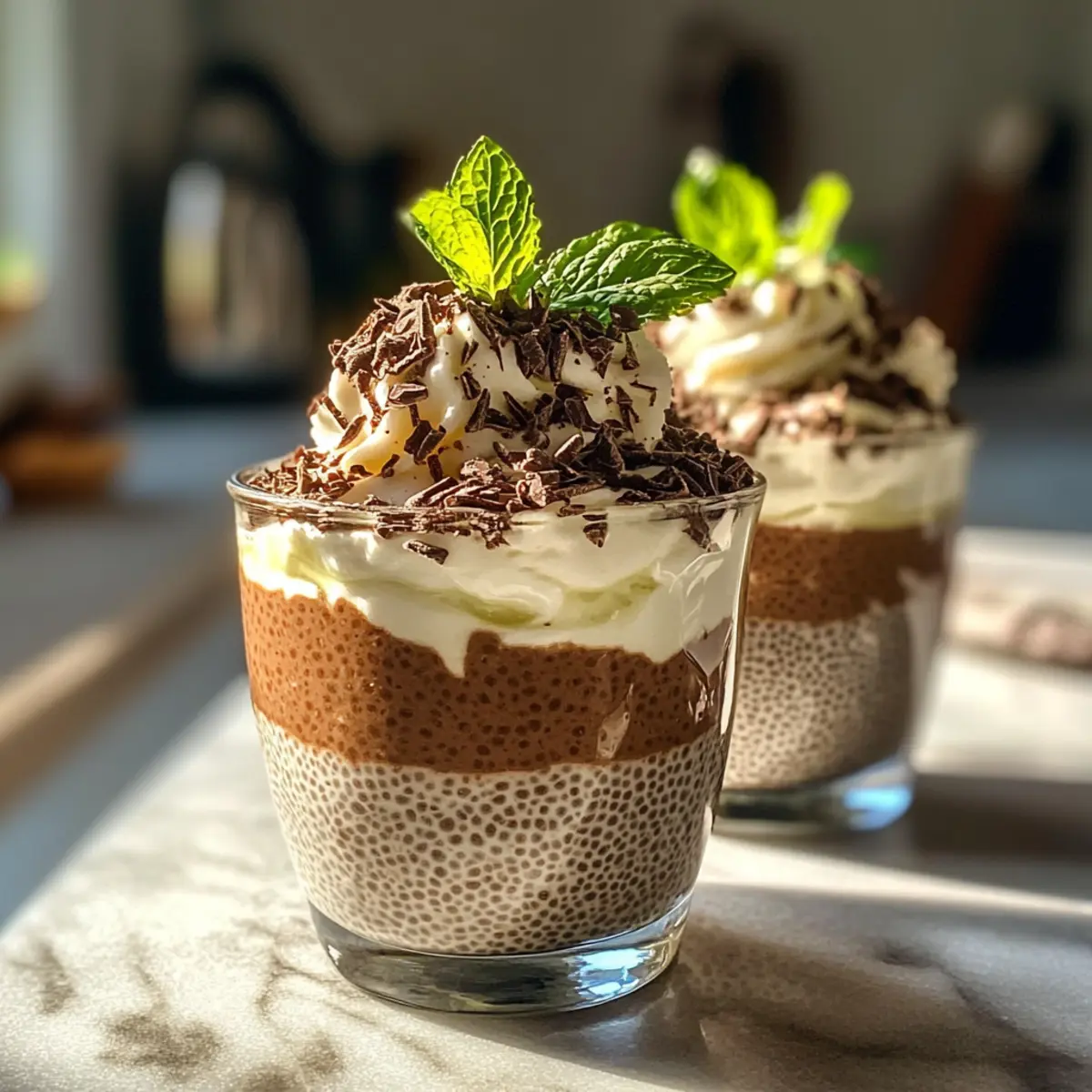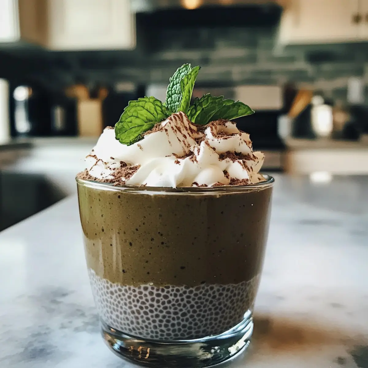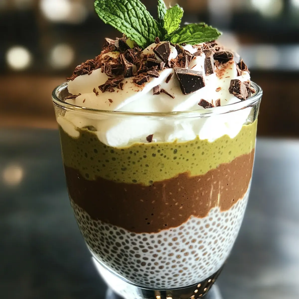 Jump to Recipe Print RecipeAs I stirred that bowl of chia seeds, I couldn’t help but be reminded of the magic that happens when two flavors become something extraordinary. Enter my Mint Chocolate Chia Pudding—a luscious, guilt-free dessert that combines the cool notes of mint with rich chocolate goodness. Perfect for those of us who want to satisfy our sweet tooth without the added sugar overload, this vegan, gluten-free treat is not just a crowd-pleaser; it’s also a delightful, no-bake option for busy days. Rich in healthy fats and fiber, this pudding is not only nourishing but also offers a refreshing twist that’s bound to impress even the pickiest eaters. Ready to discover how easy it is to whip up a dessert that feels indulgent yet wholesome? Let’s dive into the recipe! Why is Mint Chocolate Chia Pudding a Must-Try? Indulgent Yet Healthy: This pudding packs a punch of rich, chocolatey flavor paired with refreshing mint, creating a sweet treat you can savor guilt-free. No-Bake Convenience: Perfect for warm days or busy evenings, it requires minimal effort while delivering maximum taste. Nutritious Ingredients: With chia seeds, almond milk, and coconut milk, you’re treating your body right while enjoying dessert! Kid-Approved Delight: Watch your little ones devour this colorful pudding, complete with a fluffy coconut cream topping—they won’t even guess it’s healthy! Versatile Variations: Feel free to mix in nuts or top with dark chocolate drizzle for added texture and richness, or, for a completely different flavor, try a hint of raspberry extract for a unique twist! This Ingredient Chewy Chocolate dessert is another great option to explore if you’re looking for inspiration. Mint Chocolate Chia Pudding Ingredients For the Chia Pudding Base Almond Milk – Provides a creamy base for the pudding; feel free to swap with any plant-based or dairy milk. Chia Seeds – Acts as a thickening agent and adds fiber; no direct substitution recommended, but flax seeds could work in a pinch. Cocoa Powder – Adds that rich chocolate flavor; opt for unsweetened cocoa to keep it healthier, or use carob powder for a unique taste. Maple Syrup – Serves as a natural sweetener; honey can be a great alternative if you’re not keeping it vegan. For the Creamy Layer Coconut Milk – Creates a luxurious, creamy layer; using coconut cream gives the best texture. Use low-fat coconut milk for a lighter option. Mint Extract – Provides refreshing mint flavor; adjust to your taste or use fresh mint for a more natural twist. Matcha Green Tea Powder – Adds a hint of color and extra health benefits; it’s optional, but it’s a lovely touch if you want to brighten up the dish. Step‑by‑Step Instructions for Mint Chocolate Chia Pudding Step 1: Mix Base In a medium bowl, combine 1 cup of almond milk, 1/4 cup of chia seeds, 1/4 cup of unsweetened cocoa powder, and 2 tablespoons of maple syrup. Whisk the ingredients together until well combined, ensuring no clumps remain. Once mixed, cover the bowl with plastic wrap and refrigerate the mixture for at least 1 hour, or preferably overnight, until it thickens to a pudding-like consistency. Step 2: Prepare Coconut Cream While the chia pudding is thickening, prepare the creamy layer. Take 1 can of chilled coconut milk and scoop out the thick coconut cream at the top into a separate mixing bowl, discarding the excess coconut water. This rich cream will add a luxurious texture to your Mint Chocolate Chia Pudding, giving it a deliciously decadent mouthfeel. Step 3: Flavor Cream Next, enhance the coconut cream by adding 2 teaspoons of mint extract and 1 teaspoon of matcha green tea powder if using. Gently fold these ingredients together until incorporated, creating a vibrant and flavorful whipped cream mixture that adds a refreshing minty zing. This will beautifully complement the rich chocolate notes of the chia pudding. Step 4: Whip Using an electric mixer, whip the coconut cream on medium-high speed for about 3 to 5 minutes, or until it becomes light and fluffy. Stop to scrape down the sides of the bowl as needed and continue whipping until soft peaks form. The whipped coconut cream should be airy and voluminous, making it the perfect topping for your Mint Chocolate Chia Pudding. Step 5: Layer Once your chia pudding has set and your coconut cream is fluffy, it’s time to assemble your dessert. In serving cups or bowls, layer the chocolate chia pudding and the whipped coconut cream alternately. Start with a layer of chia pudding, followed by a dollop of coconut cream, repeating until the cups are full. This layering creates a stunning visual effect! Step 6: Serve You can enjoy your Mint Chocolate Chia Pudding immediately, or for a chillier treat, place the layered cups in the refrigerator for an additional 30 minutes. This allows the flavors to meld beautifully. Once ready, delight in the refreshing and indulgent combination of mint and chocolate while knowing you’re enjoying a healthy, no-bake dessert! Make Ahead Options These Mint Chocolate Chia Pudding cups are perfect for meal prep enthusiasts! You can prepare the chia pudding base up to 24 hours in advance by mixing the almond milk, chia seeds, cocoa powder, and maple syrup, then refrigerating it to thicken overnight. For the coconut cream layer, you can also whip it and store it separately in an airtight container for up to 3 days. Just keep both components refrigerated to maintain their quality. When you’re ready to serve, simply layer the chilled pudding and whipped coconut cream together; this way, you’ll enjoy a refreshing dessert that tastes just as delicious as if you made it from scratch that day! How to Store and Freeze Mint Chocolate Chia Pudding Fridge: Store your Mint Chocolate Chia Pudding in an airtight container in the refrigerator for up to 3 days. If the pudding separates, simply stir it before serving. Freezer: For longer storage, freeze the pudding in individual portion
