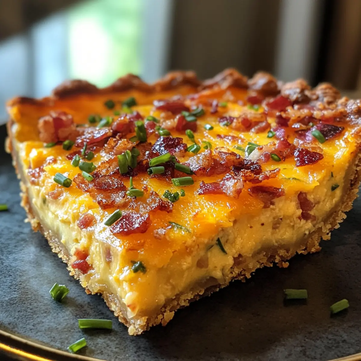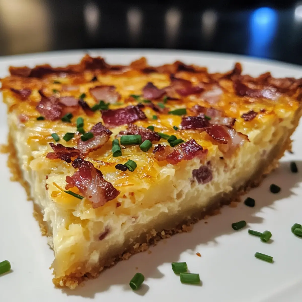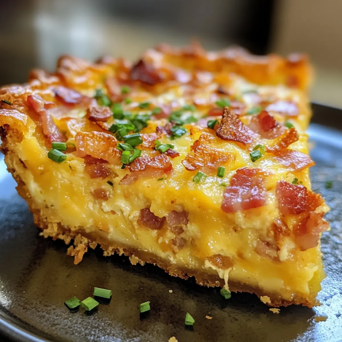 Jump to Recipe Print RecipeThe aroma of sizzling bacon and melting cheese wafting through the kitchen is a true morning delight. My favorite way to kick off a relaxing weekend is with a comforting meal that feels both special and effortless. Enter the Mouthwatering Hash Brown Crust Bacon and Cheddar Quiche—your new go-to for brunch gatherings! This quiche is not only a crowd-pleaser but also a meal prep-friendly option that allows you to savor quality time with loved ones instead of being glued to the stovetop. With its crispy hash brown crust giving way to a creamy, cheesy filling, you’ll find yourself coming back for seconds—or even thirds! Ready to whip up this delicious dish and make your brunch unforgettable? Let’s get started! Why is This Quiche So Irresistible? Comforting, the Mouthwatering Hash Brown Crust Bacon and Cheddar Quiche wraps you in warmth with each bite, making it the ultimate dish for a cozy brunch. Crispy Texture comes from the hash brown crust, creating a delightful contrast against the creamy filling. Flavor Explosion is guaranteed with the savory bacon and rich cheddar, tantalizing your taste buds. Meal Prep Heaven, this recipe is a breeze to prepare in advance, letting you enjoy leisurely mornings. Crowd Favorite, impress your guests with a dish that’s as visually appealing as it is delicious—perfect for any gathering! Mouthwatering Hash Brown Crust Ingredients • Get ready to savor this delightful quiche! For the Crust Frozen Shredded Hash Browns – Be sure they’re completely thawed and moisture is squeezed out for that irresistible crispy texture. Shredded White Cheddar – Provides a creamy, cheesy flavor; feel free to swap it with Monterey Jack or Gouda for a twist. Salt – Essential for enhancing the flavors of the dish. Black Pepper – Adds a hint of warmth; adjust according to your spice preference. For the Filling Chives (freshly chopped) – These bright green gems are the perfect garnish; you can substitute with green onions if you prefer. Heavy Cream or Whole Milk – Creates that delightful custard-like filling, but half-and-half can also be used for an even richer taste. Onion (finely diced) – Infuses depth into the filling; remember to sauté them until caramelized for optimal flavor. Large Eggs – The binding agent in this quiche; whisk until light and fluffy for the best texture. Unsalted Butter (room temperature) – Ideal for cooking onions, adding extra richness to the quiche. Cooked and Crumbled Bacon – This savory hero delivers smoky goodness; for a lighter option, turkey bacon works wonderfully too. Embrace the culinary magic of this Mouthwatering Hash Brown Crust Bacon and Cheddar Quiche as you gather these fantastic ingredients! Step‑by‑Step Instructions for Mouthwatering Hash Brown Crust Bacon and Cheddar Quiche Step 1: Prepare the Hash Brown Crust Start by squeezing all moisture from the thawed shredded hash browns—this is crucial for that crispy texture. In a bowl, mix the dried hash browns with shredded white cheddar, salt, and black pepper. Press this mixture into a greased 9-inch springform pan to form a crust. Pop it in the freezer for 1 hour to firm up. Step 2: Pre-Bake the Crust Preheat your oven to 425°F (220°C). Remove the crust from the freezer and bake it for 15 minutes until it turns golden and slightly crispy. Keep an eye out for the edges; they should be beautifully browned. Once done, take it out of the oven and let it cool for a few minutes before moving on. Step 3: Caramelize the Onions While your crust is cooling, melt 1 tablespoon of unsalted butter in a skillet over medium heat. Add the finely diced onion and sauté for about 10-15 minutes, stirring occasionally until they turn lightly golden. This step will bring out that rich, savory flavor perfect for the filling of your Mouthwatering Hash Brown Crust Bacon and Cheddar Quiche. Step 4: Prepare the Filling In a mixing bowl, whisk together 6 large eggs and 1 cup of heavy cream or whole milk until frothy. Then fold in the caramelized onions, crumbled bacon, and an additional 1 cup of shredded white cheddar. Season the filling with salt and black pepper to taste. This delicious mixture will create a creamy, rich filling for your quiche. Step 5: Combine and Bake Lower the oven temperature to 375°F (190°C). Carefully pour the filling into the pre-baked hash brown crust, spreading it evenly. Bake the quiche in the preheated oven for 25-30 minutes until the filling has set and is only slightly jiggly in the center. A nice golden brown top is an excellent visual cue that it’s almost ready. Step 6: Final Browning To achieve that perfect crispy crust, remove the quiche from the oven after the initial baking time and gently loosen the edges from the pan. Return it to the oven for an additional 10-15 minutes, allowing the top to brown beautifully. Keep an eye on it to avoid over-browning—a rich golden hue is what you want! Step 7: Cool & Serve Once the Mouthwatering Hash Brown Crust Bacon and Cheddar Quiche is perfectly baked, let it rest for 10 minutes at room temperature. This allows the filling to firm up for neat slices. When ready, slice, garnish with freshly chopped chives, and serve warm. Your comforting brunch dish is now complete! Mouthwatering Hash Brown Crust Variations Feel free to play with flavors and ingredients to create your perfect quiche experience! Vegetarian Option: Substitute bacon with sautéed vegetables like bell peppers and zucchini for a vibrant twist. Did you crave a colorful play of veggies? This veggie-packed alternative brings freshness and nutrition without sacrificing flavor! Cheese Variety: Experiment with cheeses such as feta or goat cheese for a uniquely tangy richness instead of cheddar. Feta adds a crumbly texture and bright flavor, while goat cheese makes for a creamy, bold filling that’s deliciously different. Spinach Delight: Toss in a handful of fresh spinach into the filling for added nutrition an