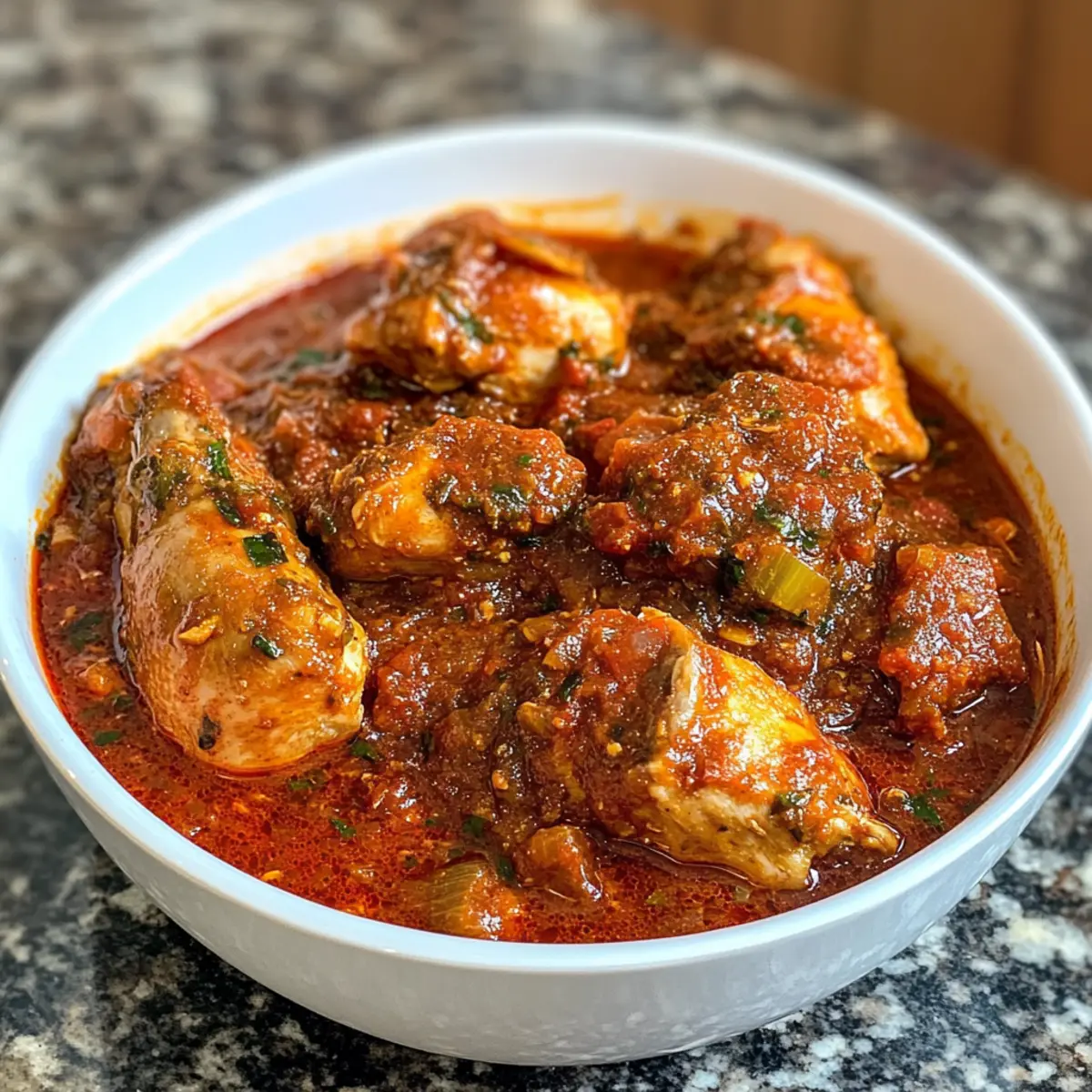 Jump to Recipe Print RecipeAs I stood in my kitchen, the tantalizing aroma of spices danced through the air, transporting me straight to the heart of West Africa. This isn’t just any dish; it’s Nigerian Chicken Stew, a beloved comfort food that brings families together over hearty, spicy goodness. With tender chicken simmered in a rich tomato-and-pepper sauce, every spoonful captures the vibrant flavors of traditional Nigerian cuisine, making it a perfect choice for a weeknight dinner or a lively gathering. What I adore most is how quickly it comes together, effortlessly transforming an ordinary evening into something special. Paired beautifully with rice or sweet plantains, this stew beckons you to indulge in a meal that warms the soul. Curious to discover how to bring this delightful dish to your table? Let’s dive in! Why is Nigerian Chicken Stew a must-try? Comforting Flavors: This hearty stew delivers a spectacular blend of spices and a rich tomato base that warms you to your core. Easy to Make: With straightforward steps, you can whip up a delicious family meal without spending all day in the kitchen. Versatile Pairings: Serve it with fluffy white rice, fried sweet plantains, or even baked yams for a delectable balance of flavors. Crowd-Pleasing Delight: Whether it’s a cozy dinner or a larger gathering, this dish is sure to impress with its bold and aromatic profile. Explore more comforting recipes like the White Chicken Lasagna or the zesty Thai Chicken Salad for your next meal! Nigerian Chicken Stew Ingredients For the Stew Chicken – Main protein source; boneless or bone-in works, just adjust cooking time for boneless. Salt – Enhances the natural flavors of chicken; adjust to taste for the best results. Black Pepper – Adds subtle heat and depth to the dish. Paprika – Contributes warmth and bright color to the stew. Curry Powder – Introduces aromatic flavors typically found in Nigerian cuisine. Thyme – Offers earthy notes that complement the rich flavors. Chopped Onion – Adds sweetness and color; can substitute with shallots for a milder taste. Vegetable Oil – Used for searing the chicken; replace with olive oil or coconut oil if desired. Roma Tomatoes – Provides the sauce base; fresh is best but canned tomatoes can be used in a pinch. Red Bell Pepper – Adds sweetness and vibrant color; alternatives include yellow or orange bell peppers. Scotch Bonnet Pepper – Imparts heat; use habanero as a substitute or omit for less spice. Tomato Paste – Deepens flavor and is essential for the stew’s desired thickness. Garlic Powder – Enhances flavor; fresh garlic can make a great improvement too. Ginger Powder – Adds warmth; fresh ginger is a good substitute if available. Bouillon Cube – Provides umami flavor; can substitute with vegetable or chicken broth for added moisture. Elevate your culinary skills and bring home the heart of West Africa with this fantastic Nigerian Chicken Stew! Step‑by‑Step Instructions for Nigerian Chicken Stew Step 1: Marinate the Chicken In a large bowl, combine the chicken pieces with salt, black pepper, paprika, curry powder, thyme, and chopped onion. Ensure each piece is well-coated. Let the chicken marinate for at least 30 minutes to allow the flavors to penetrate deeply. This marination step is crucial for achieving a depth of flavor in your Nigerian Chicken Stew. Step 2: Sear the Chicken Heat 3 tablespoons of vegetable oil in a large skillet over medium-high heat. Once the oil is shimmering, carefully add the marinated chicken pieces to the skillet. Sear for about 5-7 minutes, turning occasionally until the chicken is beautifully golden brown on all sides. Once browned, remove the chicken and set it aside on a plate. Step 3: Prepare the Sauce In a blender, combine the Roma tomatoes, red bell pepper, and scotch bonnet pepper. Blend until you achieve a smooth puree. Set the mixture aside. This vibrant sauce will form the heart of your Nigerian Chicken Stew, packing it with freshness and spice that elevates the dish. Step 4: Fry the Tomato Paste Using the same skillet where you seared the chicken, add a little more oil if needed and reduce the heat to medium. Add the tomato paste and fry for about 2 minutes, stirring frequently. This step caramelizes the tomato paste, enhancing its flavor and deepening the richness of your sauce. Step 5: Combine Ingredients Pour the blended tomato and pepper mixture into the skillet with the fried tomato paste. Cook this combination over medium heat for about 10 minutes, stirring occasionally. As it cooks, the sauce will thicken slightly and reduce in volume, creating a robust base for your Nigerian Chicken Stew. Step 6: Flavor the Sauce Add in the garlic powder, ginger powder, and crumbled bouillon cube, along with a pinch of salt. Stir everything together to ensure it’s well incorporated. Allow the mixture to cook for an additional 5 minutes, at which point the aroma will fill your kitchen, welcoming you to the delicious flavors of traditional Nigerian cuisine. Step 7: Simmer the Stew Return the seared chicken to the pan, ensuring it’s nestled in the sauce. Reduce the heat to low, cover the skillet, and let it simmer for 25-30 minutes. This slow-cooking process allows the chicken to become tender and absorb the rich flavors of the sauce. Stir occasionally and check that the sauce remains at a gentle bubble. Step 8: Garnish and Serve Once the chicken is tender and the sauce has thickened to your liking, remove the skillet from the heat. Optionally, sprinkle with freshly chopped parsley or cilantro for a touch of color. Serve your Nigerian Chicken Stew piping hot over fluffy rice, fried sweet plantains, or boiled yams for a truly comforting meal. Make Ahead Options Nigerian Chicken Stew is a fantastic choice for meal prep, saving you valuable time during busy weeknights! To prep ahead, marinate the chicken up to 24 hours in advance; this ensures that the flavors develop beautifully. 