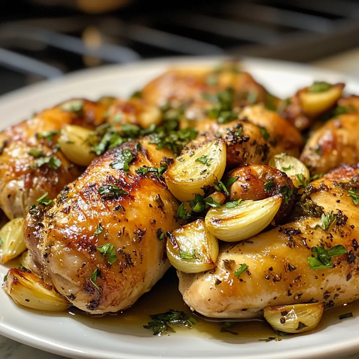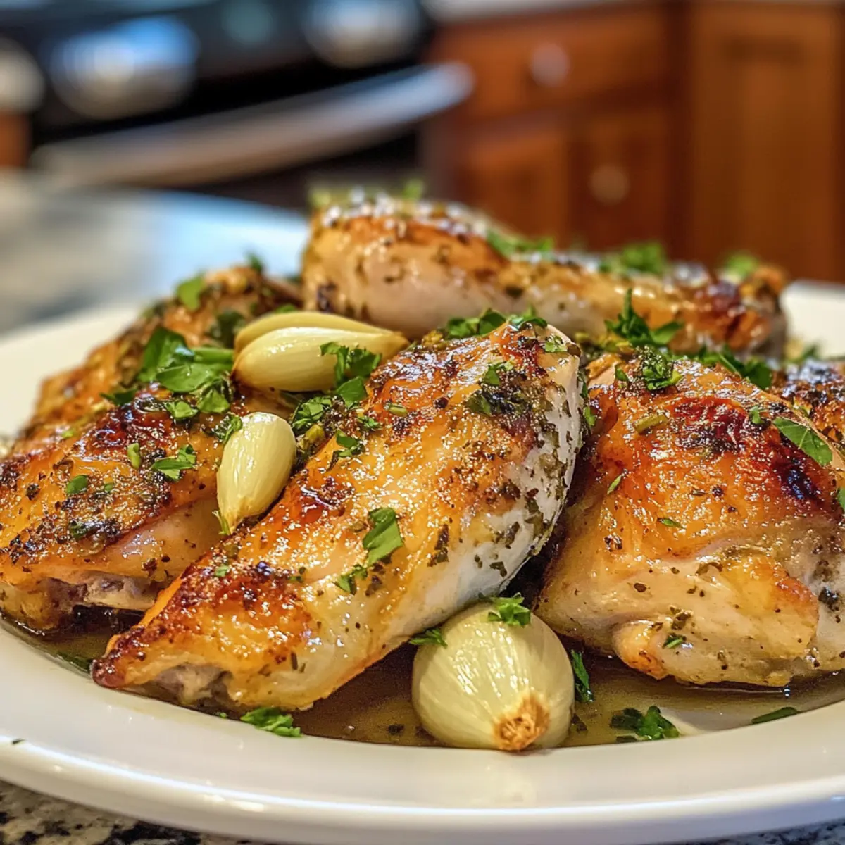 Jump to Recipe Print RecipeAs the oven hums softly, the rich aroma of garlic and fresh herbs begins to weave its way through my kitchen, instantly transporting me to a quaint French bistro. That’s the magic of this Easy Oven-Roasted French Garlic Chicken! Not only does it combine succulent, juicy chicken with a symphony of flavors, but the best part is that it can be made with minimal effort and time—perfect for any home chef. With just a handful of ingredients, you’ll create a meal that feels impressively elegant without the fuss, making it a fantastic crowd-pleaser. Whether you’re entertaining guests or simply treating yourself to something special, I can’t wait for you to experience this comforting dish. So, are you ready to elevate your dinner game with this delightful recipe? Why is this chicken recipe a must-try? Effortless Cooking: With minimal prep and only one dish needed, you’ll spend less time cleaning and more time enjoying your meal. Aromatic Bliss: The fragrance of roasting garlic and herbs fills your kitchen, creating a welcoming atmosphere that’s hard to resist. Flavor Explosion: The combination of juicy chicken, aromatic garlic, and fresh herbs creates a complex flavor profile that’ll impress anyone at your dinner table. Versatile Pairings: Serve alongside mashed potatoes, roasted veggies, or pasta for endless meal possibilities. For a refreshing side, try it with a vibrant Thai Chicken Salad. Crowd-Pleaser: Perfect for any occasion, this dish is sure to become a favorite among friends and family—even picky eaters! Oven-Roasted French Garlic Chicken Ingredients For the Chicken • 2 1/2 to 3 lbs bone-in, skin-on chicken – Provides rich flavor and moisture; can substitute with chicken breasts, adjusting cooking time as needed. • Sea salt & ground black pepper – Enhances overall flavor; feel free to adjust to your personal taste. For the Aromatics • 3 medium shallots, thinly sliced – Adds a mild sweetness to the dish; if unavailable, sweet onions can be a great substitute. • 20 to 25 whole garlic cloves – Imparts a robust garlic flavor that mellows beautifully with cooking; more cloves yield a richer taste. • Small bunch fresh thyme – Offers aromatic contrast; for convenience, dried thyme can be used at a ratio of 1 tsp for each tablespoon of fresh. • 3 to 4 sprigs fresh rosemary – Adds an earthy note; can be substituted with dried rosemary at a ratio of 1 tsp for every 3 sprigs fresh. For Cooking • 1/4 cup avocado or olive oil – Provides fat for moisture and flavor; avocado oil has a higher smoke point, but vegetable oil works too. • 1/2 cup chicken broth – Adds moisture and depth; for a lighter flavor, vegetable broth is a good alternative. • 1/2 cup white wine – Enhances the flavor complexity; as a substitute, try a mix of lemon juice and chicken broth (1 lemon’s juice + enough broth to make 1/2 cup). This Easy Oven-Roasted French Garlic Chicken recipe is designed to bring your culinary skills to the forefront, inviting you to create a meal that’s not only satisfying but also aromatic and rich in flavors. Step‑by‑Step Instructions for Easy Oven-Roasted French Garlic Chicken Step 1: Preheat the Oven Begin by preheating your oven to 400°F (204°C). This step is crucial as it ensures that the chicken cooks evenly and achieves that delicious golden-brown finish. While the oven is warming up, you can gather your ingredients and prepare your casserole dish for a smooth cooking experience. Step 2: Prepare Your Casserole Dish Line a large casserole dish with Reynolds Wrap® Heavy Duty Foil. This makes for easy cleanup later, especially since the garlic and juices will create a delightful mess! Spread the foil across the bottom and up the sides, making sure it fits snugly. This simple step will help capture all the incredible flavors while you roast the chicken. Step 3: Layer Aromatics Now, let’s build the foundation of flavor for your Easy Oven-Roasted French Garlic Chicken! Spread the thinly sliced shallots and half of the garlic cloves across the bottom of the prepared dish. This aromatic layer is enhanced by sprinkling fresh thyme and rosemary on top, creating a fragrant base that will meld beautifully with the chicken as it cooks. Step 4: Season the Chicken With the aromatics in place, it’s time to arrange the chicken on top. Take your bone-in, skin-on chicken pieces and lay them over the seasoned shallots and garlic. Drizzle with avocado or olive oil, and don’t skimp on the sea salt and ground black pepper! Finally, scatter the remaining garlic cloves and a few extra sprigs of thyme on top for maximum flavor. Step 5: Add Liquid Pour the chicken broth and white wine around the edges of the dish, avoiding the chicken itself; this helps keep the seasonings intact. The liquid will create a steaming effect that keeps the chicken moist while infusing it with rich flavors. Take a moment to appreciate the colorful arrangement of your Easy Oven-Roasted French Garlic Chicken! Step 6: Roast the Chicken Place the casserole dish in the preheated oven and roast uncovered for approximately 1 hour. You’ll know your chicken is ready when the skin turns a beautiful golden brown and a meat thermometer reads 165°F (74°C) in the thickest part of the chicken. If you crave extra crispiness, switch to broil mode for the last 5-7 minutes to achieve that perfect crunch. Step 7: Serve and Enjoy Once done, take your Easy Oven-Roasted French Garlic Chicken out of the oven, and let it rest for a few minutes. Drizzle the savory pan sauce over the chicken to enhance every bite, and serve it alongside your favorite side dishes such as mashed potatoes or roasted veggies. Enjoy the incredible aroma and flavors that fill your space! Oven-Roasted French Garlic Chicken Variations Feel free to customize your dish with these delightful twists and swaps that will tickle your taste buds! Lighter Chicken: Substitute with bone-in, skin-on chicken