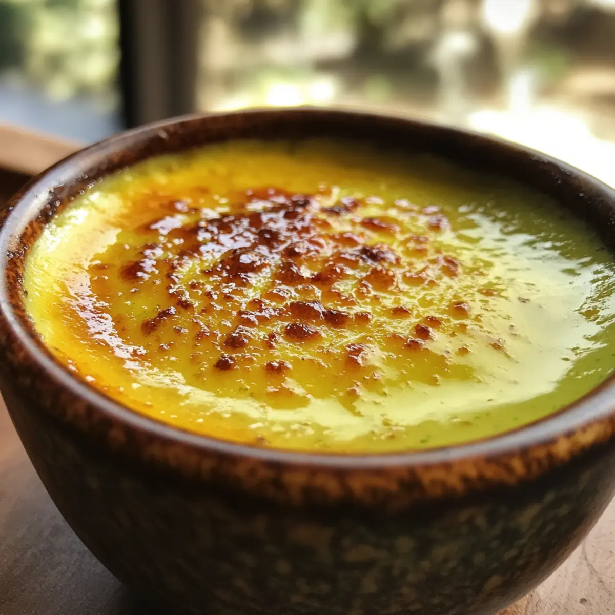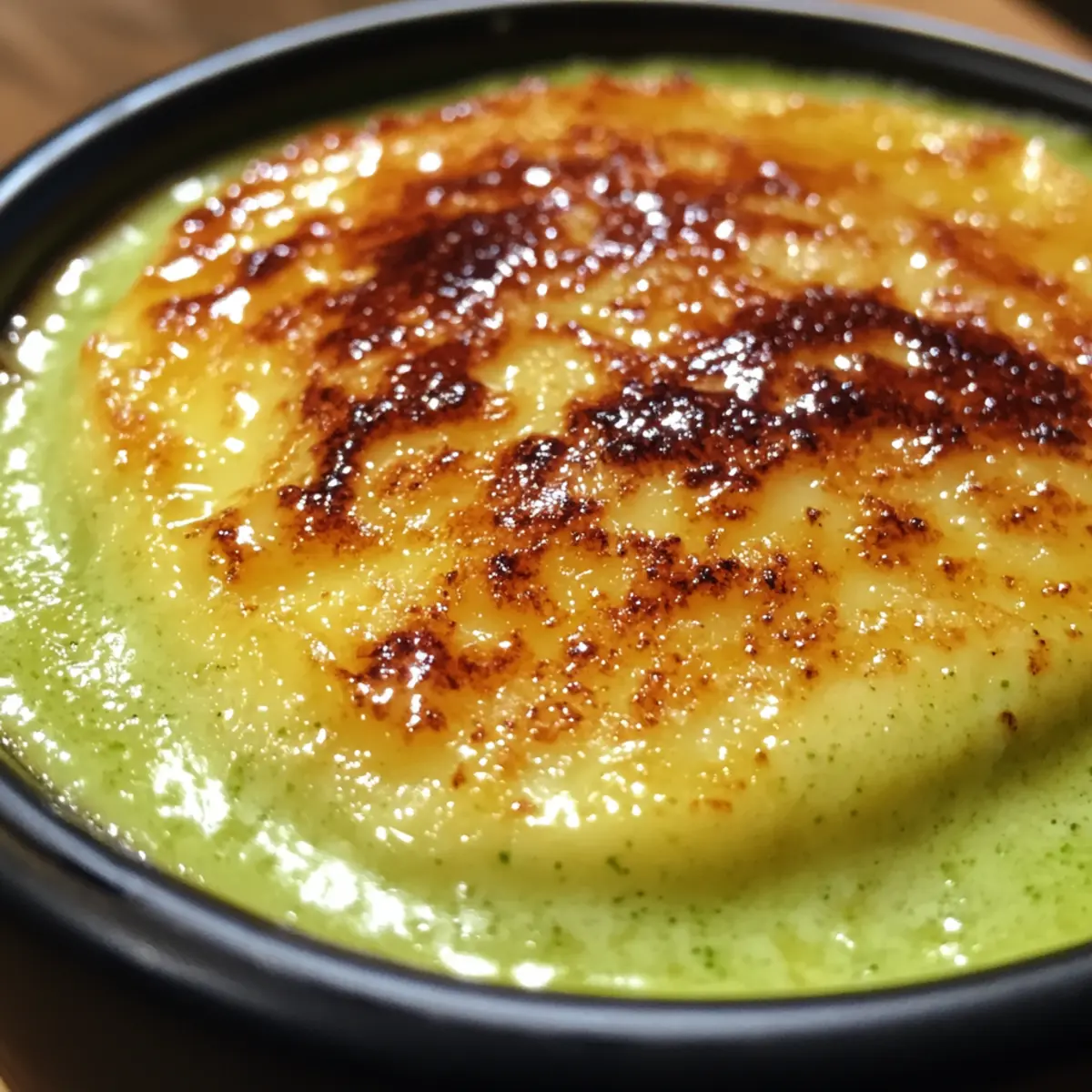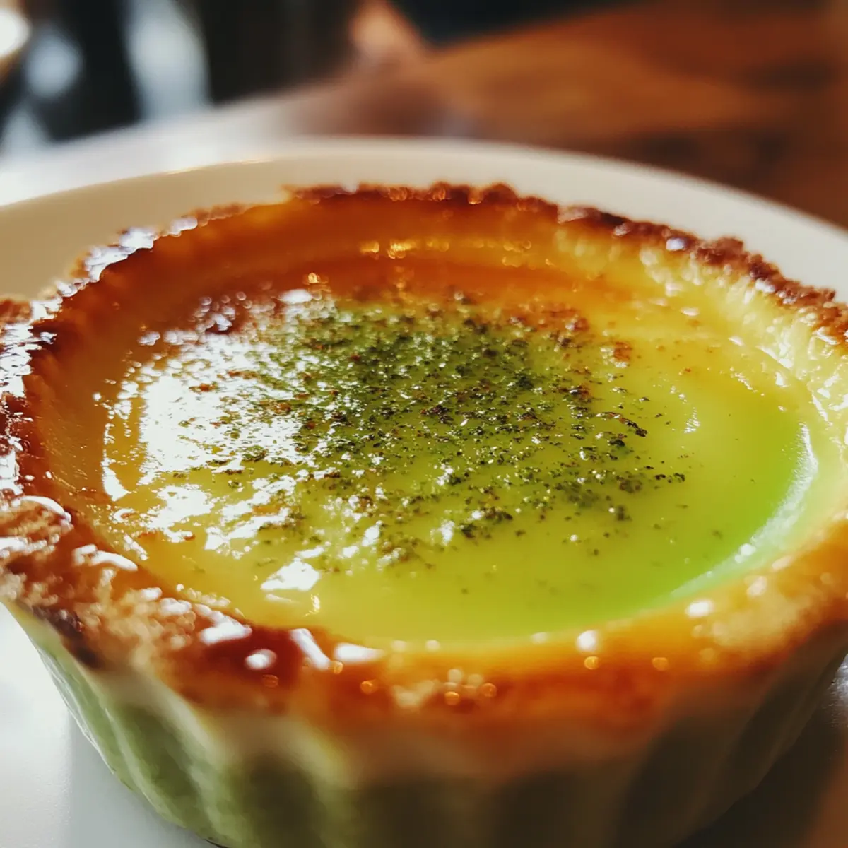 Jump to Recipe Print RecipeAs I took my first spoonful of this Pandan Creme Brulee, the softness of the custard and that distinct sweet aroma instantly transported me to a sun-drenched market in Southeast Asia. This dessert is not just a culinary treat; it’s a delightful blend of French technique and tropical flair. With just five simple ingredients, you can whip up a luscious, gluten-free indulgence that’s sure to impress your guests! Whether you’re hosting a dinner party or simply looking to add a unique twist to your dessert repertoire, this easy recipe packs a punch without the fuss. The smooth custard, tinted a vibrant green, is topped with a satisfyingly crisp caramel layer that shatters at the first tap. Are you ready to elevate your dessert game and experience a taste of Southeast Asia with this delicious creation? Why is Pandan Creme Brulee Irresistible? Unique Flavor: Pandan brings a sweet, aromatic twist that sets this dessert apart from the traditional. Simplicity: The recipe requires only five ingredients making it accessible for cooks of all levels. Quick Preparation: Ready in just 20 minutes, this treat is perfect for last-minute cravings or impressing dinner guests. Gluten-Free Indulgence: Enjoy guilt-free without compromising on taste—ideal for those with dietary restrictions. Versatile Presentation: Serve in elegant ramekins, garnished with fresh fruit for a stunning visual feast. With flavors that dance on the palate, your guests will rave about this fusion of French and Southeast Asian cuisine. Explore even more creative ideas with our tropical dessert variations. Pandan Creme Brulee Ingredients For the Custard • Heavy Whipping Cream – Adds a rich, creamy texture; for a lighter option, substitute with more whole milk. • Whole Milk – Balances flavor and texture; you can use dairy-free milk for a vegan alternative. • Pandan Leaves – Provides the sweet aroma and beautiful green color; fresh is ideal, but pandan extract works in a pinch. • Egg Yolks – Ensures the custard’s silky smoothness; avoid whole eggs to keep the texture perfect. • Granulated Sugar (for custard) – Sweetens the mixture and helps with caramelization; opt for fine sugar for better melting results. For the Topping • Granulated Sugar (for topping) – Creates the delightful caramel crust; a light dusting ensures even caramelization without burning. With these simple yet essential ingredients, you’ll be well on your way to creating a memorable Pandan Creme Brulee that showcases the best of both French and Southeast Asian culinary traditions! Step‑by‑Step Instructions for Pandan Creme Brulee Step 1: Preheat the Oven Begin by preheating your oven to 300℉ (150℃). This is crucial for baking the Pandan Creme Brulee to ensure an even cooking temperature. While the oven warms up, gather your ramekins ready for the custard mixture. Ensuring the oven is at the right temperature will result in a beautifully set custard. Step 2: Prepare the Egg Mixture In a mixing bowl, whisk together the egg yolks and granulated sugar until you achieve a smooth and pale mixture. This step only takes about 2 to 3 minutes of vigorous whisking. Set the bowl aside while you prepare the pandan infusion. The sugar should be well incorporated, aiding in the sweetening of the custard. Step 3: Extract Pandan Juice Take the pandan leaves and chop them into small pieces, then place them in a blender with the whole milk. Blend this mixture until it’s well combined, about 1-2 minutes. Next, strain the mixture through a fine sieve or cheesecloth into a bowl to extract the vibrant green pandan juice, which will impart its unique flavor to the creme brulee. Step 4: Heat the Cream In a medium saucepan, combine the heavy whipping cream and the strained pandan juice. Heat the mixture over medium heat until it just begins to simmer, which usually takes about 5-7 minutes. Stir it frequently to prevent burning, and once you see small bubbles forming, remove the pan from the heat to cool slightly before combining with the egg mixture. Step 5: Temper the Eggs Gradually pour the warm cream mixture into the egg yolk-sugar blend while whisking constantly. This step is key to tempering the eggs, preventing them from curdling. Aim for a smooth, silky mixture without any scrambled egg bits. Once fully combined, strain the mix through a sieve into a measuring cup to ensure a velvety texture for your Pandan Creme Brulee. Step 6: Fill Ramekins Carefully distribute the custard mixture evenly among your prepared ramekins, filling each about three-quarters full. Place the ramekins into a deep baking pan. This step allows for a bain-marie, helping to cook the custard gently for optimal creaminess. Step 7: Bake the Custards Pour boiling water into the baking pan around the ramekins until it reaches halfway up their sides. Bake in the preheated oven for 30-40 minutes or until the edges are set but the centers still have a slight wobble. You’ll know they’re ready when a gentle jiggle remains in the center for your delightful Pandan Creme Brulee. Step 8: Cool and Chill Once baked, remove the ramekins from the water bath and allow them to cool at room temperature for about 30 minutes. Afterward, refrigerate them for at least 2 hours or until completely chilled. This cooling period enhances the flavors and sets the custard to a perfect creamy consistency. Step 9: Caramelize the Sugar Just before serving, sprinkle a thin layer of granulated sugar evenly over the top of each custard. Using a kitchen torch or broiler, caramelize the sugar until it turns a golden brown and forms a crispy crust, watching closely to prevent burning. The contrast of the crunchy top and silky custard will elevate your Pandan Creme Brulee to a luxurious dessert. Make Ahead Options These Pandan Creme Brulee are perfect for busy weeknights and meal prep enthusiasts! You can prepare the custard up to 3 days in advance—just bake it, cool it completely, a