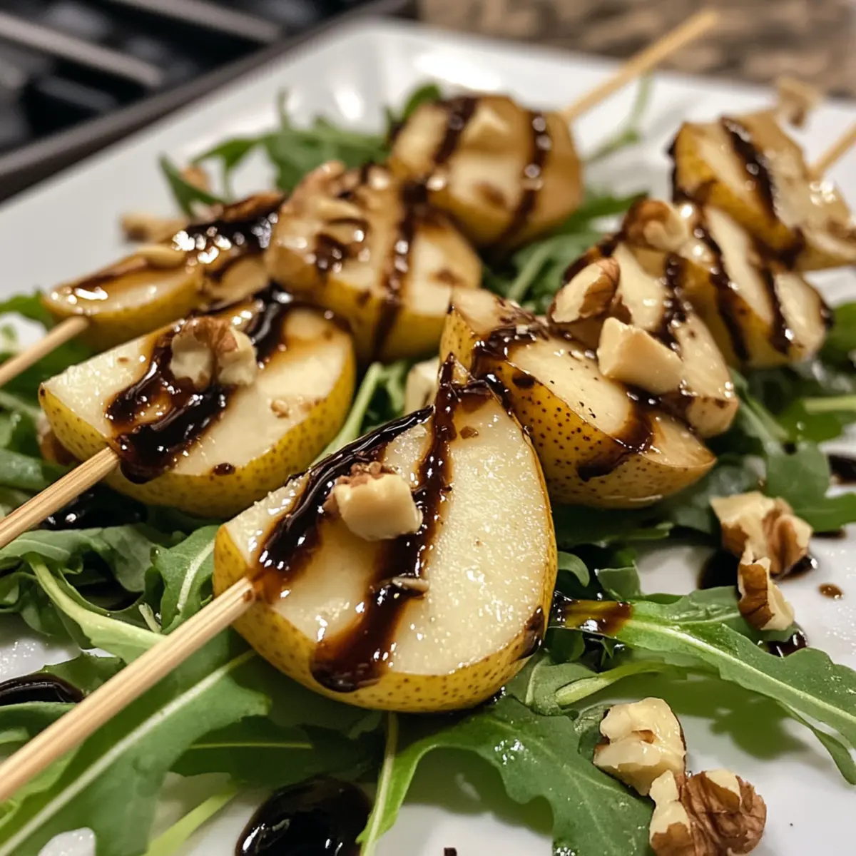 Jump to Recipe Print RecipeAs I stood in my kitchen, the sweet scent of ripe pears wafting through the air, I suddenly realized that appetizers don’t have to be difficult to impress. Enter my Pear & Brie Cheese Salad Skewers, a stunning and easy-to-make treat that combines the juicy fruitiness of pears with the creamy richness of brie, crunchy walnuts, and a peppery kick from fresh arugula. In just 20 minutes, you can create an elegant dish that’s not only gluten-free and vegetarian but also a guaranteed crowd-pleaser at any gathering. These skewers are ideal for those of us who crave homemade goodness without spending hours in the kitchen. Ready to see how a few simple ingredients can elevate your appetizer game? Why try Pear & Brie Skewers? Simplicity at Its Best: With just a handful of fresh ingredients, these skewers are incredibly easy to whip up in just 20 minutes. Gourmet Flair: Impress your guests with a dish that looks and tastes gourmet without the fuss! Flavor Harmony: The sweet pears, creamy brie, and crunchy walnuts create a delightful balance, making every bite a burst of flavor. Versatile Choice: Feel free to customize with your favorite nuts or substitute cheeses for a unique twist—try a Baked Brie Puffed or even a Thai Chicken Salad for more options! Perfect for Any Occasion: Whether it’s a holiday gathering or a casual get-together, these skewers will be the star of the appetizer table. Enjoy the delightful balance of flavors as you savor every bite! Pear & Brie Cheese Salad Skewers Ingredients • Perfect for Easy Entertaining! For the Skewers Pears – Sweet and juicy; ripe Bosc or Bartlett varieties work best. Brie Cheese – Creamy and rich; keeping the rind on makes handling easier, but feel free to substitute with blue cheese for a bolder flavor. Baby Arugula – Delivers a peppery taste and fresh crunch; swap with baby spinach for a milder profile. Walnuts – Add a crunchy texture; can be exchanged for pecans or omitted entirely for a nut-free version. For the Drizzle Balsamic Glaze – Provides a sweet and tangy finish; alternatively, use balsamic vinegar for a lighter option. Step‑by‑Step Instructions for Pear & Brie Cheese Salad Skewers Step 1: Prepare Pears Begin by washing two ripe Bosc or Bartlett pears. Slice them into quarters, discarding the seeds and stems, then cut each quarter into 1/2-inch cubes. You want the cubes to be uniform for even assembly. Set the prepared pear cubes aside on a plate, keeping their natural sweetness intact. Step 2: Slice Brie Next, take a wheel of creamy brie cheese and place it on a cutting board. Using a sharp knife, cut the brie into 1/2-inch cubes, maintaining similar size to the pear pieces. Leaving the rind on helps keep the brie intact and simplifies the assembling process, so don’t be shy to keep the rind for added flavor! Step 3: Assemble Skewers Grab some 4-inch wooden skewers or toothpicks for assembling the Pear & Brie Cheese Salad Skewers. Start by threading a cube of pear onto the skewer, followed by a folded bundle of baby arugula. Then, add a cube of brie. Repeat this process until all the ingredients are used up, creating a delightful alternating pattern. Step 4: Add Walnuts For an extra layer of crunch, take a few walnut pieces and press them onto the brie cubes. This not only adds texture but also enhances the flavor profile of your skewers. Ensure that the walnuts adhere well to create that enticing, layered look for each skewer. Step 5: Finish with Balsamic Glaze Once the Pear & Brie Cheese Salad Skewers are fully assembled, drizzle a generous amount of balsamic glaze over the top. This sweet and tangy dressing complements the flavors beautifully. You can also set aside some extra glaze for dipping when serving, enhancing the experience with every bite. Make Ahead Options These Pear & Brie Cheese Salad Skewers are perfect for meal prep, allowing you to enjoy homemade elegance with minimal last-minute effort. You can prepare the pear and brie cubes up to 24 hours in advance, storing them in an airtight container in the refrigerator to keep them fresh. Additionally, assembling the skewers without the walnuts and balsamic glaze can be done a few hours before serving—just wrap them tightly to prevent browning. When you’re ready to serve, simply add the walnut pieces and drizzle with the balsamic glaze for that fresh finish. This way, your skewers will remain just as delicious while saving you precious time, making your gatherings stress-free! Pear & Brie Cheese Salad Skewers Variations Feel free to play with different ingredients and flavor combinations to make these skewers uniquely yours! Apple Swap: Replace pears with crisp apples for a tangier twist, adding a fresh crunch that pairs beautifully with brie. Nut-Free Option: Omit walnuts entirely or swap for sunflower seeds to keep the texture without the nuts. Cheese Variety: Use camembert for a bolder, creamier flavor or sharp cheddar for an unexpected, inviting taste sensation. Herb-Infused: Sprinkle fresh herbs like basil or mint on the skewers for a delightful aroma and flavor burst that elevates every bite. Heat Things Up: Add a slice of jalapeño or a sprinkle of red pepper flakes for a spicy kick that perfectly contrasts the creamy brie. Warm Melty Version: Broil the assembled skewers for a couple of minutes until the cheese is melty and bubbly for a cozy appetizer experience. Sweet Drizzle: Instead of balsamic glaze, drizzle with honey or maple syrup to create a rich, sweet contrast to the savory brie. As you explore these variations, consider trying out other delicious recipes like Antipasto Cream Cheese for another fantastic appetizer! With endless options, the possibilities are truly delicious! What to Serve with Pear & Brie Cheese Salad Skewers These elegant skewers are perfect for inspiring a delightful meal experience that extends beyond just appetizers. Crispy Breadsticks: Their crunchiness provides a satisfying contrast to