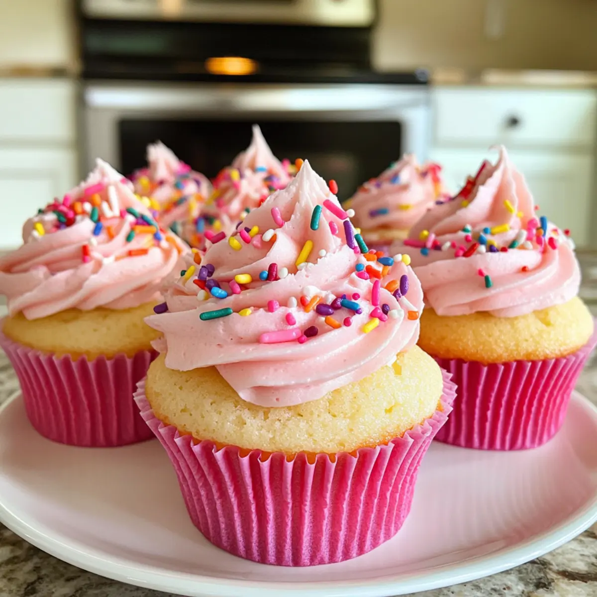 Jump to Recipe Print RecipeAs I stood in my kitchen surrounded by the vibrant colors of sprinkles and the tempting aroma of vanilla, I stumbled upon a delightful idea: Pink Champagne Cupcakes. A beautiful marriage of celebration and sweetness, these treats are not only visually stunning but also moist and packed with the thrill of real champagne. They’re perfect for adding a touch of elegance to any gathering, be it Valentine’s Day or a New Year’s Eve bash. Plus, the rich buttercream frosting takes these cupcakes to new heights of indulgence. Whether you are a seasoned home-chef or simply looking to dazzle your loved ones with a special dessert, these Pink Champagne Cupcakes are sure to steal the show. Ready to whisk up some magic in your own kitchen? Why are Pink Champagne Cupcakes irresistible? Celebrate in style: These cupcakes bring a whimsical touch to any occasion, making them perfect for parties and special gatherings. Moist texture guaranteed: Infused with real champagne, they create a delightful bite that dances on your palate. Sweet buttercream topping: The rich frosting elevates each cupcake to an indulgent dessert, perfect for satisfying your sweet tooth. Versatile options: Feel free to get creative with flavors by substituting champagne for sparkling juice, catering to all preferences! Quick and easy: With simple steps for preparation and decoration, these cupcakes won’t take hours of labor, leaving you plenty of time to enjoy the festivities. With tips on making these treats in advance, you can ensure that your celebration is sweet and stress-free! Pink Champagne Cupcake Ingredients • For the Cupcakes White Sugar – Provides sweetness and helps create a fluffy texture; brown sugar can add a richer flavor. Butter (12 tablespoons, softened) – Adds richness and moisture to the cupcakes; opt for unsalted butter for better salt control. Large Eggs (2) – Acts as a binder and provides structure; use room temperature eggs for optimal mixing. Pure Vanilla Extract (1 teaspoon) – Enhances flavor; consider almond extract for a unique twist. Milk (2 tablespoons) – Adds moisture to the batter; try dairy-free milk for a non-dairy option. All-Purpose Flour (2 ¾ cups) – Main structure component; substitute with a gluten-free flour blend if needed. Salt (¾ teaspoon) – Balances sweetness; omit if you’re using salted butter. Baking Powder (2 teaspoons) – The leavening agent that helps the cupcakes rise. Champagne (1 cup) – Provides flavor and moisture; Prosecco or sparkling apple juice can replace it for a non-alcoholic version. Pink Food Coloring or Icing Gel – Colors the batter; adjust to achieve your desired hue. • For the Frosting Butter (1 cup, softened) – Adds creaminess to the frosting; similar to above. Confectioners’ Sugar (4 cups) – Sweetens the frosting and gives it a smooth texture. Champagne (¾ cup) – Enhances the frosting flavor; same as used in the cupcakes. Optional: Milk (1-2 tablespoons) – To adjust frosting consistency if it’s too thick. Sprinkles – Use any preferred type for decoration to make your cupcakes pop! These Pink Champagne Cupcakes are sure to be a hit at your next celebration, adding both flair and flavor! Step‑by‑Step Instructions for Pink Champagne Cupcakes Step 1: Preheat the Oven Begin by preheating your oven to 350°F (175°C). While the oven warms up, prepare your cupcake pan by lining it with 24 cupcake liners. This will ensure that your Pink Champagne Cupcakes bake evenly and are easy to remove once they’re perfectly golden and fluffy. Step 2: Cream the Butter and Sugar In a large mixing bowl, use an electric mixer to cream together 12 tablespoons of softened butter and 1 cup of white sugar. Beat on medium speed until the mixture is light and fluffy, about 2-3 minutes. This step helps create a great base for your cupcakes. Next, add in 2 large eggs, 1 teaspoon of pure vanilla extract, and 2 tablespoons of milk, mixing until well combined. Step 3: Combine Dry Ingredients In a separate bowl, whisk together 2 ¾ cups of all-purpose flour, 2 teaspoons of baking powder, and ¾ teaspoon of salt. Slowly add the dry mixture to the wet ingredients in three parts, alternating with 1 cup of champagne. Mix until just combined to avoid overworking the batter, and add a few drops of pink food coloring to achieve your desired hue. Step 4: Fill the Cupcake Liners Using a scoop or a measuring cup, carefully fill each cupcake liner about two-thirds full with the batter. This allows enough room for the Pink Champagne Cupcakes to rise without overflowing. Bake in the preheated oven for 14-17 minutes, or until the tops spring back when lightly touched and a toothpick inserted in the center comes out clean. Step 5: Prepare the Frosting While the cupcakes are baking, make the champagne buttercream frosting. In a small saucepan, simmer ¾ cup of champagne over medium heat until it reduces by half, then allow it to cool. In a separate mixing bowl, beat 1 cup of softened butter until creamy, then gradually add 4 cups of confectioners’ sugar, mixing until smooth. Incorporate the cooled champagne and 1 teaspoon of vanilla extract, adjusting with 1-2 tablespoons of milk if the frosting is too thick. Step 6: Frost the Cupcakes Once your Pink Champagne Cupcakes have cooled completely, it’s time to frost! Generously apply the buttercream frosting using a piping bag or a spatula. You can be creative with your frosting technique—swirls, rosettes, or simple spreads. Finish off your cupcakes with a sprinkle of your favorite decorative sprinkles for that celebratory touch. Step 7: Serve and Enjoy Now that your Pink Champagne Cupcakes are beautifully frosted, they’re ready to dazzle your guests! Serve them at your next special occasion, and watch as everyone indulges in their delightful flavors. Whether it’s for a party or just because, these treats are sure to bring joy and sweetness to any gathering. Make Ahead Options These 
