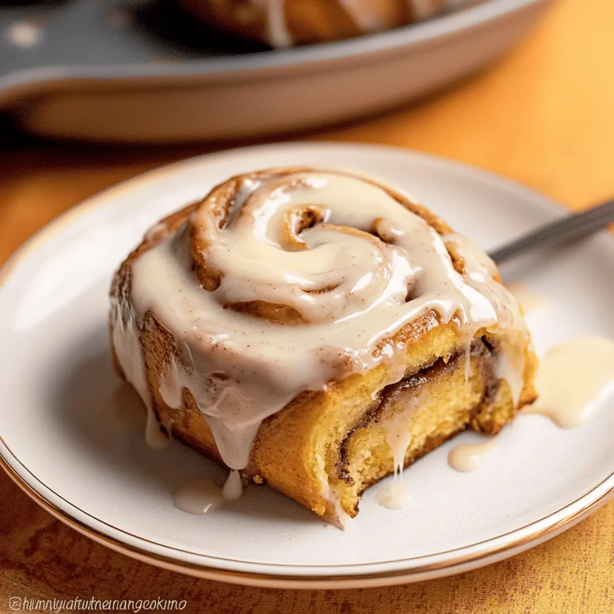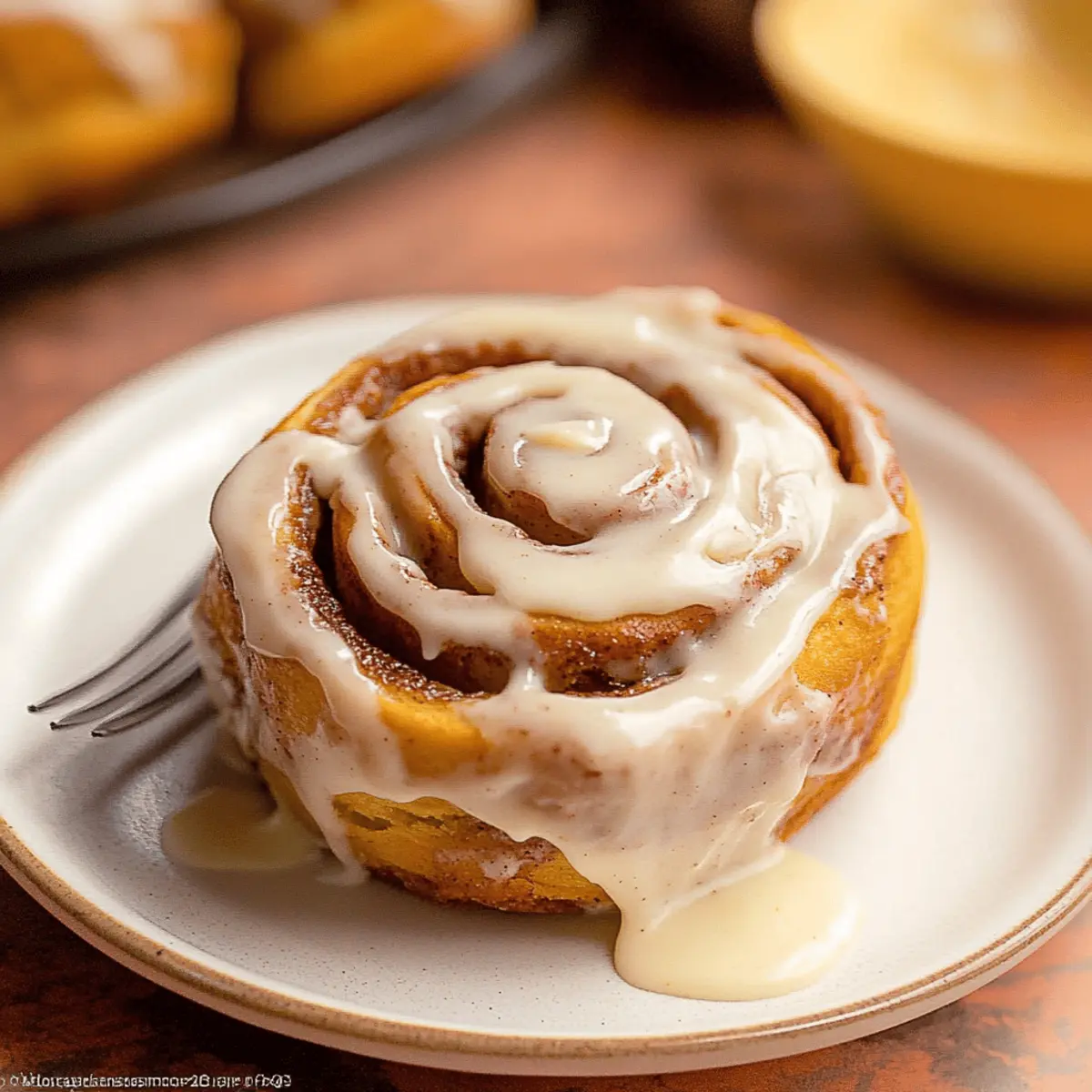 Jump to Recipe Print RecipeAs the leaves turn and the air fills with the scent of cinnamon, I find myself reaching for a cozy recipe that captures the essence of fall. Enter these delightful Pumpkin Cinnamon Rolls with Brown Butter Cream Cheese Frosting—a treat that will fill your kitchen with warmth and joy. Made with pure pumpkin puree, this recipe is a perfect blend of sweet and spice that brings comfort to any breakfast or brunch table. The first perk? They can be prepared ahead of time, making your mornings effortlessly delicious. Plus, imagine pulling apart fluffy, soft rolls, each swirled with a sweet brown sugar filling and topped with that smooth, nutty frosting. Wouldn’t that make your heart sing? So, are you ready to dive into the world of homemade cinnamon rolls and elevate your autumn baking? Let’s get started! Why are Pumpkin Cinnamon Rolls irresistible? Warm, Cozy Vibes: These rolls are perfect for embracing the fall spirit, filling your home with delightful aromas. Made Ahead Ease: Prepare them the night before and bake them fresh in the morning—no stress on busy days! Decadent Frosting: The rich brown butter cream cheese frosting takes each roll to gourmet heights. Versatile Treat: Enjoy them as a breakfast staple or a sweet snack; they fit every occasion. Comforting Delight: Fluffy, soft, and bursting with pumpkin flavor, they’re the ultimate indulgence for autumn lovers! Imagine savoring these with a cup of coffee, or perhaps paired with Cider Pumpkin Waffles for the perfect cozy brunch! Pumpkin Cinnamon Rolls Ingredients • Get ready to gather everything you need for these delightful treats! For the Rolls Pure Pumpkin Puree – This is key for moisture and gives these rolls their signature pumpkin flavor; avoid spiced versions! Granulated Sugar – Sweetens the dough beautifully; it’s best kept as is for optimal sweetness. Brown Sugar – This enhances the rolls with a heavenly caramel flavor; you can use light or dark, depending on your preference. Butter – Richness is essential here; opt for unsalted butter and brown it to bring out extra depth. Active Dry Yeast – A must-have for the rolls to rise; make sure it’s fresh, or grab instant yeast for quicker results. Milk Powder – Adds tenderness and moisture; if you don’t have it, warming some milk can do the trick. Salt – Just a pinch balances the sweetness and enhances the flavors. For the Frosting Cream Cheese – Adds creamy goodness and a slight tang; feel free to swap it with mascarpone for a different twist. Brown Butter – Use the leftover browned butter from the rolls for a nutty flavor in your frosting. Confectioners’ Sugar – This sweetens the frosting to the perfect creamy consistency; sifted is best for a smooth finish. Embrace your inner chef and get excited about making these Pumpkin Cinnamon Rolls! Just imagine the cozy atmosphere they will create in your home. Step‑by‑Step Instructions for Pumpkin Cinnamon Rolls Step 1: Prepare Butter Start by browning 15 tablespoons of unsalted butter in a medium saucepan over medium heat, stirring frequently until it reaches a nutty aroma and golden brown color, about 5-7 minutes. Remove it from heat and set it aside to cool slightly while you prepare the dough. This step adds rich flavor to your Pumpkin Cinnamon Rolls. Step 2: Make Dough In a large mixing bowl, combine 1/4 cup of warm water, 2 tablespoons of granulated sugar, and 2 1/4 teaspoons of active dry yeast. Let it sit for about 5-10 minutes or until frothy. Then mix in 1 cup of pure pumpkin puree, the browned butter, 1/4 cup of milk powder, and about 4 cups of all-purpose flour to form a soft dough. Knead the mixture for about 5-7 minutes until it becomes elastic and smooth. Step 3: First Rise Transfer the dough to a greased bowl and cover it with a damp kitchen towel or plastic wrap. Place it in a warm area and let it rise for about 1 hour, or until doubled in size. To check if it’s ready, lightly poke the dough; it should hold a slight impression. This step is crucial for achieving fluffy Pumpkin Cinnamon Rolls. Step 4: Roll and Fill Once the dough has risen, turn it out onto a lightly floured surface and roll it into a large rectangle, about 1/4 inch thick. Spread melted browned butter over the surface, then sprinkle a mixture of 1/2 cup brown sugar and 1 tablespoon pumpkin pie spice evenly on top. Carefully roll the dough tightly into a log, ensuring the filling stays inside, then pinch the seams to seal. Step 5: Cut Rolls Using a sharp knife or dental floss, slice the rolled dough into 12 equal pieces, about 1-1.5 inches thick. Arrange these rolls in a greased 9×13-inch baking dish, allowing enough space for them to expand. As you prepare the rolls, you can enjoy the warm, inviting aromas already filling your kitchen from the Pumpkin Cinnamon Rolls. Step 6: Second Rise Cover the arranged rolls loosely with plastic wrap or a clean kitchen towel and allow them to rise in a warm area for another 30-45 minutes, until they have puffed up significantly. Preheat the oven to 350°F (175°C) while the rolls are rising, setting the stage for baking these delightful treats. Step 7: Bake Once the rolls have risen, place them in the preheated oven and bake for 25-27 minutes or until they are golden brown and the tops feel firm to the touch. Your kitchen will smell heavenly as these Pumpkin Cinnamon Rolls bake. Keep an eye on them to avoid over-browning. Step 8: Prepare Frosting While the rolls are baking, beat together 8 ounces of softened cream cheese and the leftover browned butter in a medium bowl until smooth and creamy. Gradually add 2 cups of sifted confectioners’ sugar, mixing until well combined. Once the rolls are out of the oven, generously spread this luscious frosting over the warm rolls for an indulgent finish. Pumpkin Cinnamon Rolls Variations Feel free to get creative with these Pumpkin Cinnamon Rolls and make them uniquely yours! Sweet Potato Substitute: Swap out