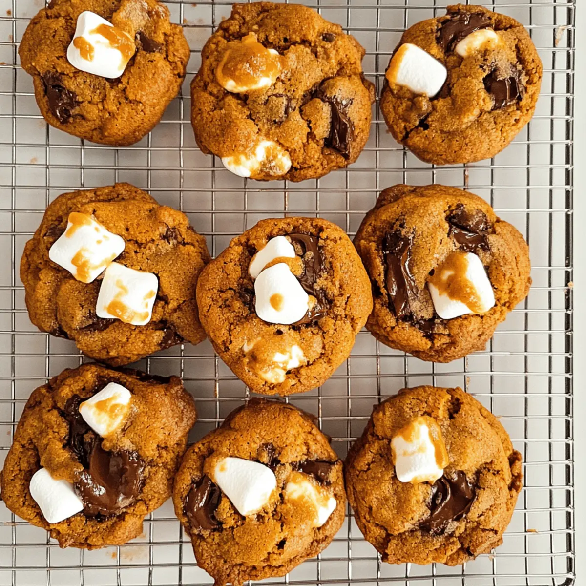 Jump to Recipe Print RecipeThe scent of autumn is in the air, and what better way to celebrate it than with a batch of warm and inviting Pumpkin S’mores Cookies? These delightful creations combine the cozy flavors of pumpkin and spices with gooey vegan marshmallows and rich chocolate – a perfect, comforting treat! What I love most about this recipe is that it’s not only gluten-free but also lower in sugar, making it an indulgence you can feel good about. Plus, there’s no need to chill the dough, so you can whip these up in no time, whether you’re hosting a fall gathering or just treating yourself to a cozy evening at home. Ready to dive into this simple and delicious recipe? Let’s get started! Why Are Pumpkin S’mores Cookies Perfect? Unmatched Flavor: The blend of pumpkin, warm spices, and chocolate creates an irresistible taste experience that feels like a cozy hug in cookie form. Quick & Easy: No chilling the dough means you can have these delicious treats ready in just 15 minutes—a perfect solution for unexpected guests! Healthy Twist: With gluten-free and lower sugar options, you can indulge without guilt. Incorporate delightful alternatives like Salted Honey Cookies for an even healthier treat. Crowd-Pleasing: Whether it’s a cozy family night or a holiday party, these cookies are bound to be a hit with everyone in attendance. Versatile Options: Feel free to experiment with variations, such as using chocolate chunks or adding a sprinkle of pumpkin seeds for extra crunch, making these cookies uniquely yours! Pumpkin S’mores Cookies Ingredients • Indulge in a delightful treat that’s gluten-free and vegan! For the Cookie Dough Creamy Unsweetened Almond Butter – Provides moisture and richness; can use another nut butter if not allergic. Light Brown Sugar – Adds sweetness and moisture; substitute with coconut sugar for a healthier option. Flax Egg – Binds ingredients together; this vegan alternative works wonderfully in place of a conventional egg. Pumpkin Puree – Contributes flavor and moisture; ensure it’s pure pumpkin, not pumpkin pie filling. Vanilla Extract – Enhances flavor; no substitution required. Almond Flour – Offers a gluten-free structure with slight nuttiness; not interchangeable with regular flour without testing. Pumpkin Pie Spice – Infuses warm, autumnal flavors; no substitution required. Baking Soda – Helps cookies rise slightly; essential for texture, no substitutions. Salt – Enhances overall flavor; no substitutions needed. For the Filling Vegan Mini Marshmallows – Retain their shape during baking for the perfect texture; regular marshmallows will melt and alter the desired outcome. Semi-Sweet Chocolate Chips or Chunks – Provide sweetness and richness; consider using dark chocolate for a richer experience. Embrace the cozy flavors of fall with these Pumpkin S’mores Cookies, and bring warmth to your kitchen while indulging in a treat that feels good to enjoy! Step‑by‑Step Instructions for Pumpkin S’mores Cookies Step 1: Preheat the Oven Begin by preheating your oven to 375°F (190°C). While the oven heats up, take a baking sheet and line it with parchment paper, ensuring it’s ready for the cookie dough. This preparation step keeps your cookies from sticking and allows for easy cleanup. Step 2: Mix the Wet Ingredients In a large mixing bowl, combine 1 cup of creamy unsweetened almond butter, ¾ cup of light brown sugar, ¾ cup of pumpkin puree, 1 teaspoon of vanilla extract, and 1 flax egg (or regular egg). Stir everything together until you achieve a smooth and creamy consistency, which should take about 2-3 minutes. Step 3: Combine the Dry Ingredients In a separate bowl, whisk 2 cups of almond flour, 1 teaspoon of pumpkin pie spice, 1 teaspoon of baking soda, and a pinch of salt together. This will ensure all your leavening agents are evenly distributed. The mixture will have a light, fluffy texture, indicating it’s ready to blend with your wet ingredients. Step 4: Create the Cookie Dough Gradually fold the dry mixture into the wet ingredients until no dry flour remains visible. It’s important to incorporate them gently so that the dough remains fluffy and doesn’t become dense. Once combined, add in ½ cup of semi-sweet chocolate chips, mixing just enough to evenly scatter them throughout the dough. Step 5: Prepare the Cookie Batches Using a cookie scoop, place 2-3 vegan mini marshmallows at the bottom of the scoop, then fill the scoop with the cookie batter on top. This technique ensures that the marshmallows stay intact while baking and are perfectly distributed within the Pumpkin S’mores Cookies, slightly visible on the top. Step 6: Add Extra Chocolate (Optional) For an added touch of indulgence, you can optionally sprinkle a few extra chocolate chips on top of each cookie before baking. This not only enhances visual appeal but also amplifies the rich chocolate flavor with every bite you take. Step 7: Bake to Perfection Carefully place your cookie-laden baking sheet into the preheated oven. Bake for 10-12 minutes, or until the edges of the cookies begin to turn a light golden brown. Keep an eye on them, as the golden color is the perfect indicator that your Pumpkin S’mores Cookies are ready to come out. Step 8: Cool and Serve Once baked, remove the cookies from the oven and let them cool on the baking sheet for about 5 minutes. This allows the cookies to set and makes transferring them to a wire rack easier. After cooling, enjoy these delightful Pumpkin S’mores Cookies warm or at room temperature! Expert Tips for Pumpkin S’mores Cookies Use Pure Pumpkin: Ensure you’re using pure pumpkin puree, not pumpkin pie filling, to maintain the cookies’ texture and flavor. Know Your Flour: Almond flour is essential for gluten-free Pumpkin S’mores Cookies; if substituting, do so with caution. Avoid Overmixing: Gently incorporate the ingredients to prevent dense cookies. Light mixing keeps them fluffy