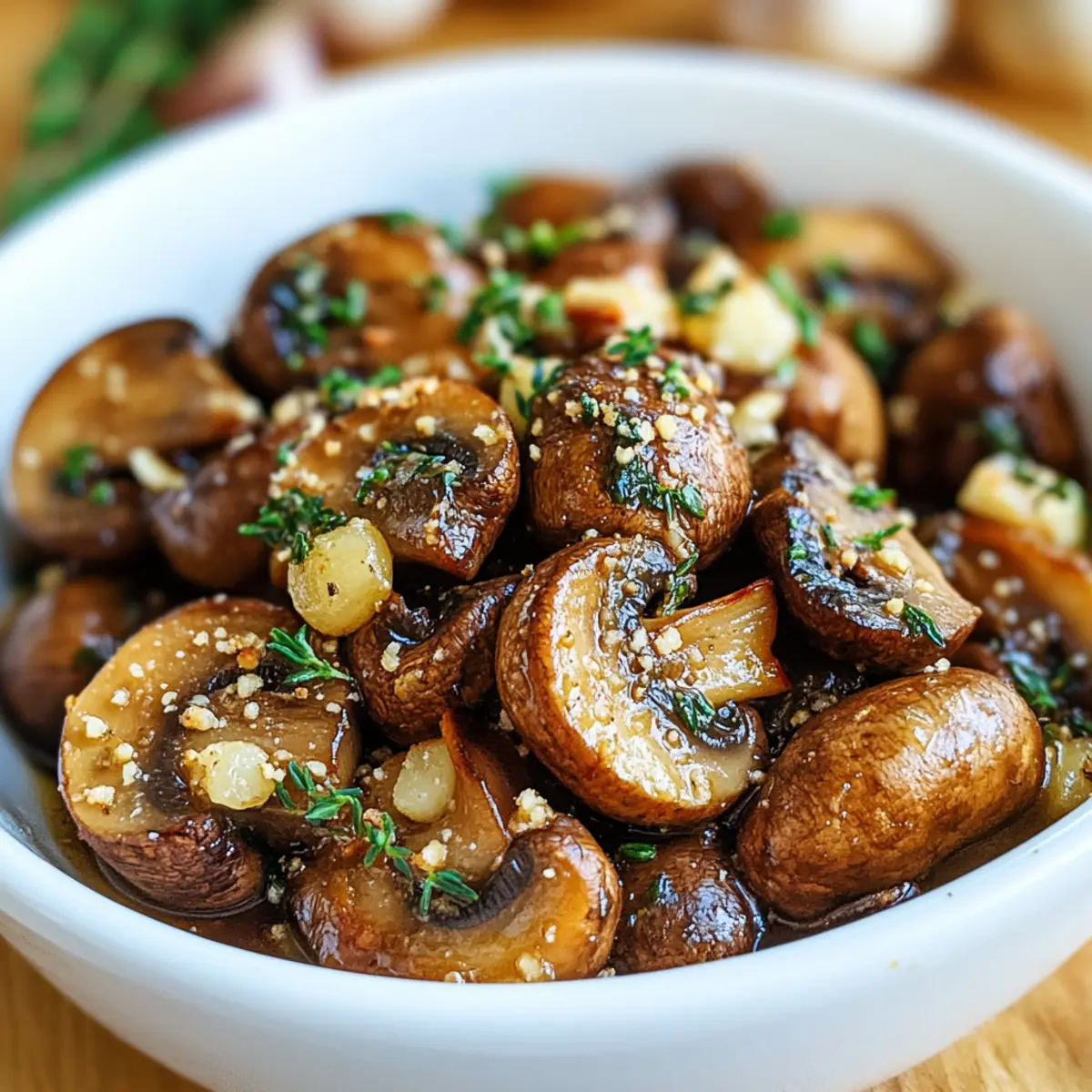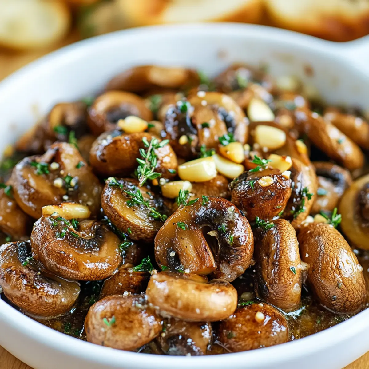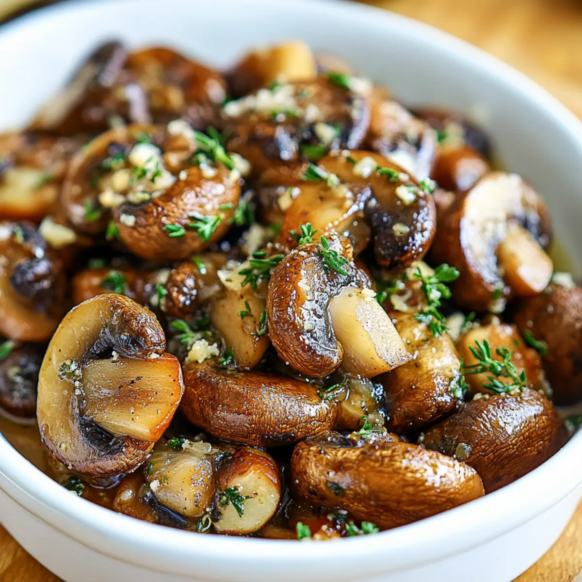 Jump to Recipe Print RecipeAs I pulled my warm, fragrant mushrooms out of the oven, a wave of nutty aroma filled the kitchen, instantly lifting my spirits. There’s something magical about Roasted Mushrooms in a Browned Butter, Garlic, and Thyme Sauce that turns this simple fungi into a gourmet delight, perfect for any dinner table. This recipe isn’t just about speed; it’s a quick 30-minute masterpiece that perfectly complements any meal, making it a fantastic side dish for both holiday feasts and cozy weeknight dinners. Plus, it’s gluten-free and vegetarian, ensuring everyone can enjoy its rich flavors without worry. Are you ready to elevate your home cooking to restaurant-quality deliciousness? Let’s dive into this umami-filled experience! Why are these mushrooms so irresistible? Irresistible Aroma: The moment you pop these in the oven, your kitchen will be filled with the cozy scent of browned butter and garlic, making everyone eager to taste! Gourmet Made Easy: With just 30 minutes of cooking time, you’ll impress guests without the stress of elaborate recipes. Versatile Pairing: These mushrooms are perfect alongside grilled meats, mixed into grain salads, or even atop pasta, making them a go-to side for any meal. Rich Flavor: The combination of earthy thyme and nutty butter elevates the humble mushroom into a luxurious dish worthy of any dinner party. Healthy Indulgence: Enjoy a side that is both gluten-free and vegetarian, allowing you to serve a delicious yet wholesome option for everyone at your table! Roasted Mushrooms in a Browned Butter Ingredients For the Mushrooms • Mushrooms – 1 pound mushrooms (button, cremini, or other) – They serve as the earthy base, bringing depth and texture to this delightful side dish. • Oil – 1 tablespoon oil – Helps with even roasting; olive oil is a fantastic substitute. • Salt and Pepper – To taste – A simple way to enhance the overall flavor of your roasted mushrooms. For the Browned Butter Sauce • Butter – 1/4 cup butter – This adds rich flavor when browned; you can swap it out for vegan butter for a dairy-free option. • Garlic – 2 cloves garlic, chopped – Infuses aromatic depth; feel free to adjust based on your personal preference. • Thyme – 1 teaspoon thyme, chopped – Provides a fresh, herbal note; consider substituting with rosemary if desired. • Lemon Juice – 1 tablespoon lemon juice – Offers a bright and zesty finish; vinegar can be used as a substitute for acidity. These simple yet flavorful ingredients come together to create Roasted Mushrooms in a Browned Butter bliss that’s sure to satisfy. Step‑by‑Step Instructions for Roasted Mushrooms in a Browned Butter Step 1: Preheat the Oven Begin by preheating your oven to 400°F (200°C). This temperature is perfect for roasting the mushrooms, allowing them to caramelize beautifully. As the oven warms up, grab a baking sheet and line it with parchment paper for easy cleanup later. Step 2: Prepare the Mushrooms Clean and slice 1 pound of mushrooms, whether button, cremini, or your favorite variety. In a large bowl, toss the mushrooms with 1 tablespoon of oil, salt, and pepper until they’re evenly coated. Spread them out in a single layer on the prepared baking sheet to promote even roasting. Step 3: Roast the Mushrooms Place the baking sheet in the preheated oven and roast the mushrooms for about 20 minutes. Halfway through the cooking time, give them a gentle stir to encourage caramelization. When done, they should be golden brown and tender, emitting a rich, earthy aroma. Step 4: Brown the Butter While the mushrooms roast, melt 1/4 cup of butter in a medium saucepan over medium heat. Keep a close eye on it, stirring frequently, until the butter turns a lovely hazelnut brown and emits a nutty fragrance. This process should take about 5-7 minutes, so stay attentive to avoid burning. Step 5: Add Aromatics Once the butter is beautifully browned, remove it from the heat and stir in 2 chopped cloves of garlic, 1 teaspoon of chopped thyme, and 1 tablespoon of lemon juice. The mixture will bubble slightly as the garlic releases its aroma, infusing the brown butter with delicious flavor. Step 6: Combine and Serve Toss the beautifully roasted mushrooms with the browned butter sauce in a large serving bowl. Mix thoroughly, ensuring each mushroom is coated in the aromatic sauce. Finally, season to taste with additional salt and pepper before serving them warm as a delightful side dish. What to Serve with Roasted Mushrooms in a Browned Butter Creating a delightful meal is easy when you pair these luxurious, earthy mushrooms with complementary sides that enhance their rich flavors. Creamy Polenta: The smoothness of polenta pairs beautifully with the buttery mushrooms, providing a comforting base that soaks up all the delicious sauce. Garlic Bread: A crispy slice of warm garlic bread is perfect for mopping up the flavorful browned butter sauce, adding crunch to your meal. Grilled Chicken: Tender, seasoned grilled chicken works wonderfully alongside these mushrooms, adding protein and a smoky flavor that balances the dish. Mixed Green Salad: A bright salad with fresh greens and a light vinaigrette creates a refreshing contrast to the rich mushrooms, brightening the palate between bites. Sautéed Spinach: The vibrant, wilted spinach offers a lovely burst of color and a slight earthy flavor, enhancing the overall experience without overwhelming the main dish. Roasted New Potatoes: Crispy, seasoned new potatoes provide a fantastic textural contrast while their mild flavor allows the mushrooms to shine. Herb-Infused Quinoa: This nutty grain adds a wholesome touch that pairs perfectly with the richness of the mushrooms while bringing an extra bite of nutty flavor. Red Wine: A glass of medium-bodied red wine, like Pinot Noir, beautifully complements the earthy flavors of the mushrooms, enhancing the dining experience. Chocolate Tart: For dessert, a rich