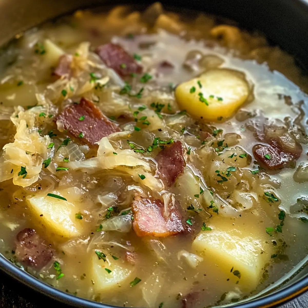 • Fresh Herbs for Garnish: Add a sprinkle of fresh parsley or dill right before serving to not only elevate the presentation but also add a fresh burst of flavor to the sauerkraut soup.