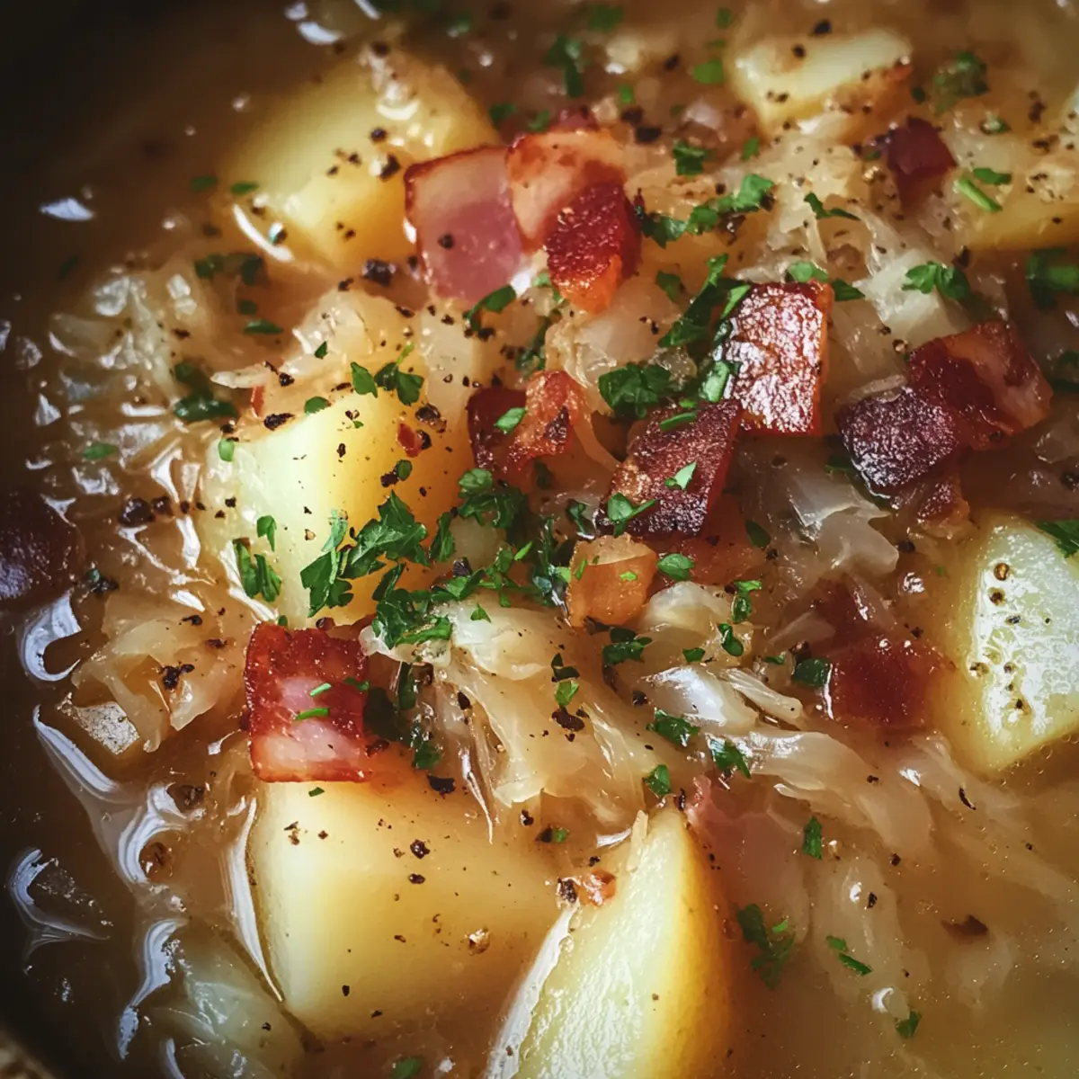 Comforting, Hearty Flavors: This soup marries tangy sauerkraut with rich potatoes, creating a delightful blend that’s both nourishing and satisfying.