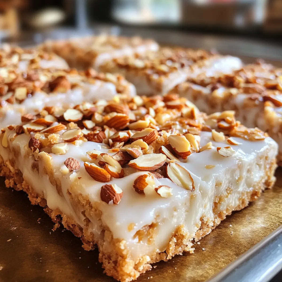 Jump to Recipe Print RecipeAs the aroma of freshly baked goods wafts through the kitchen, I can’t help but feel transported to cozy Scandinavian cafés, where sweet traditions blend with warm conversations. Today, I’m thrilled to share my favorite recipe for Easy Scandinavian Almond Bars, a scrumptious treat that’s not only a breeze to make but also a fantastic crowd-pleaser. These buttery delights are topped with crunchy almonds and drizzled with a sweet icing, making them perfect for holiday gatherings or a comforting afternoon treat. Plus, they’re freezer-friendly, so you can whip up a batch ahead of time and savor the joy of homemade goodness whenever you crave it. Are you ready to join me on this delicious journey? Let’s dive into making these irresistible bars! Why are Scandinavian Almond Bars so special? Flavorful, the combination of rich butter and nutty almonds provides a delightful treat that’s hard to resist. Versatile, you can easily substitute hazelnuts or pistachios to create your own twist on this classic recipe. Easy-to-make, even beginner bakers will find the step-by-step instructions simple to follow. Freezer-friendly, you can prepare these bars ahead of time and enjoy them whenever the craving hits. For more options, don’t miss my delicious Layer Everything Bars that are perfect for any celebration! Scandinavian Almond Bars Ingredients For the Base All-Purpose Flour – Provides structure and stability to the bars; substitute with a gluten-free flour blend for gluten-free diets. Baking Powder – Helps the bars rise and achieve a light texture; no substitute recommended. Salt – Enhances flavor and balances sweetness; essential for taste, no substitute needed. Unsalted Butter – Adds richness and moisture; room temperature butter helps in mixing. You can use margarine as a non-dairy alternative. Granulated Sugar – Sweetens the bars; brown sugar can add a deeper flavor, but the texture may vary. Large Egg – Binds the ingredients together and adds moisture; for a vegan option, use a flaxseed egg or applesauce. Almond Extract – Provides a deep almond flavor; you can substitute with vanilla extract for a milder taste. Whole Milk – Adds moisture; consider low-fat or dairy-free milk alternatives. For the Topping Sliced Almonds – Adds texture and a nutty crunch on top; you can replace them with chopped hazelnuts or pistachios for variety. For the Icing Powdered Sugar – Used in the icing for sweetness and smooth texture; no substitutes unless using a sugar alternative. Icing Flavoring (Almond Extract or Vanilla) – Enhances icing flavor; optional swap for vanilla depending on your preference. These Scandinavian Almond Bars are not just a treat; they’re a delightful memory waiting to happen in your kitchen! Step‑by‑Step Instructions for Scandinavian Almond Bars Step 1: Preheat and Prepare Preheat your oven to 325°F (165°C) and line two baking sheets with parchment paper. This will prevent the Scandinavian Almond Bars from sticking and make cleanup a breeze. Ensure your baking sheets are ready to receive the delicious, buttery dough you’ll be creating shortly. Step 2: Mix Dry Ingredients In a large mixing bowl, whisk together 2 cups of all-purpose flour, 1 teaspoon of baking powder, and ½ teaspoon of salt until well combined. This step ensures that your dry ingredients are evenly distributed, setting the foundation for the perfect texture of your Scandinavian Almond Bars. Set this mixture aside while you prepare the wet ingredients. Step 3: Cream Butter and Sugar In a separate bowl, beat ½ cup of softened unsalted butter and 1 cup of granulated sugar using an electric mixer until the mixture is light and fluffy, about 4-5 minutes. This process will incorporate air and contribute to the tender texture of the bars. Add in one large egg and 1 teaspoon of almond extract, mixing until fully blended. Step 4: Combine Wet and Dry Ingredients Gradually add the flour mixture to the wet ingredients, mixing gently with a spatula or wooden spoon until just combined. Overmixing can lead to tough bars, so stop as soon as there are no more streaks of flour. The dough will be soft and slightly sticky, perfect for shaping into logs. Step 5: Shape the Dough Divide the dough into four equal pieces and shape each piece into a log, about 12 inches long. Place two logs on each prepared baking sheet, leaving space between them for spreading. Use your fingers to flatten each log into a strip approximately 3 inches wide. This will help them bake evenly and achieve that iconic Scandinavian Almond Bars shape. Step 6: Add Toppings Brush the tops of your dough strips with a splash of milk to promote browning. Generously sprinkle sliced almonds over each strip, pressing them gently into the dough to ensure they stick during baking. This almond topping will create a beautiful texture and flavor contrast once the bars cool. Step 7: Bake to Perfection Place your baking sheets in the preheated oven and bake the Scandinavian Almond Bars for 12–14 minutes. Look for the edges to turn a light golden brown while the centers remain slightly soft. Keep an eye on them; removing the bars at the right moment will prevent them from becoming too dry. Step 8: Cut the Bars As soon as you remove the bars from the oven, let them cool for just a few minutes on the baking sheets. While they’re still warm, cut the strips diagonally into 1-inch wide pieces using a sharp knife. This will create individual bars that are easier to serve and enjoy. Step 9: Prepare the Icing In a small bowl, whisk together 1 cup of powdered sugar, 1 tablespoon of almond extract, and 2 tablespoons of milk until smooth. This icing will add a delightful sweetness to your Scandinavian Almond Bars. Adjust the consistency with more milk or sugar if necessary, and prepare to drizzle! Step 10: Drizzle and Set Once the bars have completely cooled, use a spoon to drizzle the icing over each piece generously. Allow the i