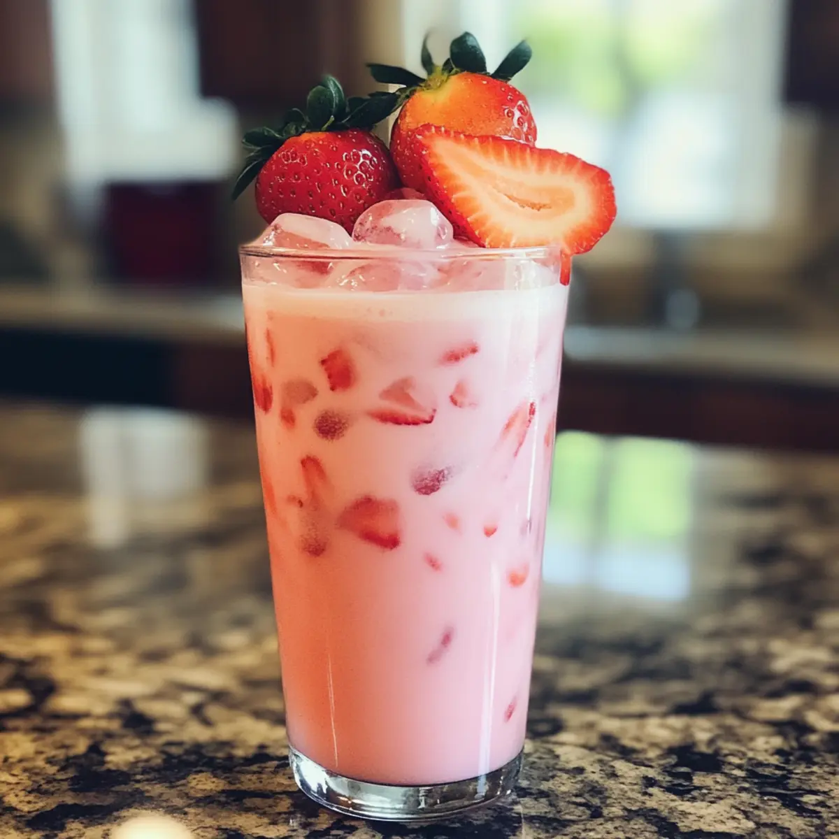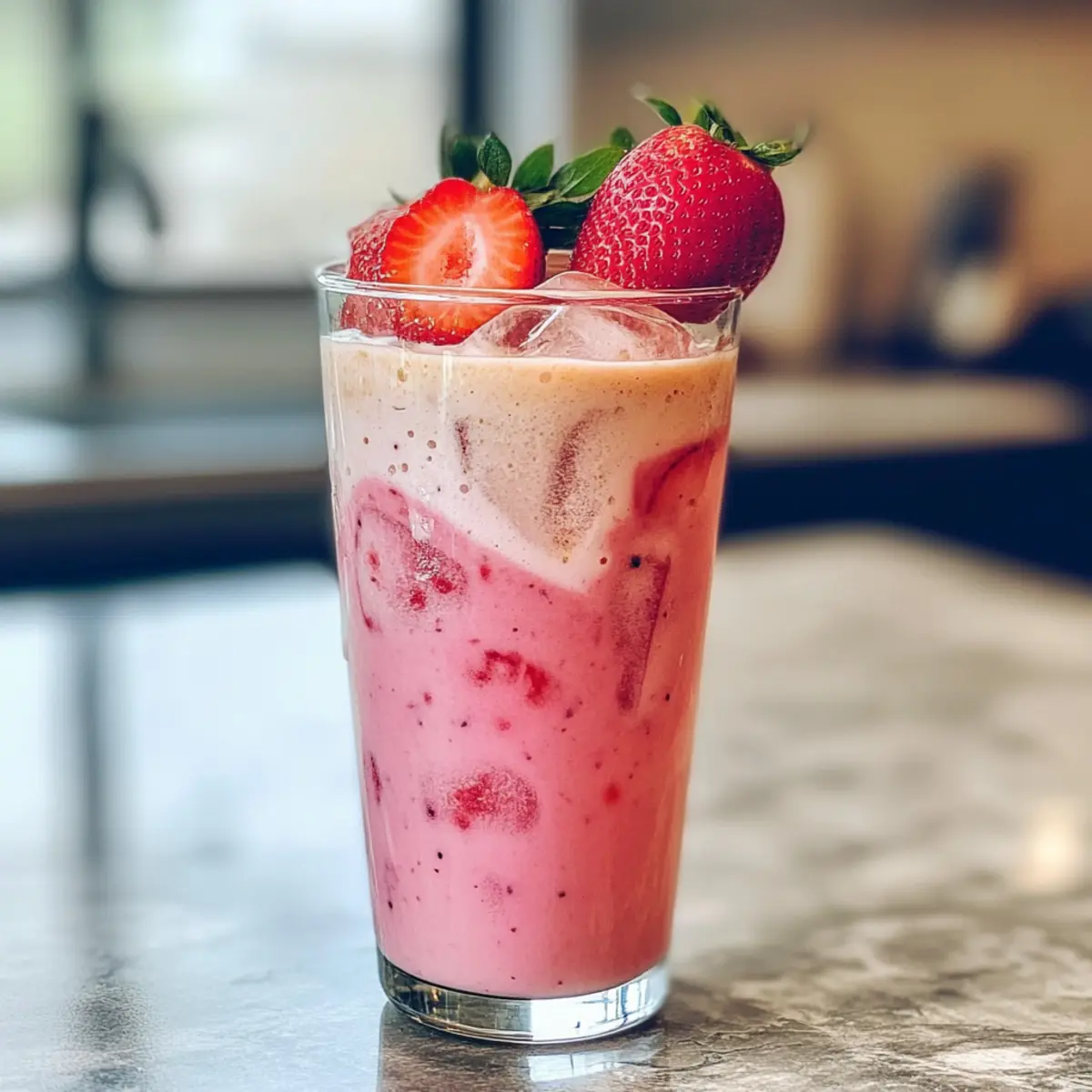 Jump to Recipe Print RecipeThe other day, I found myself sipping an exquisite cup of tea that seemed to transport me to a charming café, where sunshine pours in through the windows, and smiles abound. That’s when I decided to recreate that experience at home with a delightful twist: Strawberry Earl Grey Milk Tea. This refreshing drink harmoniously blends the fragrant citrus notes of Earl Grey with the vibrant tartness of strawberries, creating an indulgent experience that feels special yet is incredibly easy to whip up. With only five ingredients and under 15 minutes of your time, you can treat yourself to a creamy, flavorful beverage that’s both crowd-pleasing and completely customizable, whether you prefer dairy or plant-based options. Are you ready to elevate your tea game and impress your friends with this stunning drink? Let’s get started! Why is Strawberry Earl Grey Milk Tea special? Quick and Easy: This delightful drink takes just 15 minutes to prepare, making it perfect for busy days or unexpected guests. Customizable Flavors: You can easily swap in different fruits or milk options to suit your taste; try it with almond milk or a hint of honey for a unique twist. Visually Stunning: The gorgeous pink hue and smooth texture make it an impressive addition to any gathering. Refreshing Every Season: Whether it’s served iced in the summer or warm during the colder months, this drink works beautifully year-round. If you love refreshing drinks, you might also enjoy my Oreo Milkshake Bliss or Freakshakes Homemade Milkshake for a sweet treat! Healthier Choice: With simple ingredients, you can reduce sugar and use low-calorie sweeteners, making this a guilt-free indulgence. Strawberry Earl Grey Milk Tea Ingredients For the Strawberry Syrup • Strawberries – fresh or frozen, they provide the essential sweetness and flavor in this delightful drink. • White Sugar – enhances the syrup’s sweetness; for a different flavor, consider honey or agave. • Lemon Juice – optional, but adds a zesty kick to balance the sweetness if desired. For the Tea • Earl Grey Tea Leaves – the star player for flavor; choose looseleaf for the best taste or use tea bags if needed. • Water – filtered water is ideal for brewing properly; it’s crucial for optimal flavor. For Serving • Milk – choose from a variety, such as whole, 2%, half-and-half, or vegan options like oat milk, adding creaminess to the drink. • Ice – essential for a refreshing experience, particularly if served chilled. Now that you have the Strawberry Earl Grey Milk Tea ingredients ready, share this delightful drink with friends and family! Step‑by‑Step Instructions for Strawberry Earl Grey Milk Tea Step 1: Make Strawberry Syrup Begin by chopping fresh strawberries into half-inch pieces and placing them in a jar. Add white sugar and, if desired, a splash of lemon juice for a zesty kick. Stir gently to combine, then let the mixture sit for at least 1 hour at room temperature. This process allows the strawberries to release their juices, creating a delightful syrup for your Strawberry Earl Grey Milk Tea. Step 2: Brew Tea In a teapot or heat-safe mug, measure out your Earl Grey tea leaves. Bring filtered water to just below boiling, around 200°F (93°C), to avoid bitterness. Pour the hot water over the tea leaves and steep for 3-5 minutes, or until the tea reaches a deep orange hue. Once brewed, strain out the tea leaves to prevent oversteeping and bitterness, ensuring a smooth flavor in your drink. Step 3: Assemble Drink To create your Strawberry Earl Grey Milk Tea, fill a tall glass with ice to chill the drink. Next, add the freshly made strawberry syrup, allowing its vibrant red color to shine through. Pour the brewed Earl Grey tea over the ice and syrup, mixing gently until combined. Finally, top off your drink with your choice of milk, swirling for a creamy finish, and get ready to savor the refreshing fusion of flavors. Strawberry Earl Grey Milk Tea Variations Get ready to delight your taste buds and personalize your drink experience with these fun twists! Fruit Swaps: Replace strawberries with raspberries or peaches for a unique flavor burst. Each fruit brings its own sweet charm, altering the drink’s personality beautifully. Milk Alternatives: Go for almond or coconut milk to introduce a nutty or tropical twist. Either option beautifully complements the floral notes of Earl Grey. Sweetness Boost: Try using honey or agave syrup instead of sugar for a different sweetness profile. These natural sweeteners can enhance the syrup’s richness while keeping it healthier. Citrus Zest: Add a splash of orange or grapefruit juice for an extra zing and a refreshing citrus twist that elevates your drink to new heights. Creamy Toppings: Top your drink with whipped cream or a dollop of coconut cream for an indulgent finish. This creates an exciting contrast in texture, making every sip a treat. Flavor Infusion: Experiment by adding a dash of vanilla extract or even a sprinkle of cinnamon to the tea for an inviting warmth. These additions can create comforting layers of flavor. Sweet Spice: If you love a bit of heat, toss in a pinch of ginger or a dash of cayenne pepper to give your drink a surprising kick. It’s a unique way to awaken your senses! Boba Fun: Try adding boba pearls for a chewy texture experience. This trendy addition will not only make your drink visually appealing but also turn each sip into an adventure! Looking for more delicious drink inspirations? You might enjoy the delightful Strawberry Cheesecake Dump or a refreshing Matcha Bubble Tea with Brown Sugar. The world of flavors awaits your curiosity! Make Ahead Options These Strawberry Earl Grey Milk Tea components are perfect for meal prep, helping you save precious time during busy weeks! You can prepare the strawberry syrup and store it in the refrigerator for up to 3 days, allowing those sweet flavors to deepen. Simply chop the strawberries, mix 