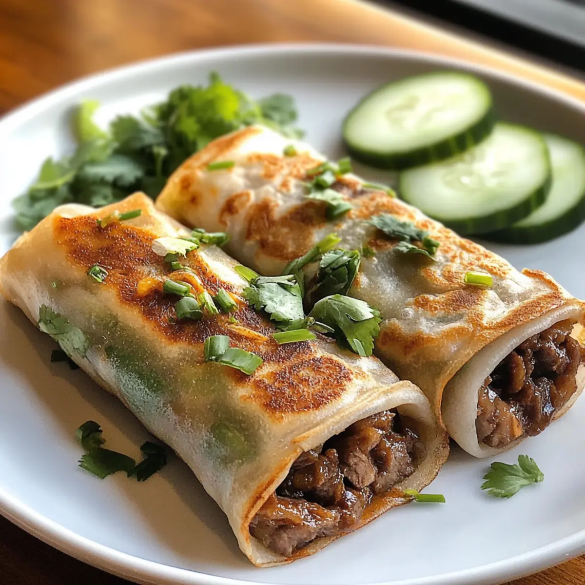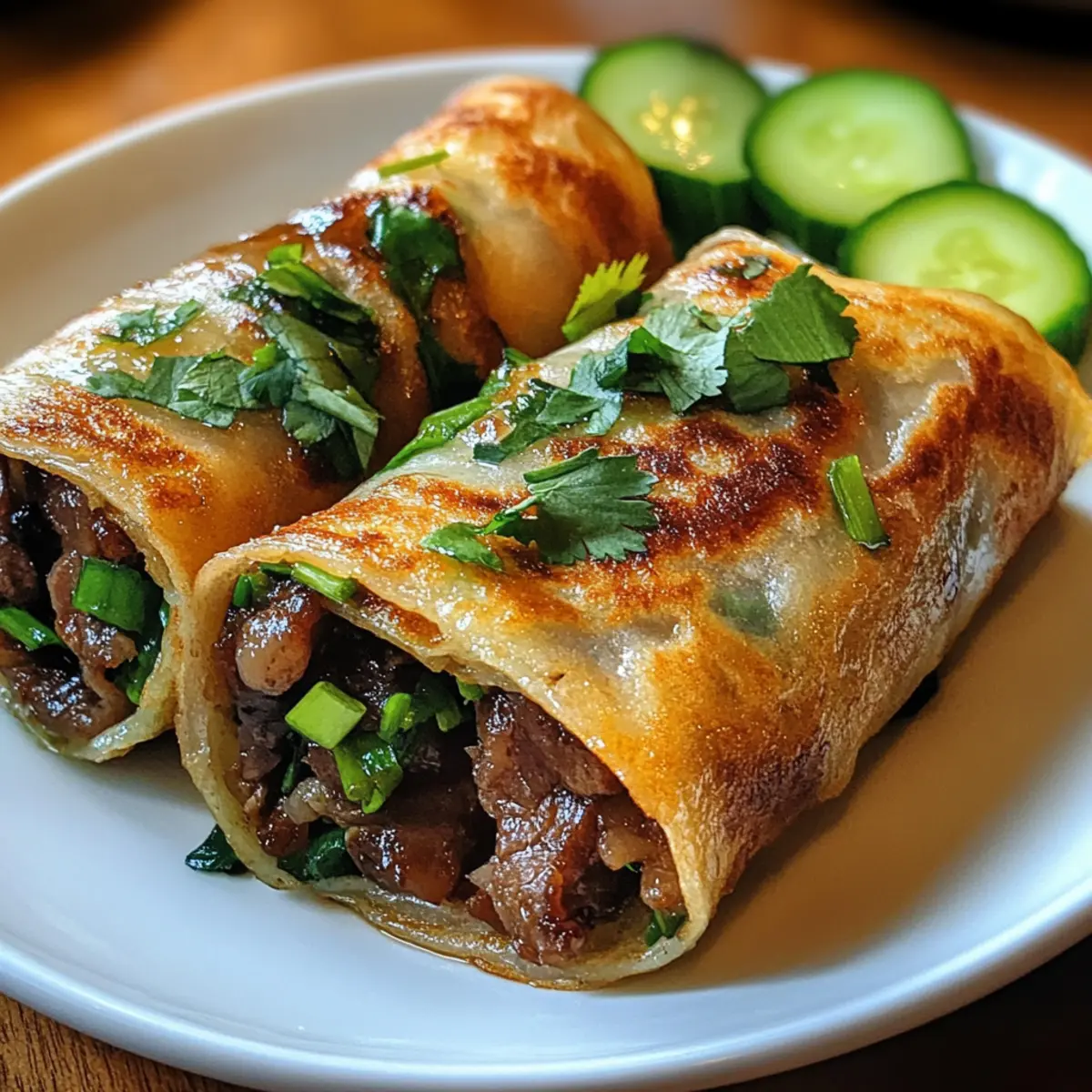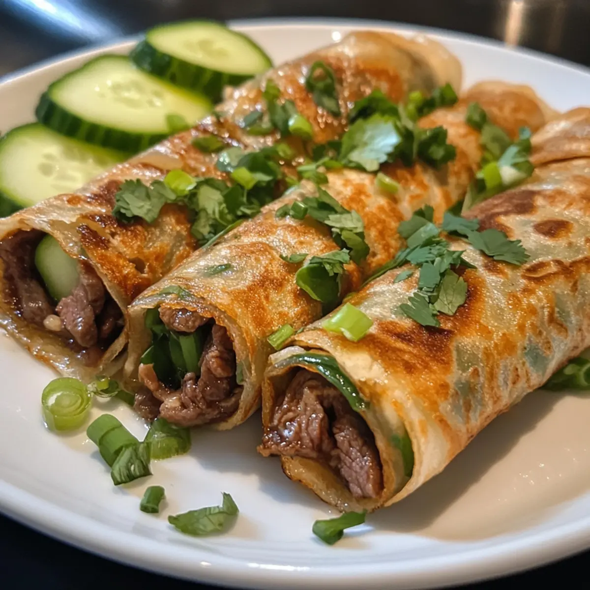 Taiwanese Beef Rolls combine tender braised beef with crispy scallion pancakes for a quick and delightful meal.