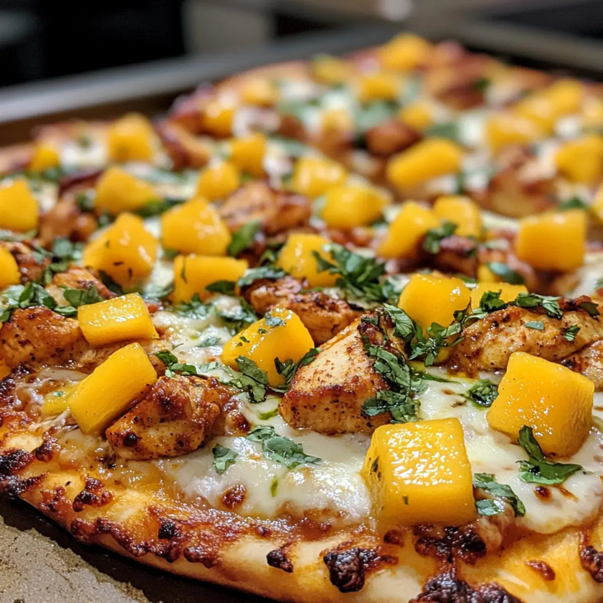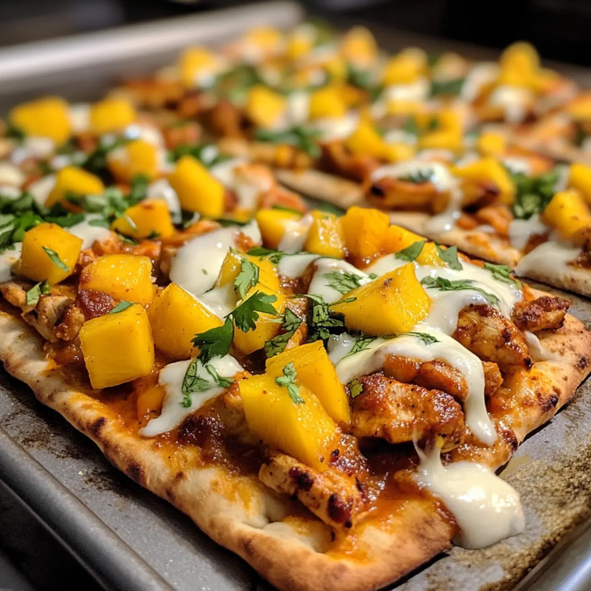 Tandoori Chicken Naan Pizza combines juicy tandoori chicken with fresh mango and aromatic herbs for a unique pizza experience.