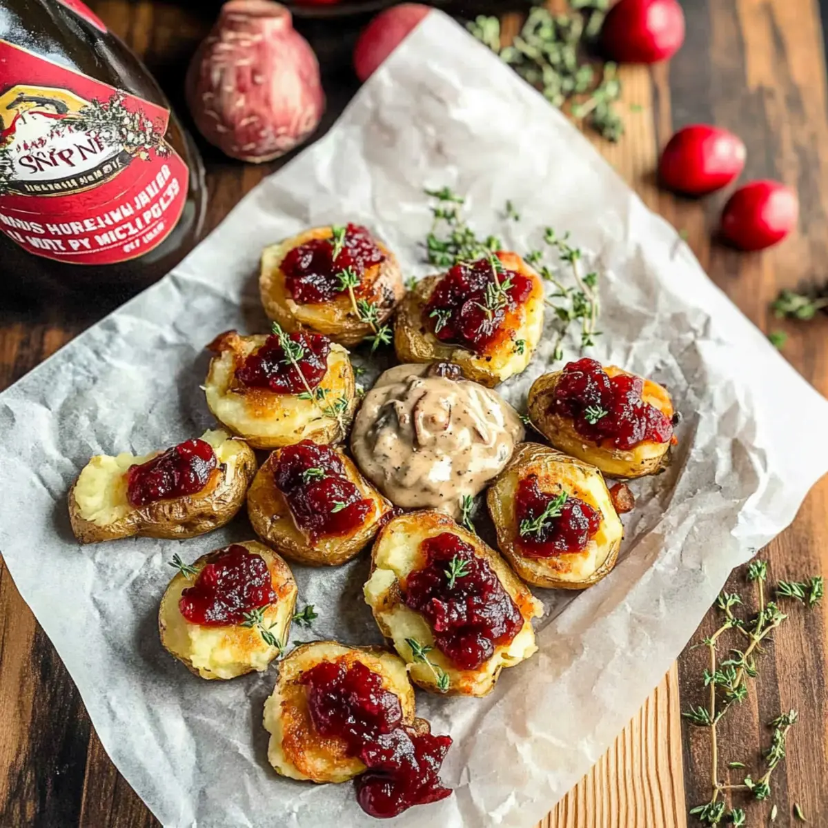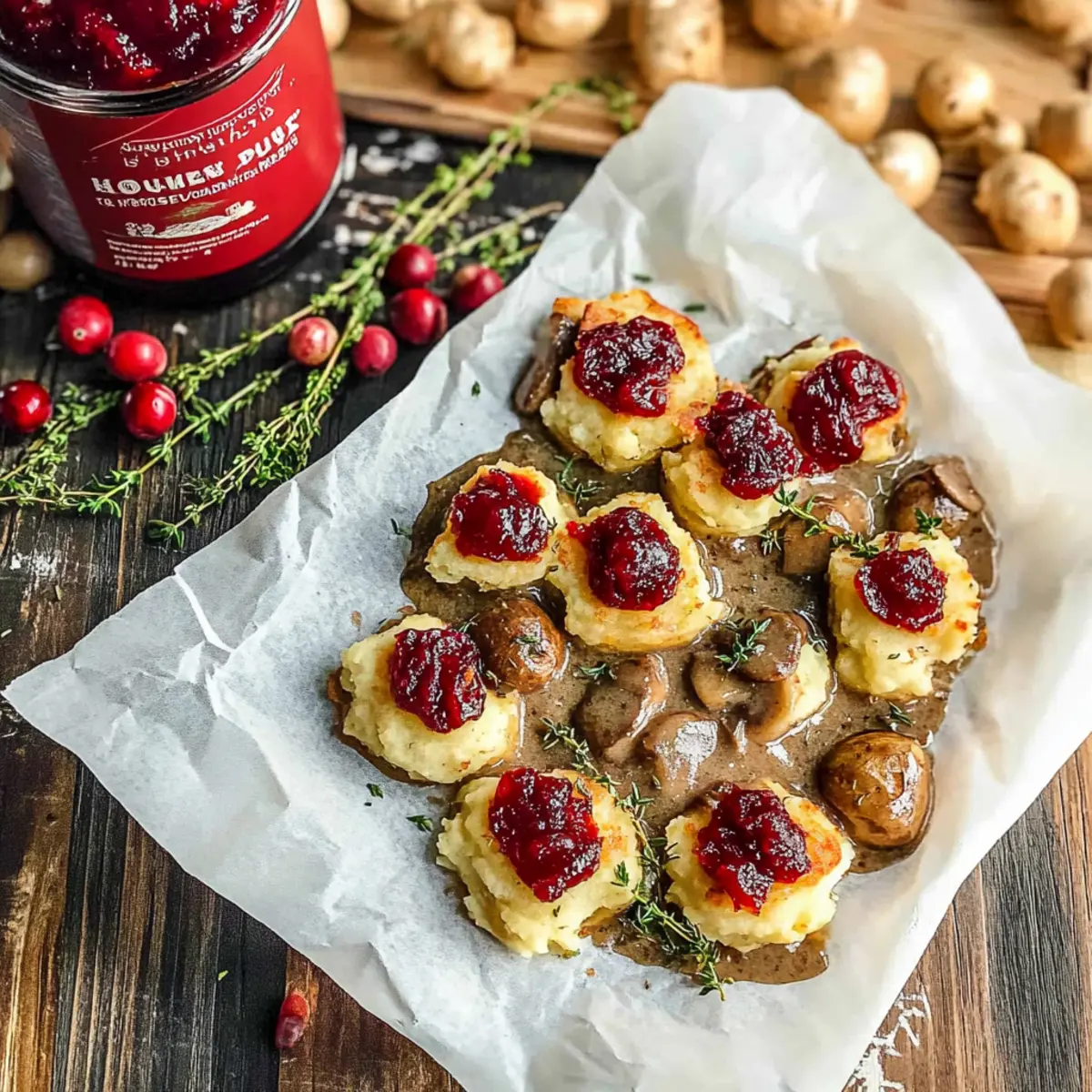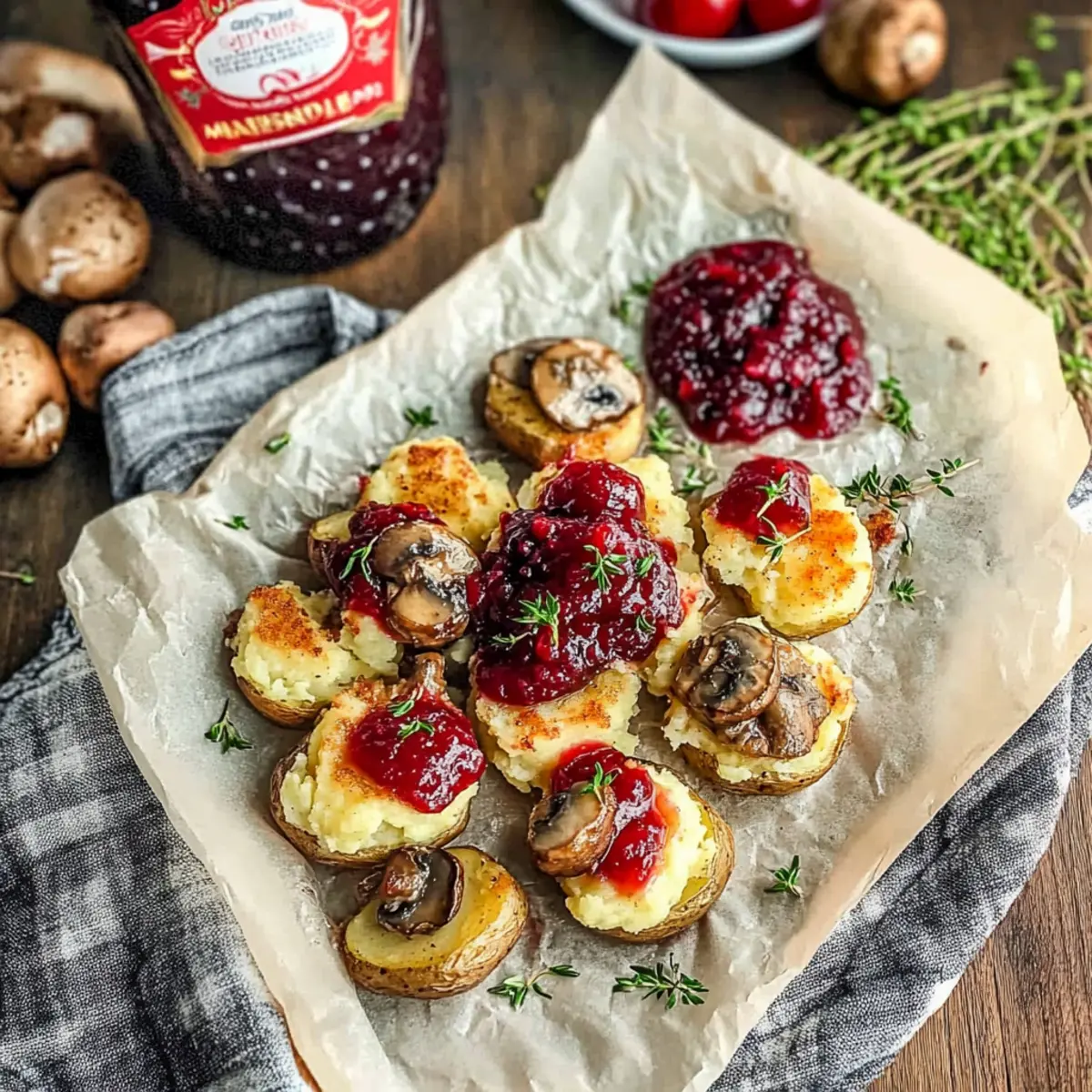 Jump to Recipe Print RecipeThe warm aroma of roasted potatoes fills the kitchen, instantly transporting me back to family gatherings around a Thanksgiving table. This year, I’m spicing things up with Vegan Thanksgiving-Style Smashed Potatoes with Mushroom Gravy! These crispy little gems are not only a delightful twist on the classic, but they are also simple enough for any home chef to whip up. Perfect for festive feasts, they come together quickly and are crowd-pleasers that even non-vegans will love. With the earthy richness of mushroom gravy and a pop of cranberry sauce, these smashed potatoes deliver layers of comfort and flavor in every bite. What’s your favorite way to elevate classic dishes for the holidays? Why Are These Vegan Smashed Potatoes Special? Crispy, Golden Perfection: Experience the delightful crunch of smashed potatoes, baked until golden brown for an irresistible texture. Savory Mushroom Gravy: Each bite is enhanced by a rich, homemade mushroom gravy that adds depth and umami flavor. Festive Twist: Topped with tangy-sweet cranberry sauce, these potatoes elevate any holiday meal to a new level of deliciousness. Easy to Prepare: Perfect for busy cooks, these smashed potatoes come together in just a few simple steps, making meal prep a breeze. Crowd-Pleasing Appeal: Even non-vegans will love these, truly making them a dish that everyone can enjoy at your next gathering. Explore more ways to make your meals festive with links to Cheesy Baked Potatoes with Broccoli Cheese Sauce or a delicious Vegan Lebanese Green Bean Stew. Vegan Thanksgiving-Style Smashed Potatoes Ingredients Get ready to create a holiday favorite! For the Smashed Potatoes • Creamer Potatoes (1-1.5 lb bag of Blushing Belles) – These are the star ingredients, perfect for achieving that crispy texture. • Olive Oil – Essential for brushing on the potatoes to make them golden and delicious. • Salt – Use to taste to enhance the natural flavor of your Vegan Thanksgiving-Style Smashed Potatoes. • Black Pepper – Add a sprinkle to elevate the taste; adjust it based on your preference. For the Mushroom Gravy • Mushroom – Choose your favorites; they create a rich, earthy flavor in your gravy. • Garlic – A must for that aromatic touch that complements the mushrooms beautifully. • Onion – Adds sweetness and depth to the gravy, making every bite irresistible. For the Topping • Cranberry Sauce – Offers a tangy-sweet surprise that pairs wonderfully with the savory potatoes. Use homemade or store-bought! • Fresh Thyme – A fragrant garnish that adds an herbaceous note; dried thyme works too if fresh isn’t available. Now that you have the ingredients gathered, you’re on your way to creating a festive dish that will warm hearts and stomachs alike! Step‑by‑Step Instructions for Vegan Thanksgiving-Style Smashed Potatoes Step 1: Preheat Your Oven Begin by preheating your oven to 450°F (232°C). This high temperature will ensure that your Vegan Thanksgiving-Style Smashed Potatoes turn out perfectly crispy. While the oven heats up, gather your ingredients and equipment. Having everything ready will make the process smooth and enjoyable. Step 2: Boil the Potatoes Place your rinsed Creamer potatoes in a large pot and cover them with cold water. Bring the pot to a boil over high heat and let the potatoes cook for about 15 minutes or until they are fork-tender. Make sure to drain the potatoes well in a colander after boiling, allowing any excess moisture to escape for the crispiest result. Step 3: Smash the Potatoes On a lined baking sheet, gently place each drained potato. Using the bottom of a cup or a fork, smash each potato until it’s about ½ inch thick—watch for cracking edges to ensure they maintain their shape. Arrange the smashed potatoes evenly on the baking sheet to promote even cooking and crispiness. Step 4: Season and Oil the Potatoes In this step, generously brush both sides of each smashed potato with olive oil. Sprinkle them all with salt to taste, allowing that savory flavor to penetrate when baking. The oil helps achieve that golden color and crispy texture that makes these Vegan Thanksgiving-Style Smashed Potatoes so irresistible. Step 5: Bake to Perfection Carefully place the baking sheet in the preheated oven and bake the potatoes for about 20 minutes. Keep an eye on them; they should turn golden and crisp around the edges, coaxing out that delightful crunch. Consider flipping the potatoes halfway through for even browning and additional crispiness. Step 6: Add Delicious Toppings Once the potatoes are perfectly baked, take them out of the oven. Spoon approximately ½ tablespoon of warm mushroom gravy onto each potato, followed by ½ teaspoon of cranberry sauce. Add a sprinkle of fresh thyme and black pepper to finish. This harmony of flavors elevates your Vegan Thanksgiving-Style Smashed Potatoes to new heights. Step 7: Serve Warm and Enjoy These crispy smashed potatoes are best served warm, allowing all the flavors to meld beautifully. Gather your friends and family around the table to enjoy this delightful dish together. Their delightful crunch paired with savory and tangy toppings will make for a memorable addition to your holiday gathering! Make Ahead Options These Vegan Thanksgiving-Style Smashed Potatoes are perfect for meal prep enthusiasts! You can prepare the mushroom gravy up to 3 days in advance; simply store it in an airtight container in the refrigerator to maintain its rich flavor. Additionally, the potatoes can be boiled and smashed, then refrigerated for up to 24 hours before baking. To keep them from browning, simply cover the mashed potatoes with plastic wrap. When you’re ready to serve, bake the potatoes straight from the fridge and top them with the warmed gravy, cranberry sauce, and fresh thyme. This way, you’ll have delicious, comforting side dishes ready with minimal effort on the big day! How to Store and Freeze Vegan Thanksgiving-